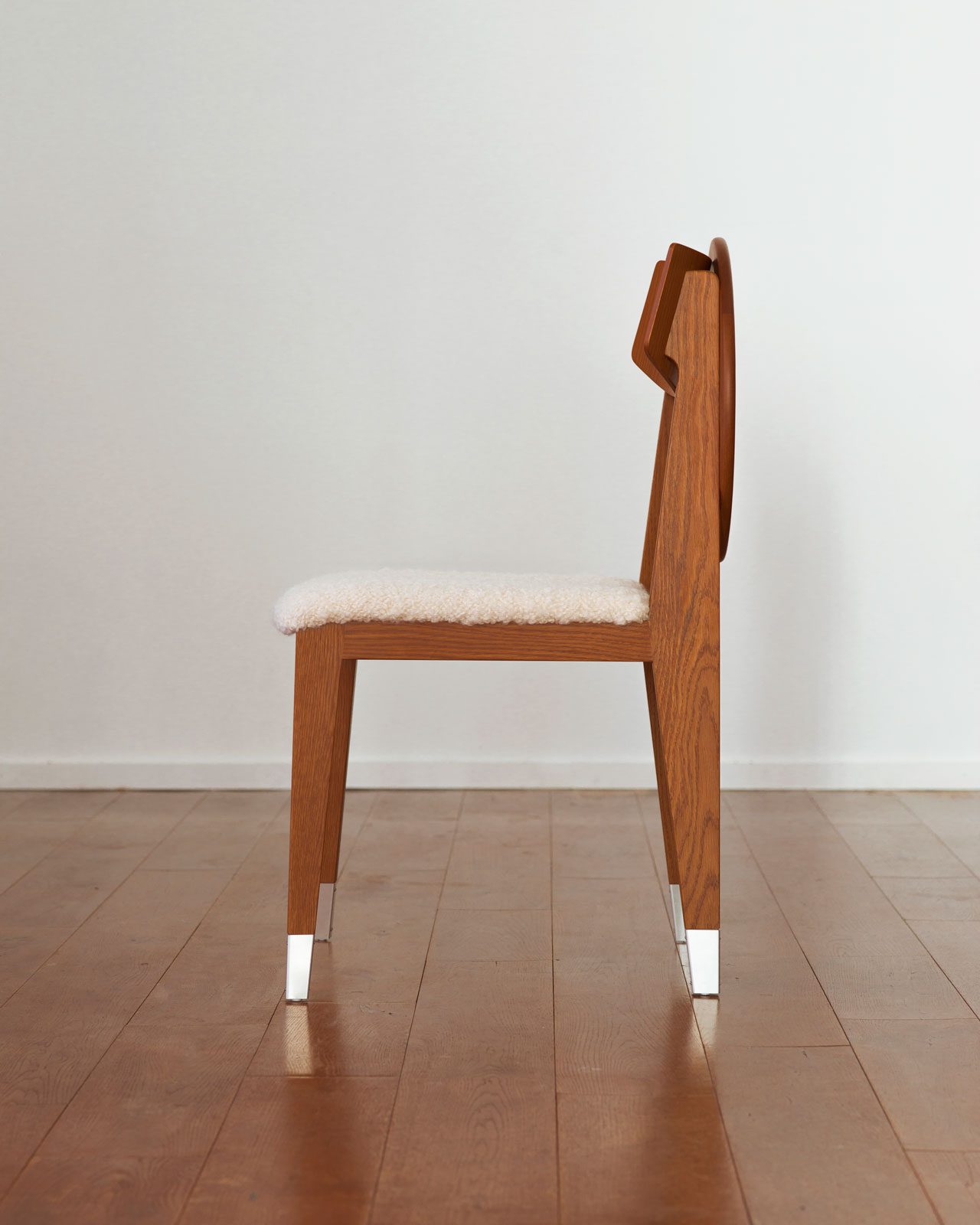 UNDERCOVER のデザイナーである高橋盾はこれまでアナキズムのシンボルである、サークルAを背面に配したチェアを1点ものとして制作し、販売をしてきた。そして自宅やアトリエなど、どんな場所にも馴染み、長く使え飽きのこないものを作りたいという思いから生まれた新たな椅子 「Anarchy Chair」 を販売することになった。既にある他の家具とも調和するように、シンプルでありながら配置されたサークルAや脚のキャップの異素材などブランドらしいデザインが特徴的。チェアを製品化するにあたり、耐久性や精度を確保するために日本を代表する家具メーカーである天童木工に製作を依頼。座面のくぼみや厚さ、脚に当たる部分のカーブなどを調整し、座り心地にこだわった。さらに座面に使われているのは、黒の天然皮革とオフホワイトのフランス製ウールボアの種となっており、この素材選びも座り心地の良さに繋がっている。 「Anarchy Chair」 は2月26日より、UNDERCOVER 青山、仙台、金沢、名古屋、京都及びオンラインストアで発売中。