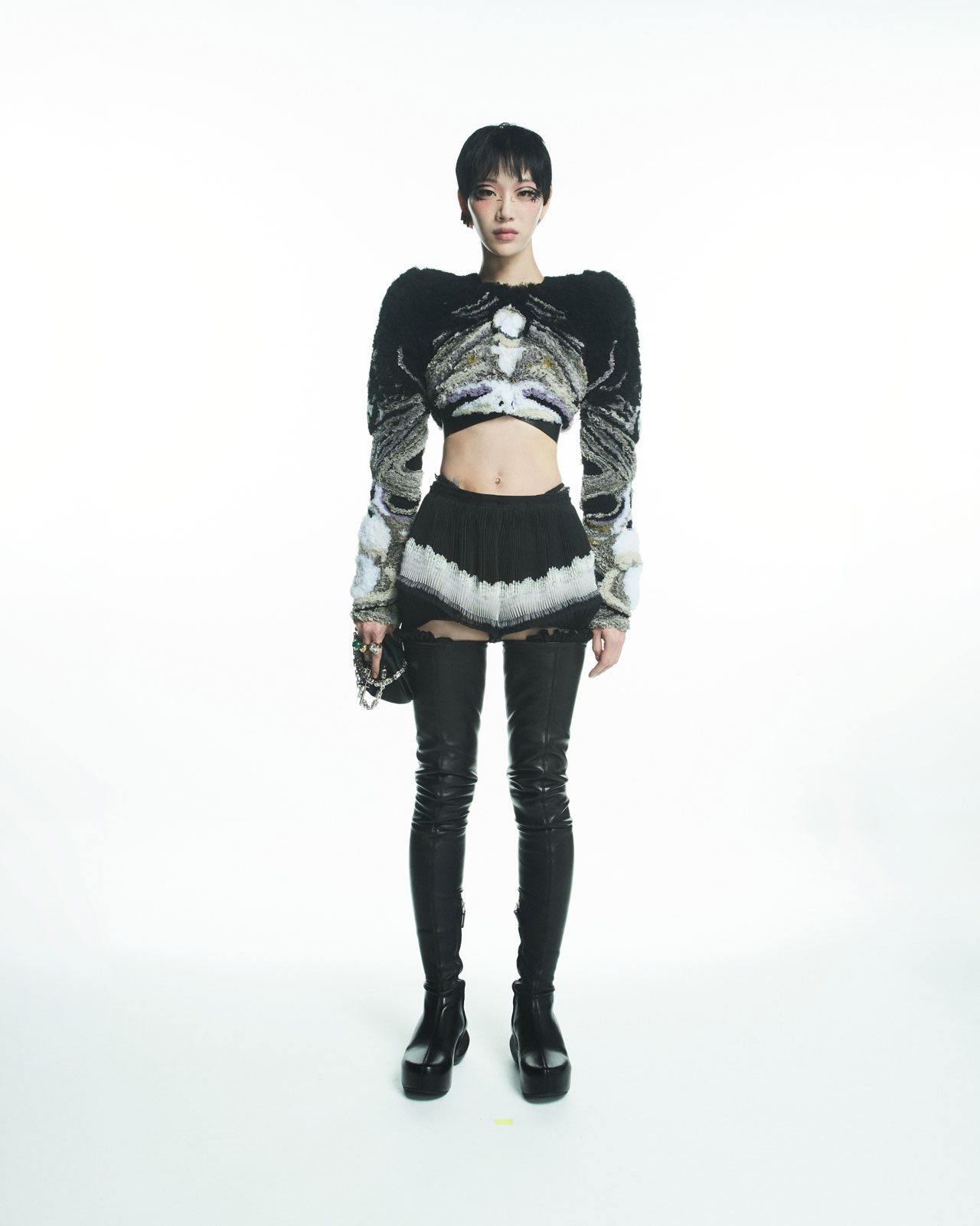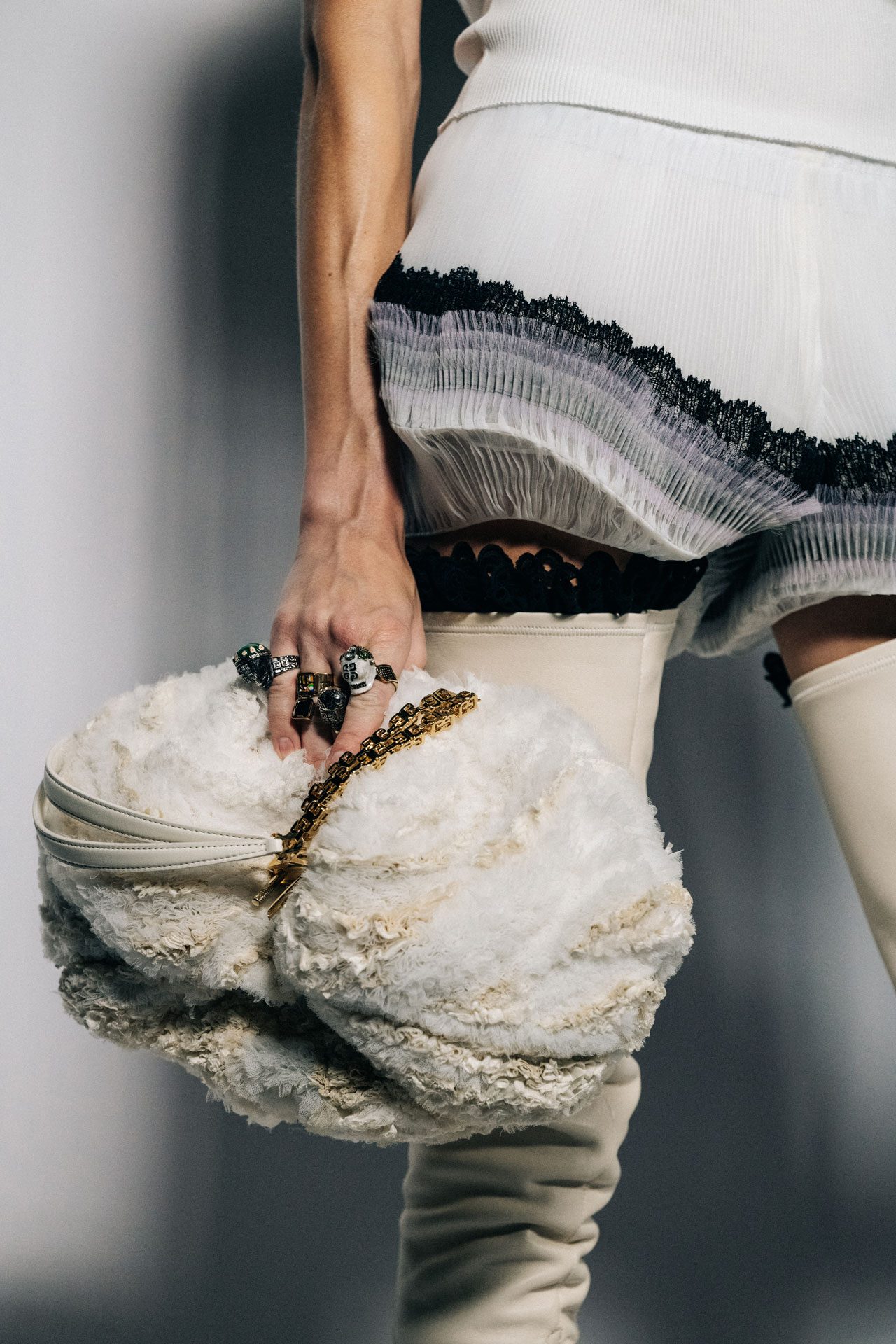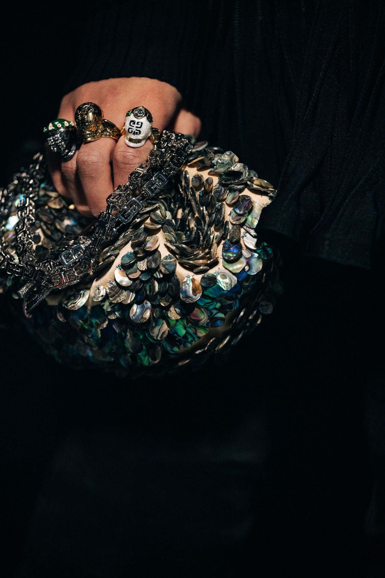 シリーズからは、Givenchy の2022年春夏でも注目を集めたオートクチュールの技術を用いて細工したオーガンザを纏ったタイプ、そして今季のキャンペーンでも用いられているマザーオブパールの刺繡が施されたバリエーションが登場。韓国生まれのドイツ人写真家、Heji Shin (ヘジ・シン) が撮影したジバンシィの2022年春夏広告キャンペーンでも KENNY がフィーチ