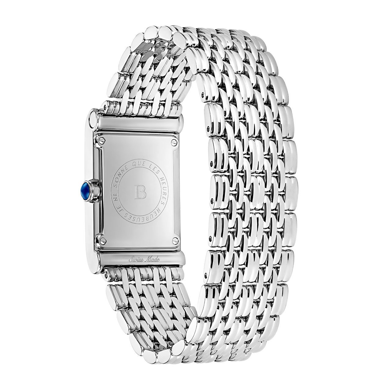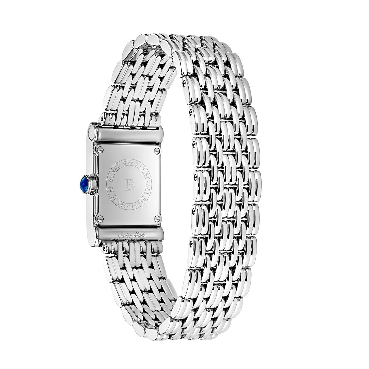1947年に誕生した Boucheron のアイコンウォッチ 「REFLET」 にメッシュブレスレットをデフォルト装備したモデルが新しく登場する。インターチェンジャブルなストラップの構造はそのままで、新しくステンレススティールのブレスレットが加わった。サイズはスモールとミディアムの2サイズ展開で、どちらも抗反射サファイアクリスタルを使用している。Boucheron のシンボル的な縞模様ダブルゴドロンとリューズのブルーサファイアが特徴的だ。ケースの表面に息を吹きかけると、一瞬だけ浮かび上がるパリ・ヴァンドーム広場と円柱のホログラムがシークレットシグネチャーとなっている。ケースの裏には 「Boucheron」、「Je ne Sonne que les Heures Heureuses(私はよろこびの時だけを刻む)」、「Swiss」 の刻印があり、30Mの日常生活用の防水性能が備わっている。ストラップには、Boucheron 独自の脱着が容易に行えるインビジブル・クラスプを採用し、ステンレススティール素材のブレスレットは、レザーやファブリックなどのストラップと交換が可能。