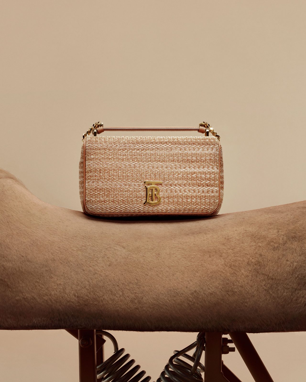 LOLA BAG は、ペールヴァニラやキャメルから、天然ラフィアやブラックまで、様々なサイズやスタイル、カラーバリエーションで展開。全国のバーバリー店舗およびオンラインストアにて発売中。