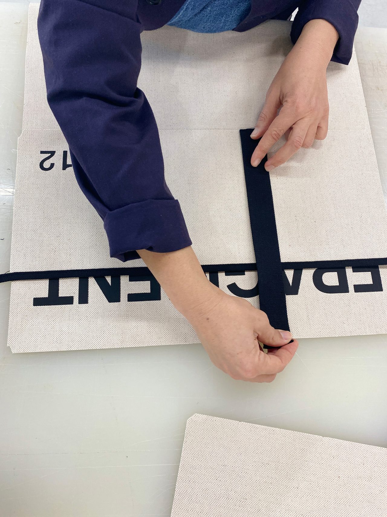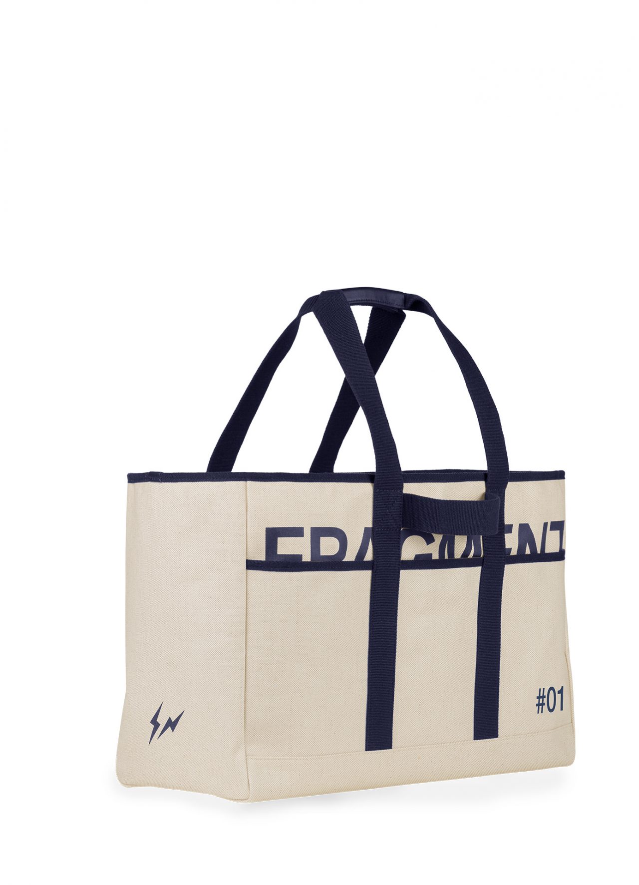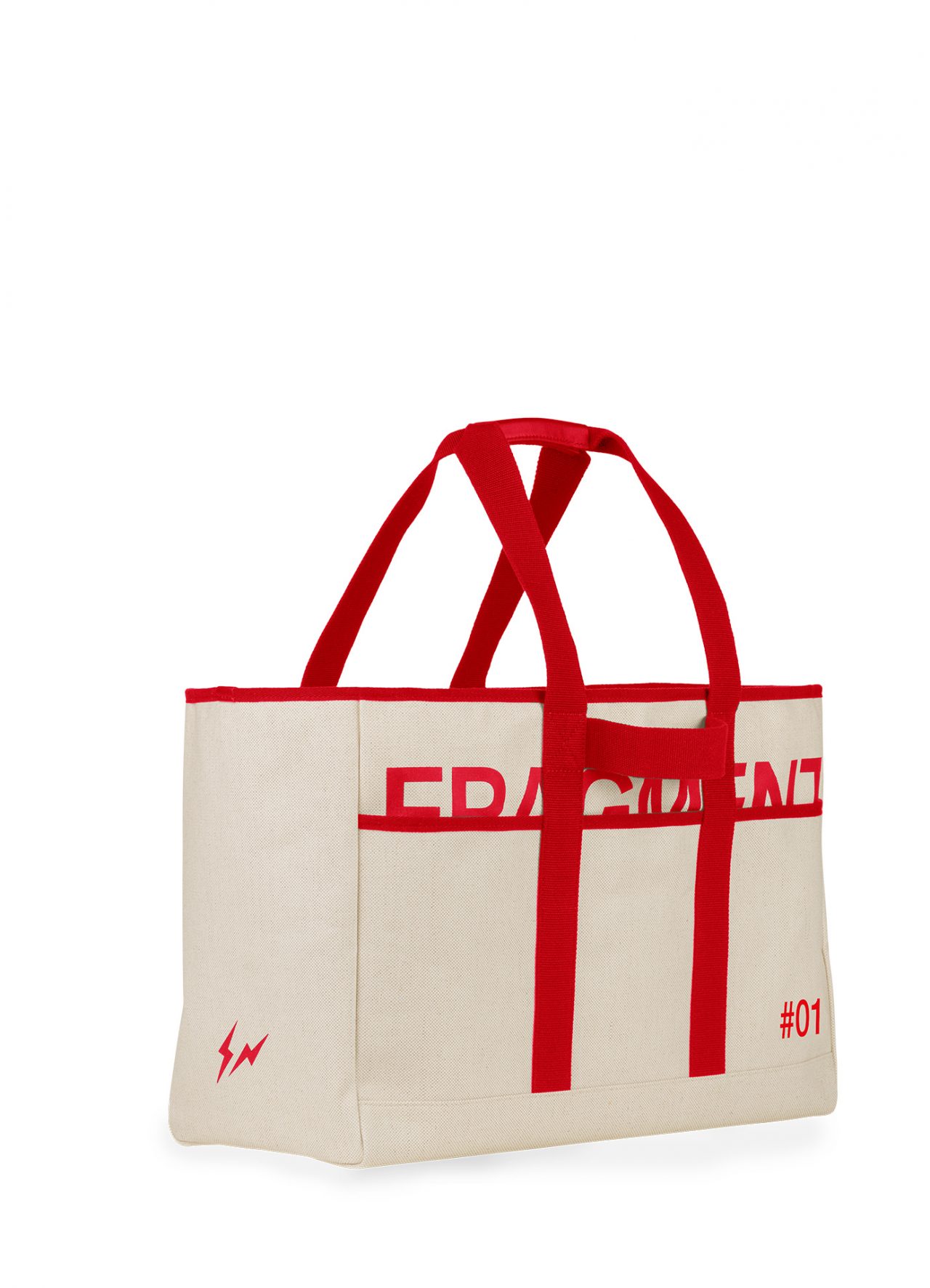 今回のコラボレーションでは、 L/UNIFORM が過去に発表した「No.54」のビッグバッグをベースに、 fragment design が独自のアレンジを加えたオリジナルバッグ 「No.129」が登場する。カラーはポピーレッド、ディープブルー、ブラックのコットンパーツを組み合わせた全3種類がラインナップ。ショルダーバッグとして持ちやすいようにストラップを長くし、ダブルレイヤーではなくシングルレイヤーのキャンバスを使用することで軽量化を実現。さらに、サイドに新たに持ち手を追加するなど、藤原ヒロシのこだわりが詰め込まれた使い勝手の良い仕様になっている。素材にはフランスで織られ、カルカッソンヌの工場で研究されたという L/UNIFORM を象徴するナチュラルカラーの織布キャンバス生地を採用している。この新しいバッグ「No.129」は各色45点の数量限定となっており、バッグには#1から45までのシリアルナンバーがプリントされている。また、サイドには「FRAGMENT」のロゴも大きくプリントされているのがポイントだ。