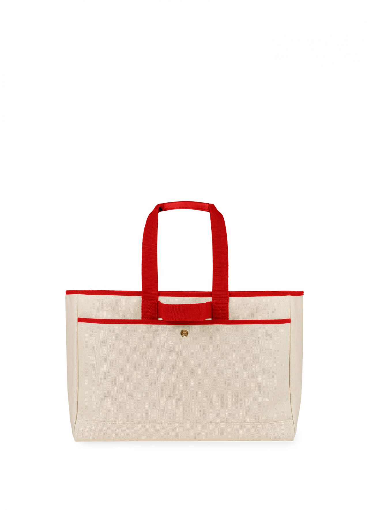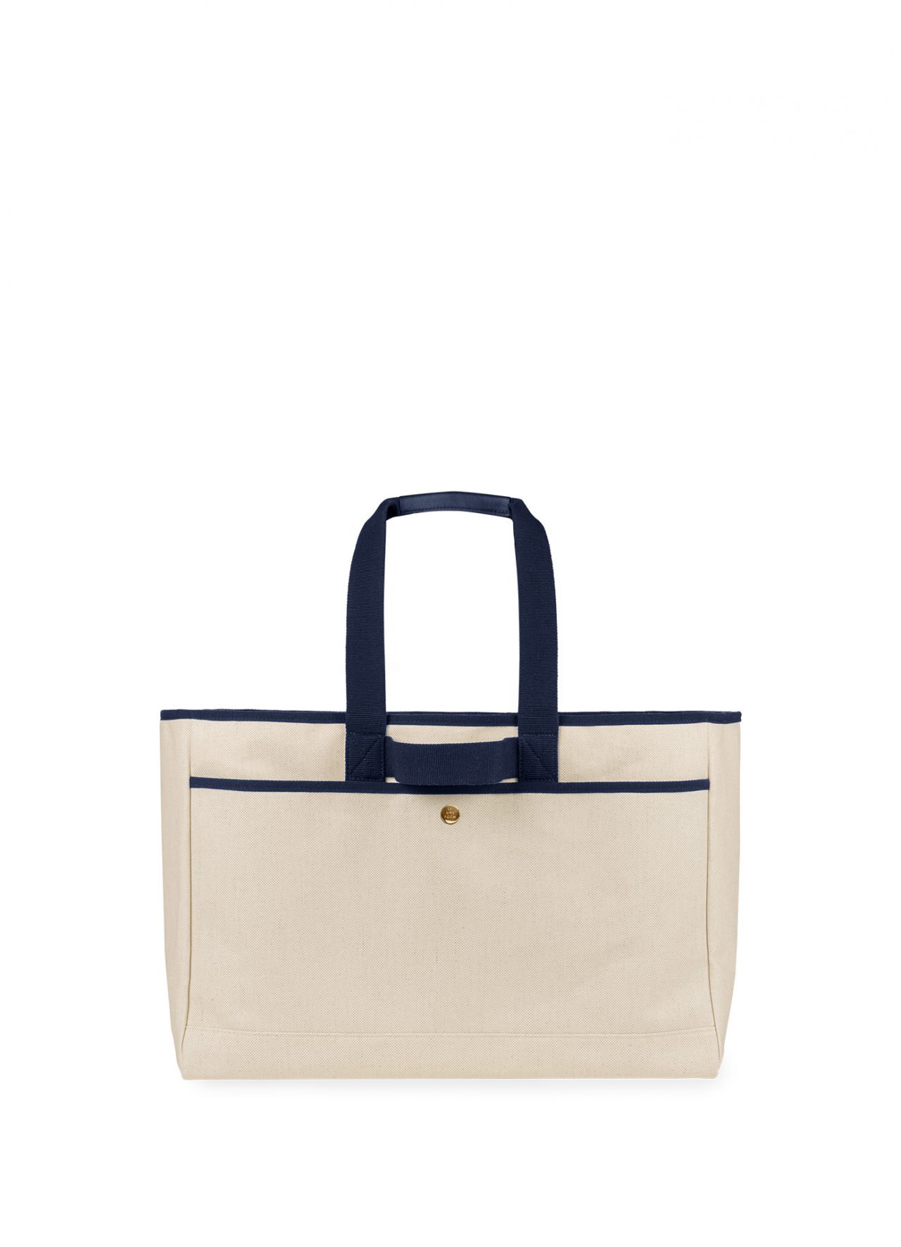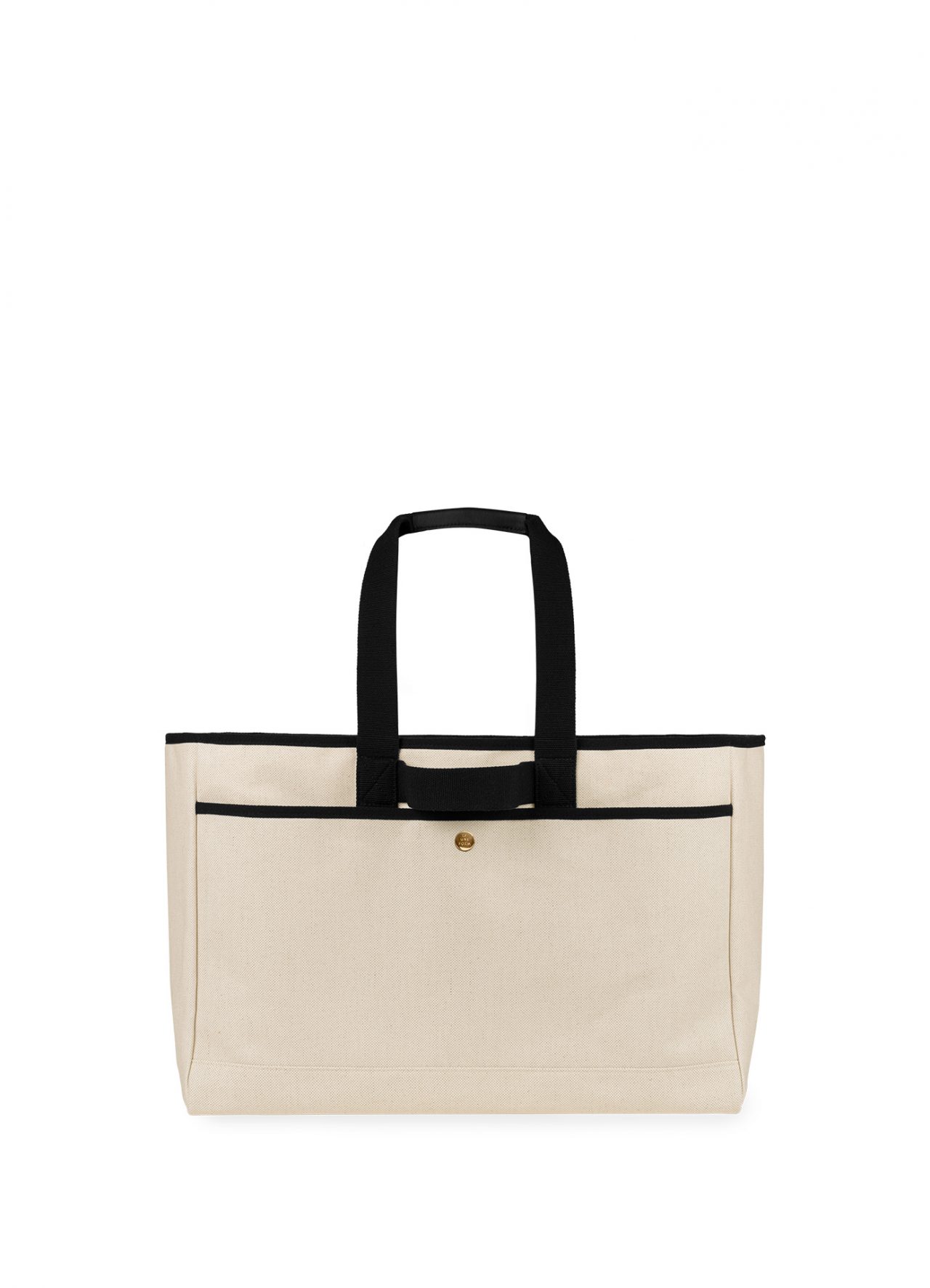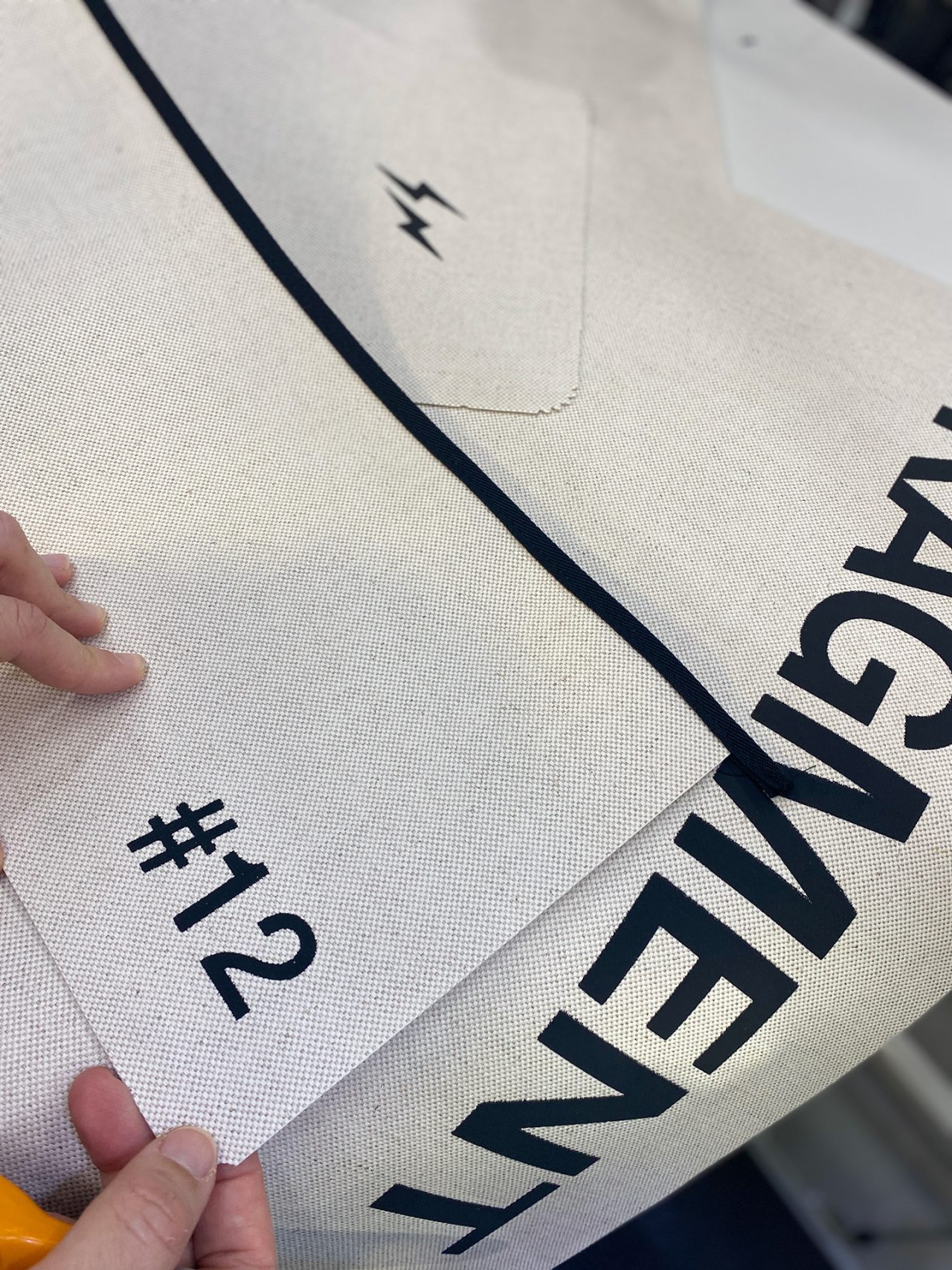 今回のコラボレーションでは、 L/UNIFORM が過去に発表した「No.54」のビッグバッグをベースに、 fragment design が独自のアレンジを加えたオリジナルバッグ 「No.129」が登場する。カラーはポピーレッド、ディープブルー、ブラックのコットンパーツを組み合わせた全3種類がラインナップ。ショルダーバッグとして持ちやすいようにストラップを長くし、ダブルレイヤーではなくシングルレイヤーのキャンバスを使用することで軽量化を実現。さらに、サイドに新たに持ち手を追加するなど、藤原ヒロシのこだわりが詰め込まれた使い勝手の良い仕様になっている。素材にはフランスで織られ、カルカッソンヌの工場で研究されたという L/UNIFORM を象徴するナチュラルカラーの織布キャンバス生地を採用している。この新しいバッグ「No.129」は各色45点の数量限定となっており、バッグには#1から45までのシリアルナンバーがプリントされている。また、サイドには「FRAGMENT」のロゴも大きくプリントされているのがポイントだ。