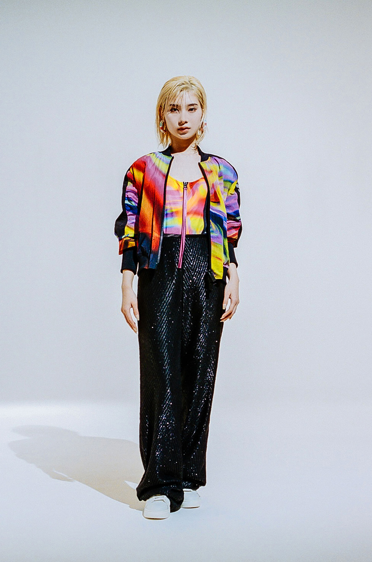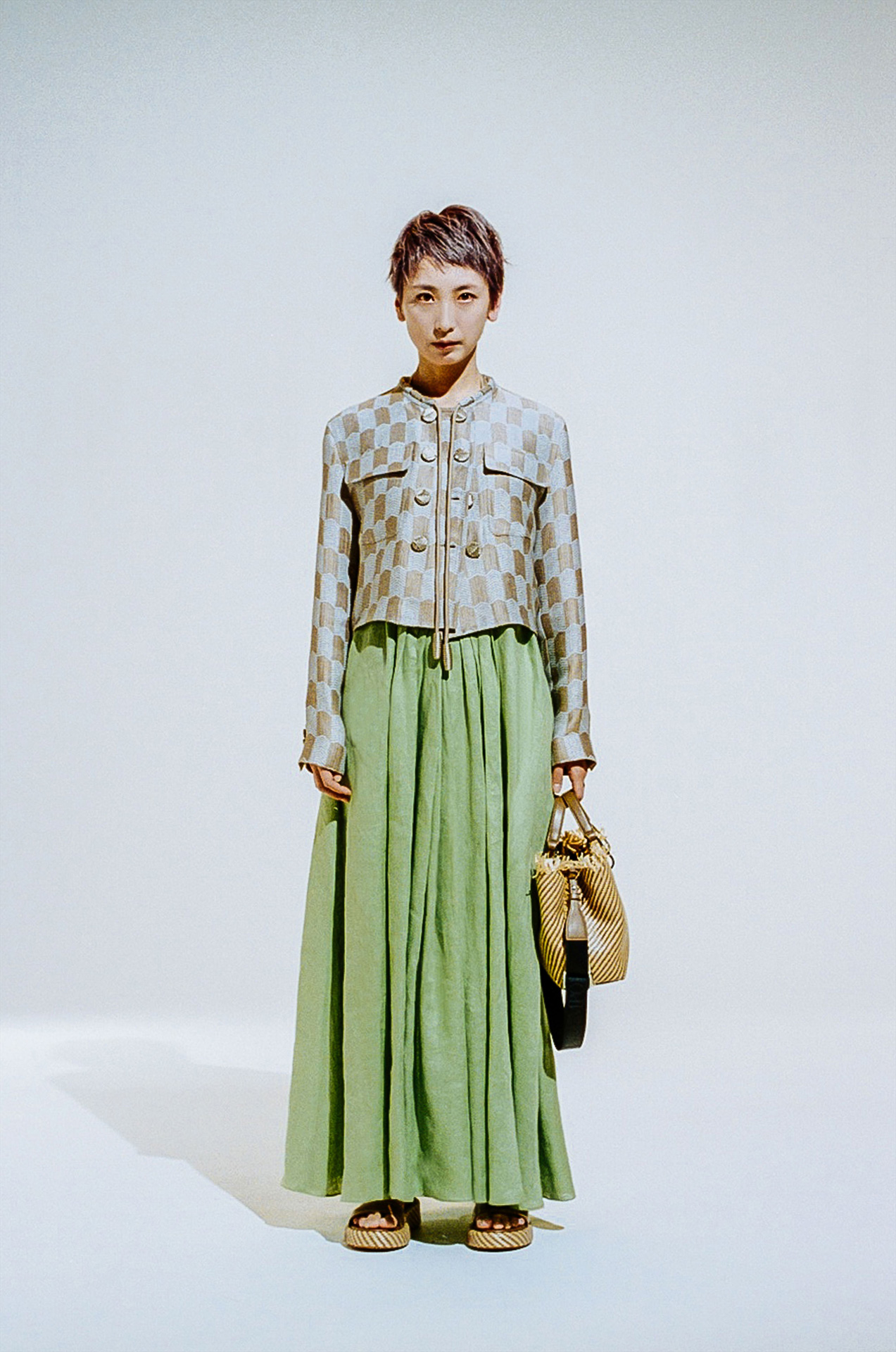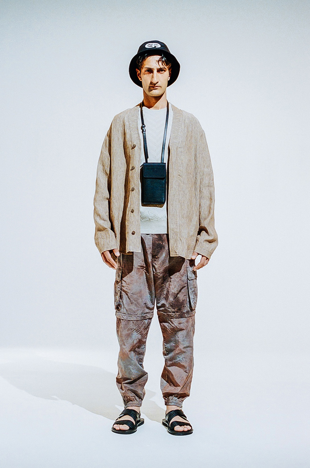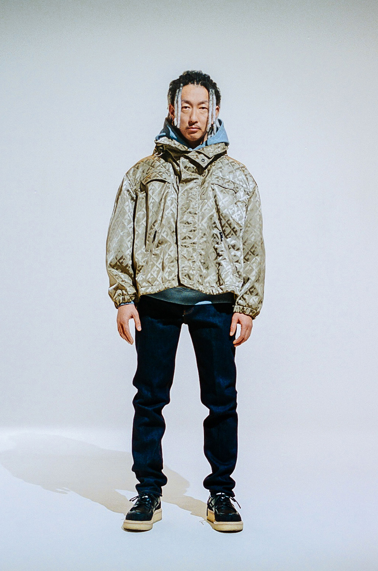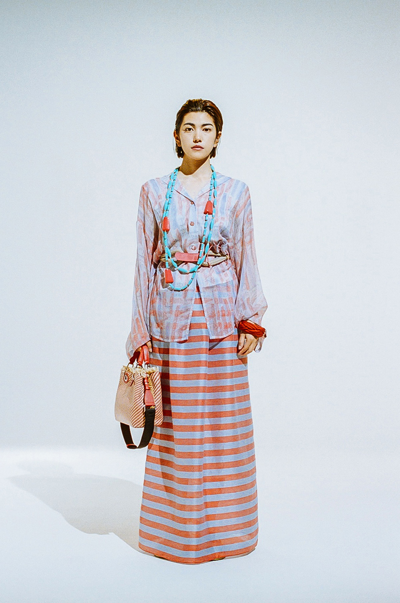 またデジタル化が進み、撮影した画像がその場で確認できる時代だからこそ、今回の撮影はフィルムを採用したという。無機質な白の背景を背に存在するのはひとりの人間と EMPORIO ARMANI のアイテムのみ。