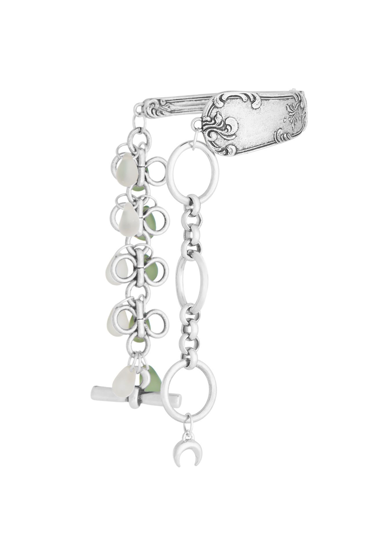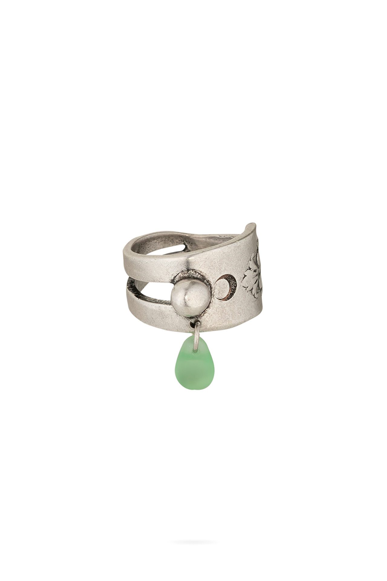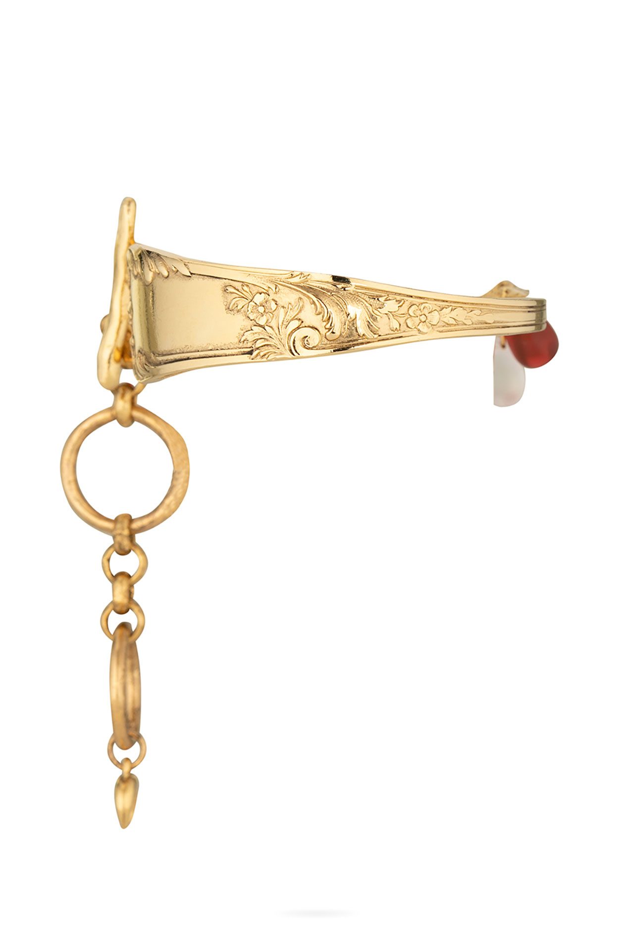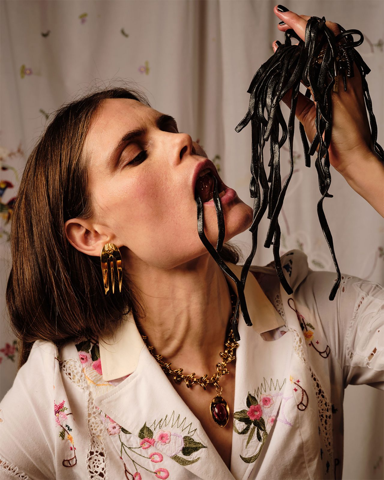 同シリーズでは「物や素材が持つ特徴を生かし、再生させていく」というブランドの根底にある考え方を取り入れた。例えば、フォークの先端部分はイヤリングやネックレス、持ち手部分はブレスレットへと再生している。また、長年に渡って世界中から収集した貝殻、パール、ウッド、ガラスビーズなどを用いたジュエリーも登場。ゴールドチェーンと艶のある石を融合させたラッキーチャームは、御守りのような意味合いも持ち合わせながら、スタイリングを華やかに彩ってくれるのがポイントだ。