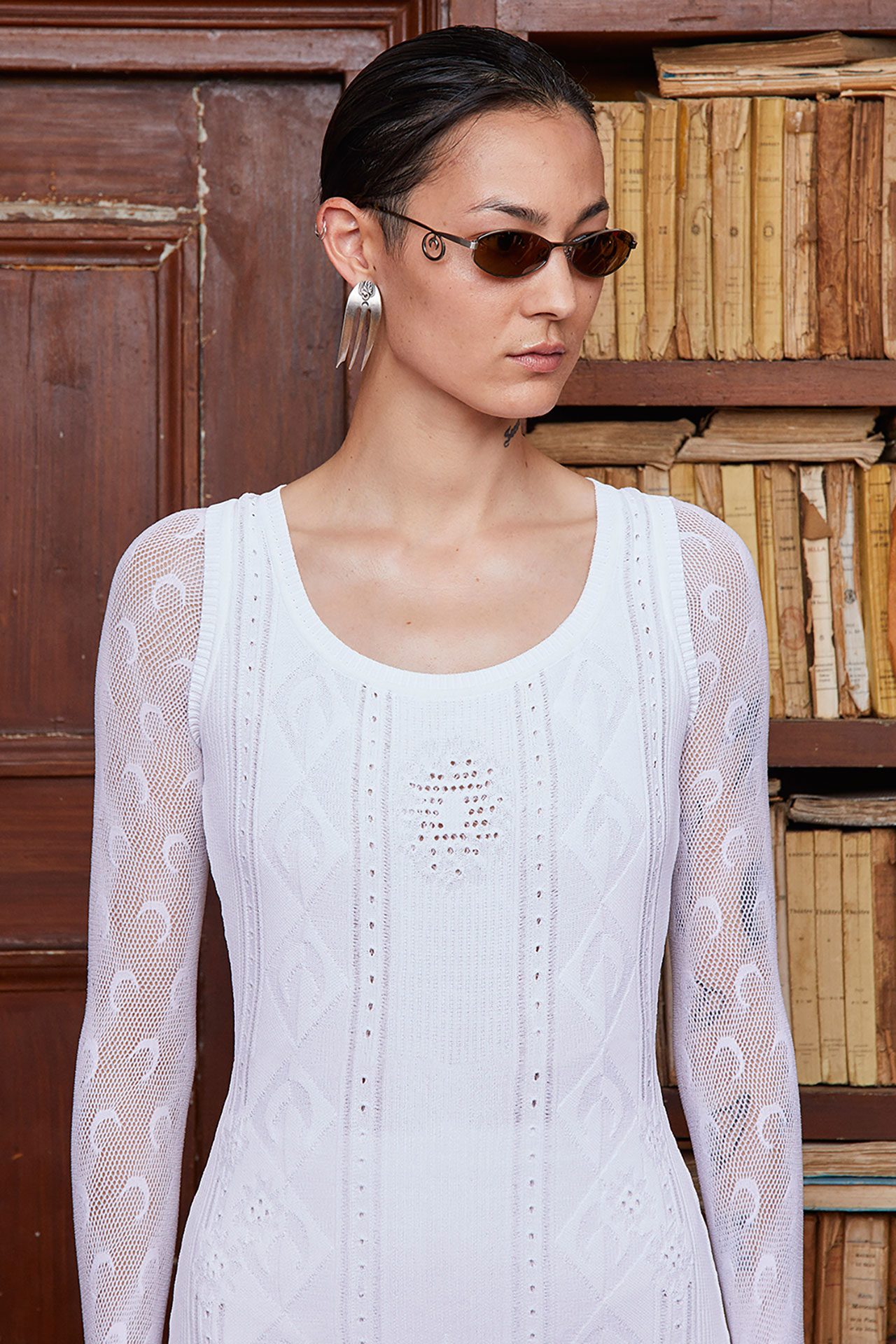 「Fichu pour Fichu」と題した今回のジュエリーコレクションでは、Marine Serre (マリーン・セル) の根底に流れる「REGENERATE (再生)」な考え方をジュエリーへと展開。キッチン器具から不要になったチャームまで、様々な素材を芸術的ピースへと昇華させた。