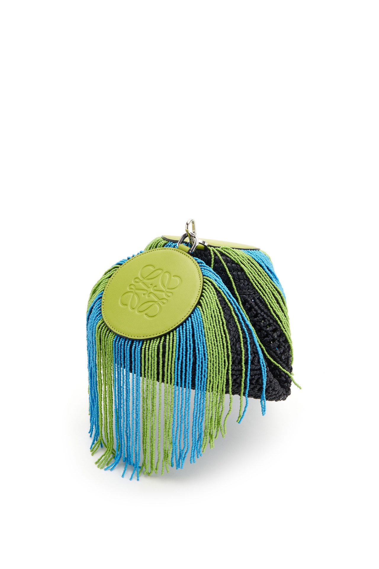 シューズには、スパンコールで飾られたミュール、エスパドリーユ、そしてジャージー素材の「フローランナー」などが登場。パズル、ハンモック、アマソナ、ゴヤといったアイコンバッグは、夕日を連想させるグラデーションカラーで彩られた。フラメンコクラッチはミニスカートのようなラッフルが特徴で、人気のバスケットバッグはサイズやカラーが豊富に揃う。アクセサリーでは、カクテルをモチーフにした遊び心溢れるチャームやレザー小物、花やハート型のサングラス、帽子、ジュエリーなども南国のムードが満載。バカンスへの気分を盛り上げる。