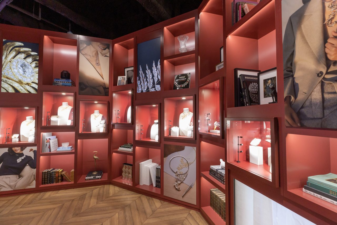 会場は、 Boucheron が創業時より大切にしている「ヘリテージ(伝統)」、「イノベーション (革新性)」、「スタイル」、「フレンチ アール ドゥ ヴィーヴル (フランス式の生活様式)」を4つの空間で表現。創業者の時代に Boucheron が考案したクエスチョンマークネックレスや、メゾンが保有する自然をモチーフにしたアーカイブジュエリー、最新の技術を使って誕生した革新的なハイジュエリーコレクションまで、そのクリエイティブな作品を通して、Boucheron の世界観を探求できる。