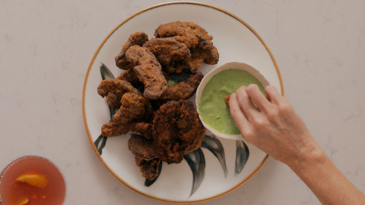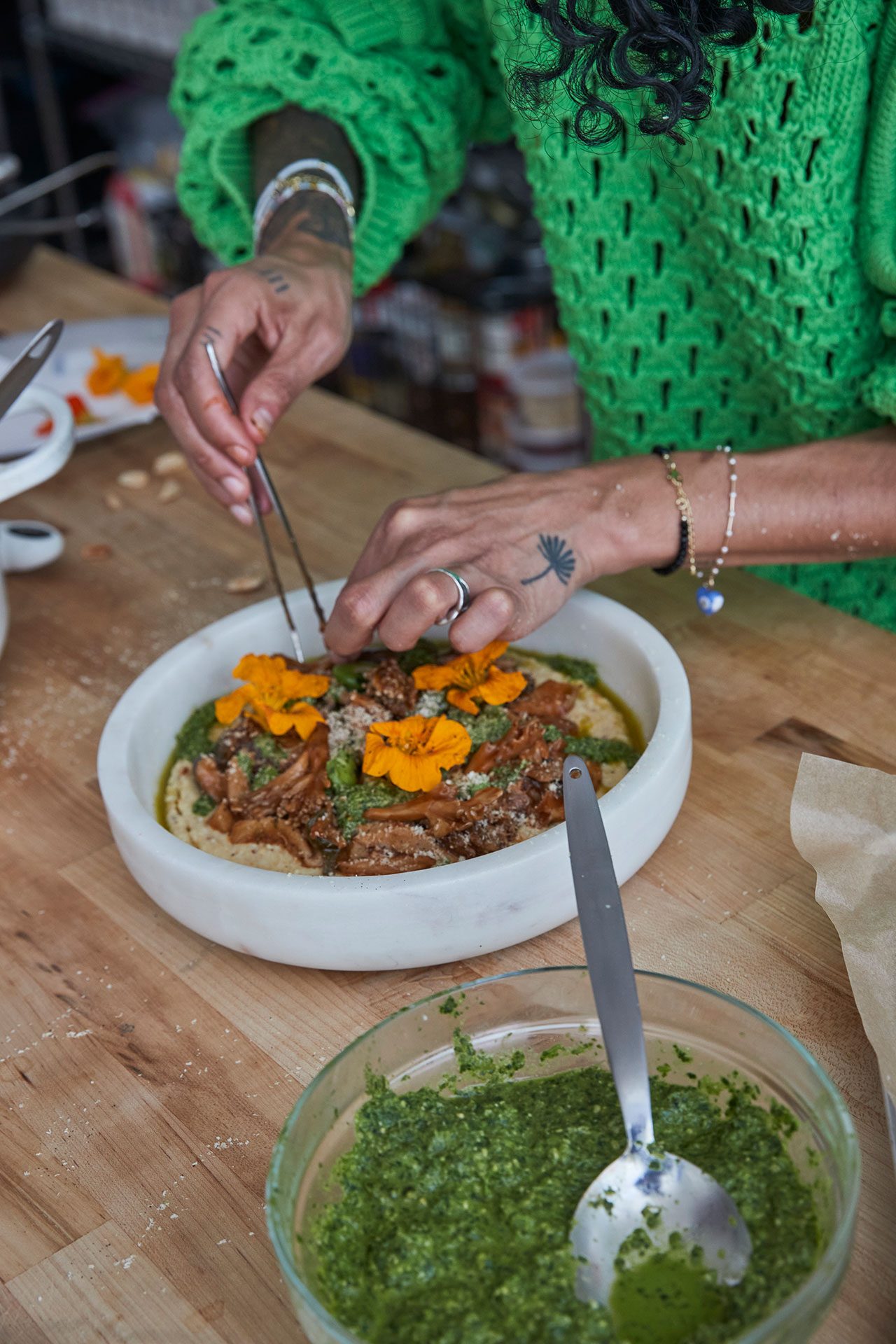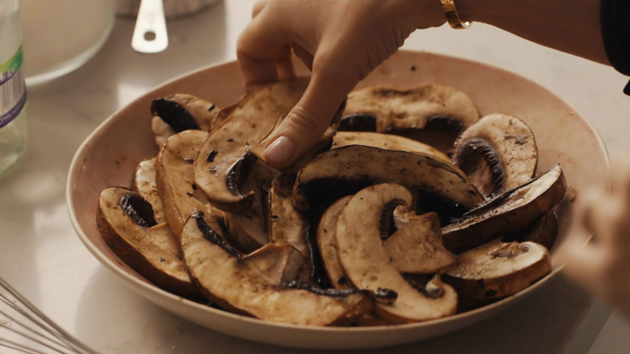 映画監督で写真家の Mary McCartney は、クリスピーコーティングされたキノコ料理を公開。妹の Stella McCartney をキッチンに招き、二人で料理を堪能した。