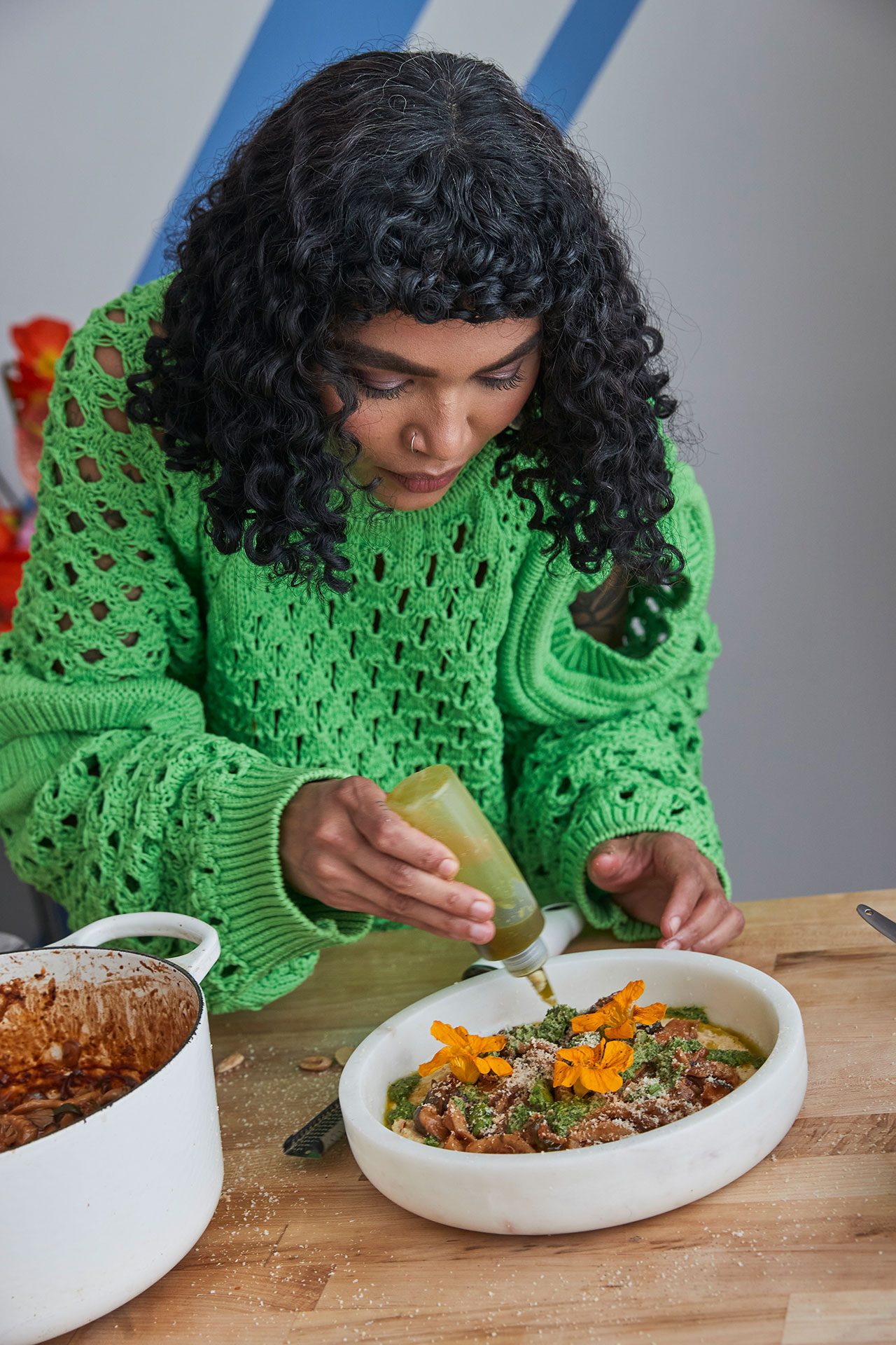 アメリカ・ニューヨークを拠点にシェフ、ライター、そして エミー賞ノミネート番組のホストとして活躍する Sophia Roe は、彼女とステラが共有する価値観を持つ互いのコミュニティの人々のため、 “A Mycelial Heatwave (菌類たちのヒートウェーブ)” と題した自宅で楽しめるキノコ料理を発表。コリアンダーチャツネを添えた、「チポトレ ポレンタとマッシュルームの煮込み」を調理した。このレシピは、後日ニューヨークの厳選されたレストランのメニューに加わる予定だという。さらに、ソフィアがホストを務めるプライベートディナーを開催。その様子は後日 Stella McCartney の公式デジタルプラットフォームにて公開予定だ。