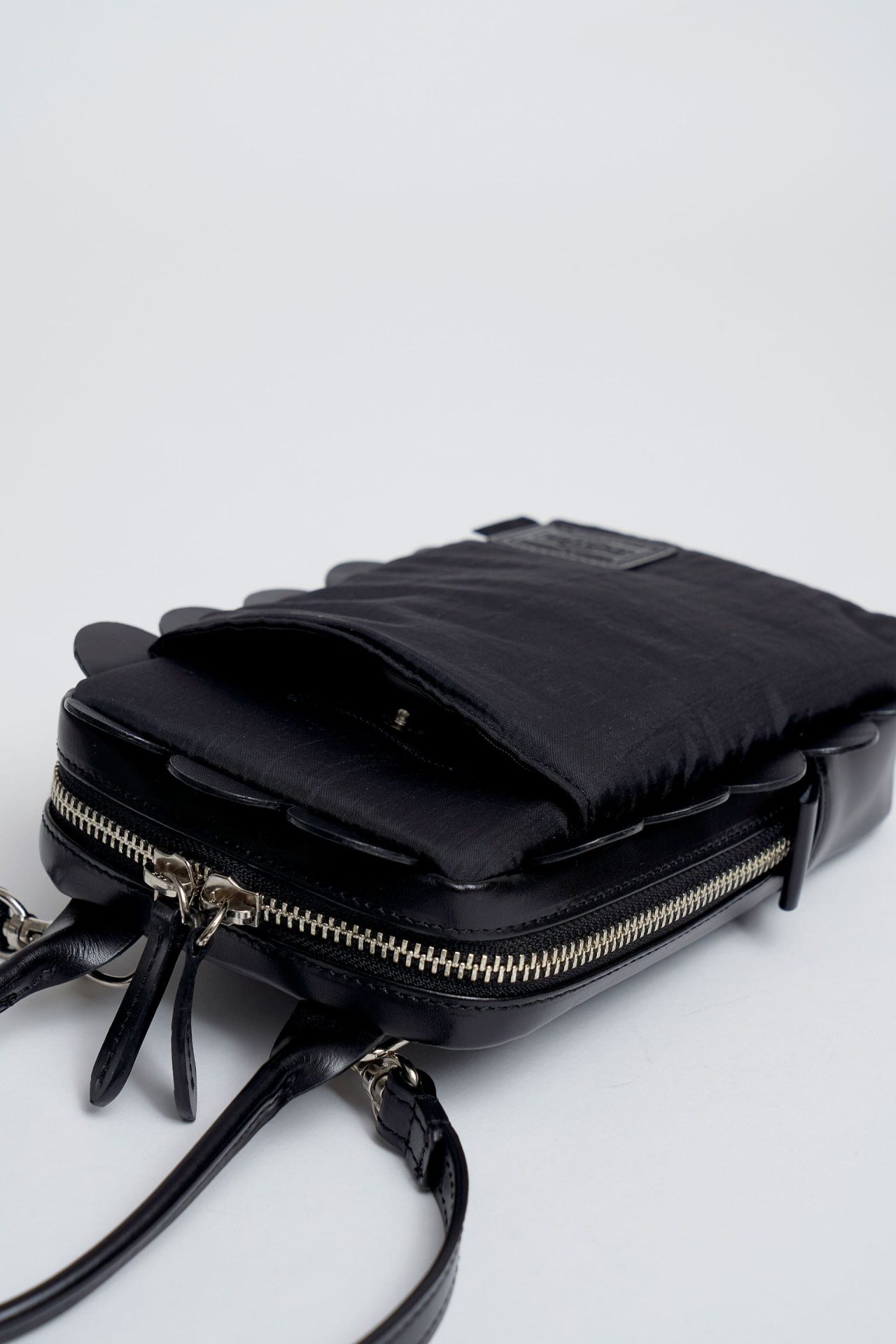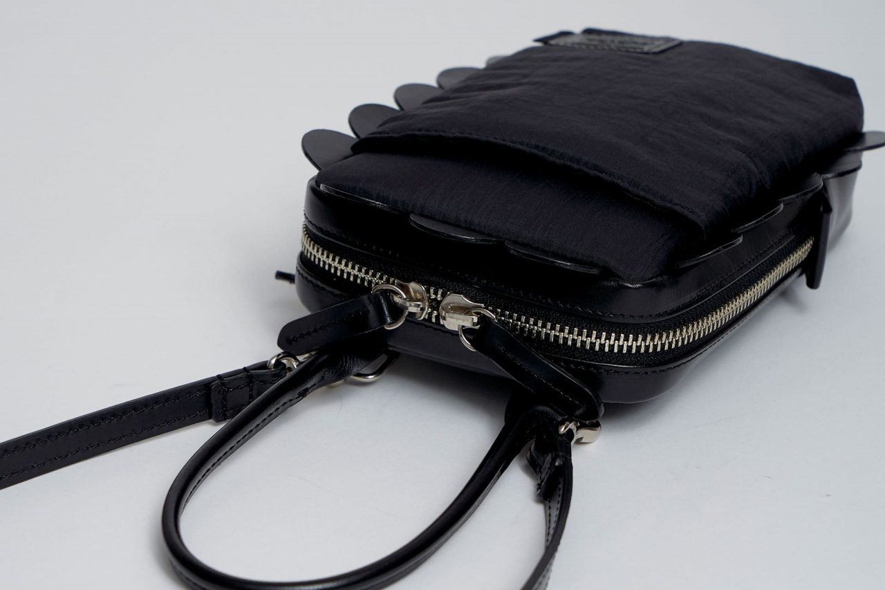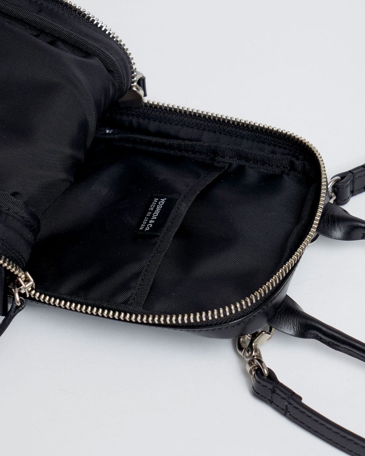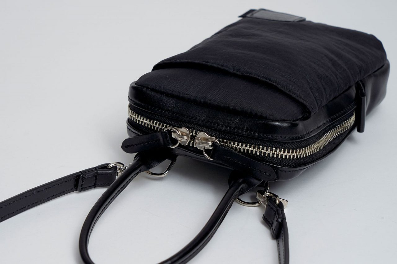 今回で6度目となる「Sister x PORTER」のコラボレーション では、アクティブで機能的なクロスボディバッグを提案。メイン素材は、最初のコラボレーションから使用しているシワ感のあるワッシャーコーティングを施した軽量撥水加工素材と、前回に続き環境に配慮した LEATHER WORKING GROUP 認証レザーをコンビで採用。スマートフォンの収納に適したポケットを外装、内装それぞれに設け、さらにはウォレット機能を兼ね備えたファスナー付きポケットを背面に施した。機能性の観点から、シングルハンドルや取り外し可能なレザーショルダーベルトが付属。シンプルなバッグに加え、アイコニックなレザーラッフルをあしらったバッグの2種類をラインナップする。