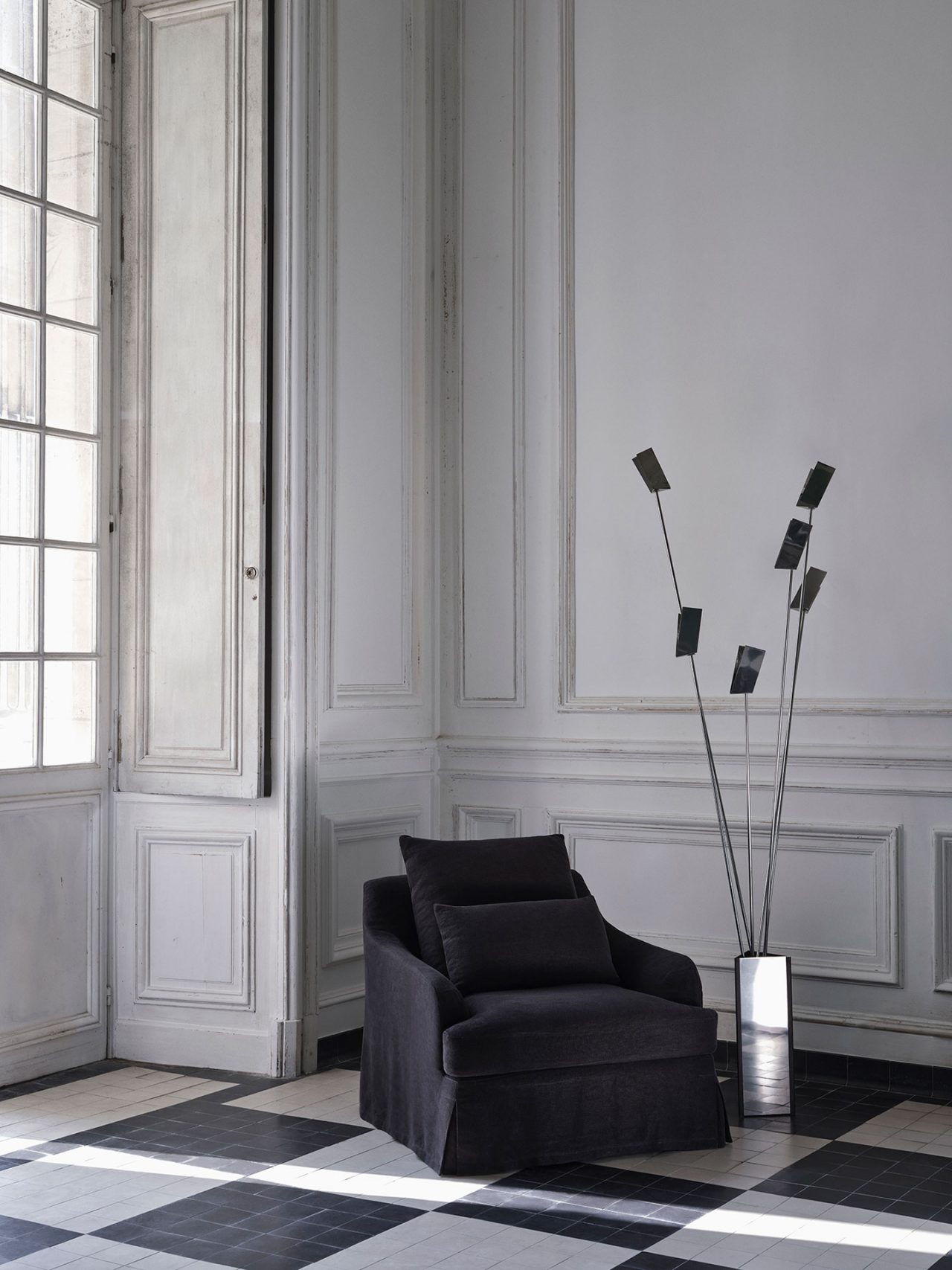 同コラボは、Vincent Van Duysen のアーカイヴに焦点を当て、デザイン理念と DNA はそのままに、象徴的なピースやスタイルを再考するプロジェクトとして始動。今後、年2回の発表を予定している。今回のデビューコレクションではリビングルームシリーズとして、ソファやコーヒーテーブル、デスク、ラグ、テーブルランプなど、ヴァン・ドゥイセンの住居の世界観を再現したアイテムを展開。