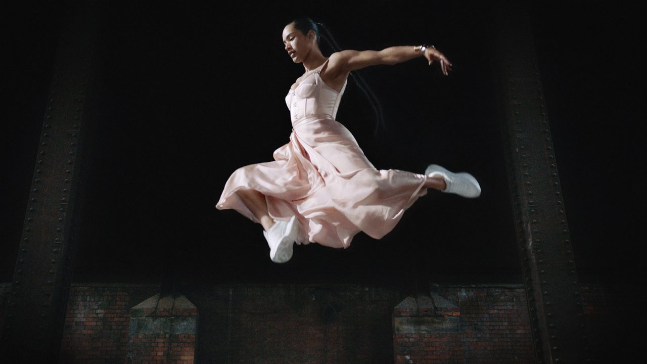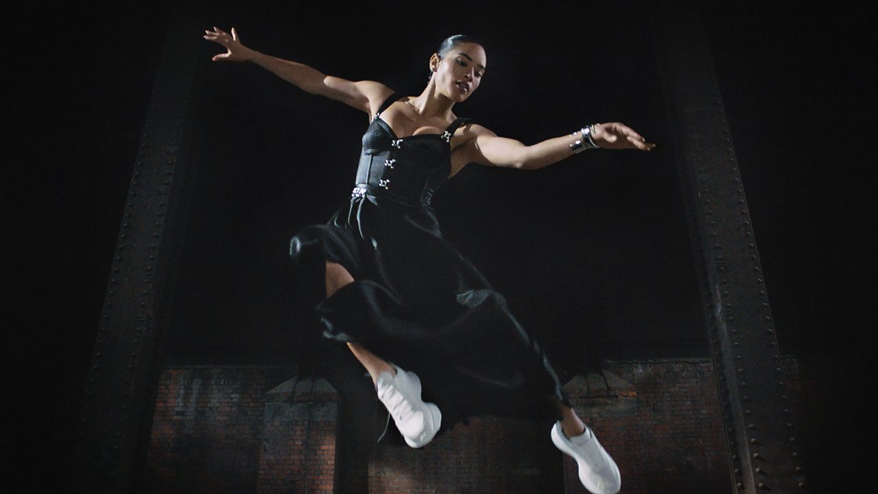 彼女の美しい身体にインスパイアされたという本作では、迫力抜群のダンスを披露。アシンメトリーなドレープスカートが特徴のティーローズとブラックのコルセットドレスを纏った彼女の足元で存在感を発揮するのは、クラシックなホワイトの「スプリントランナー」。身に着けるアイテムを通したエンパワーメントを表現したという映像は必見だ。