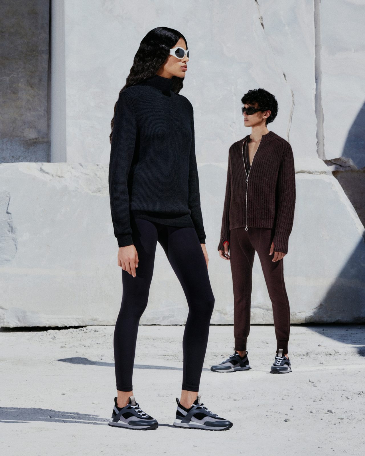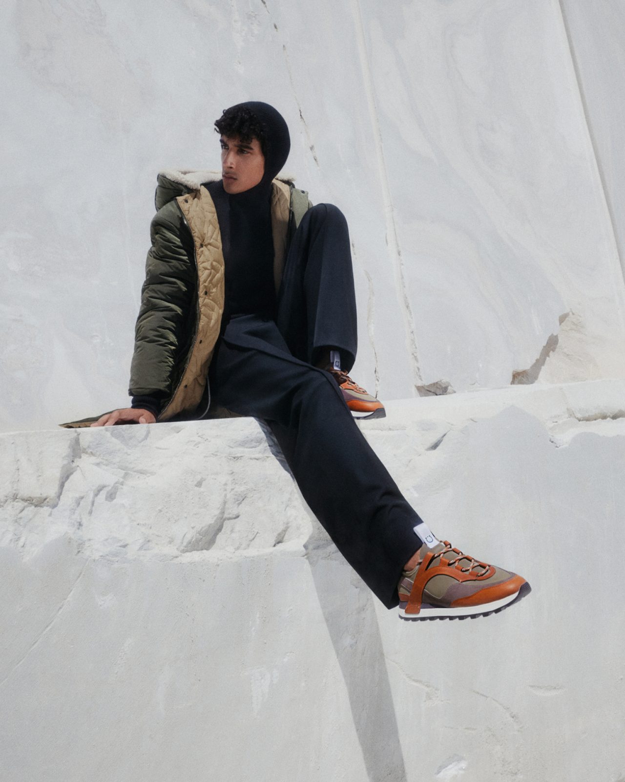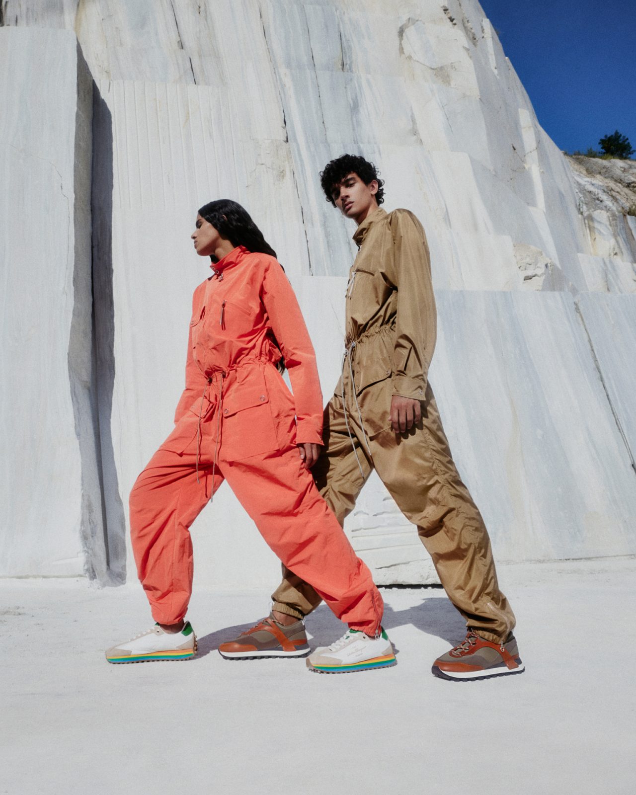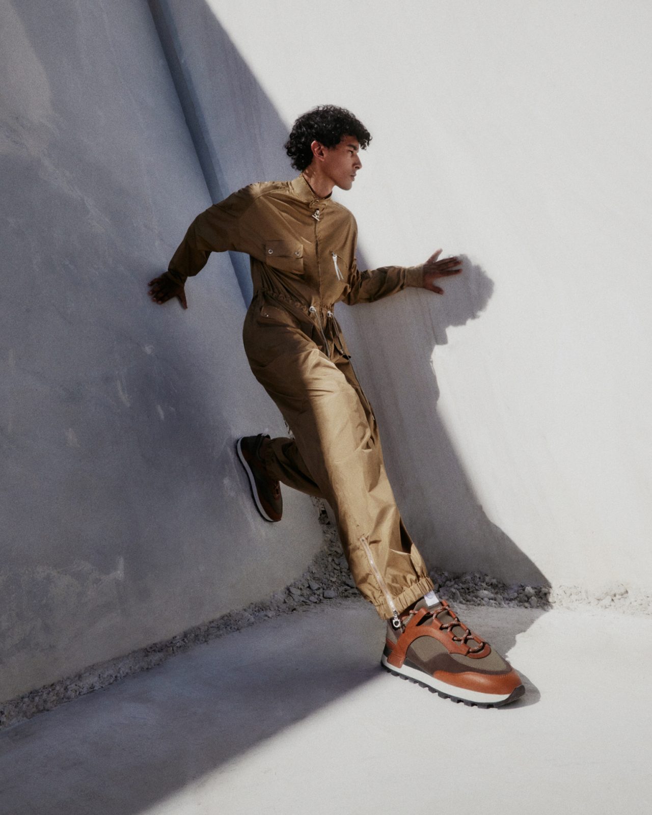 また、本コレクションは最新テクノロジーを積極的に取り入れ、廃棄された漁業網やナイロンを再利用した素材である「ECONYL®️」をはじめ環境負荷軽減を考慮した責任のある素材を採用。スエードには製品プロダクションにおいて排出される皮革スクラップを使用し、CO2排出量を考慮するなど、地球環境に対して責任のある製品であることを目指して作られている。