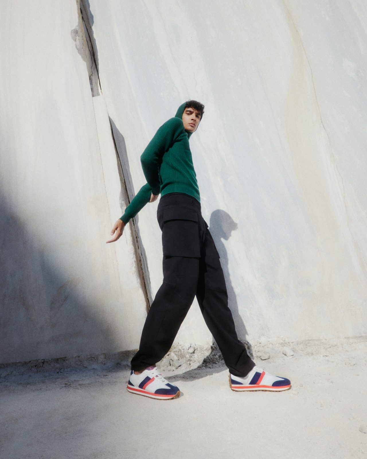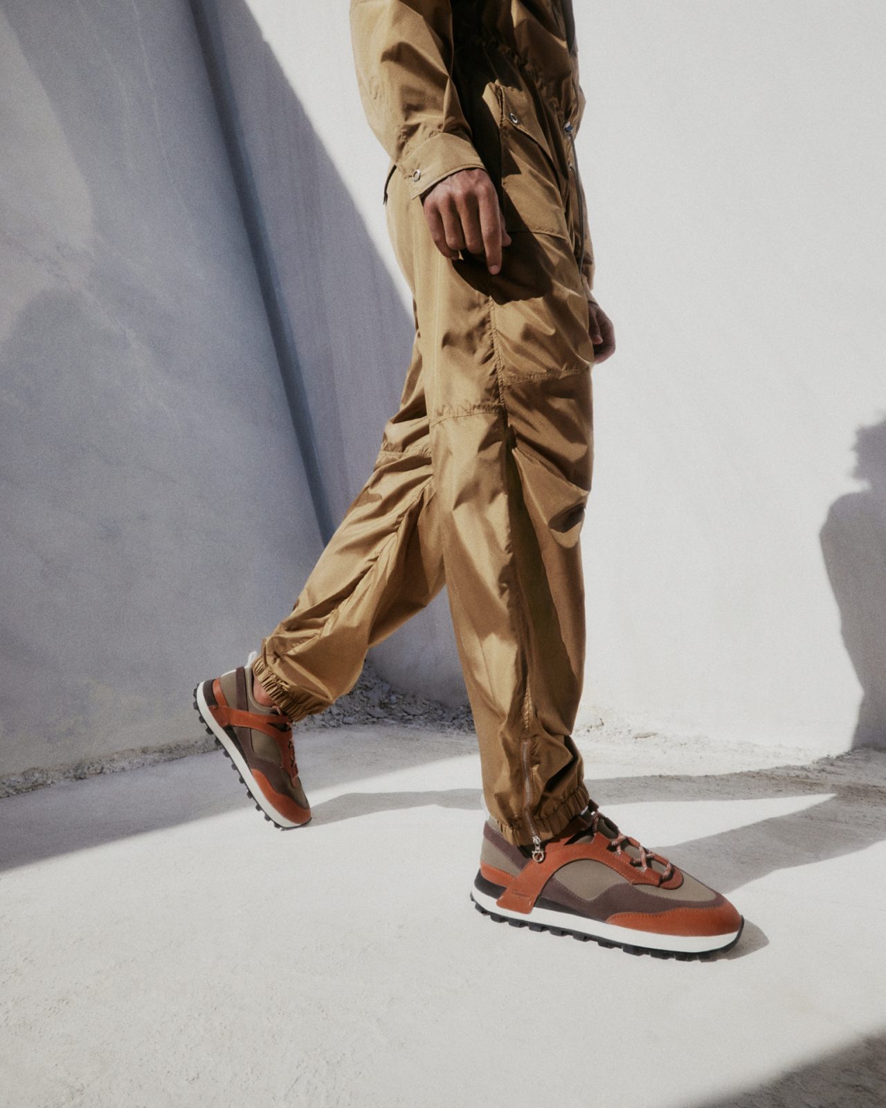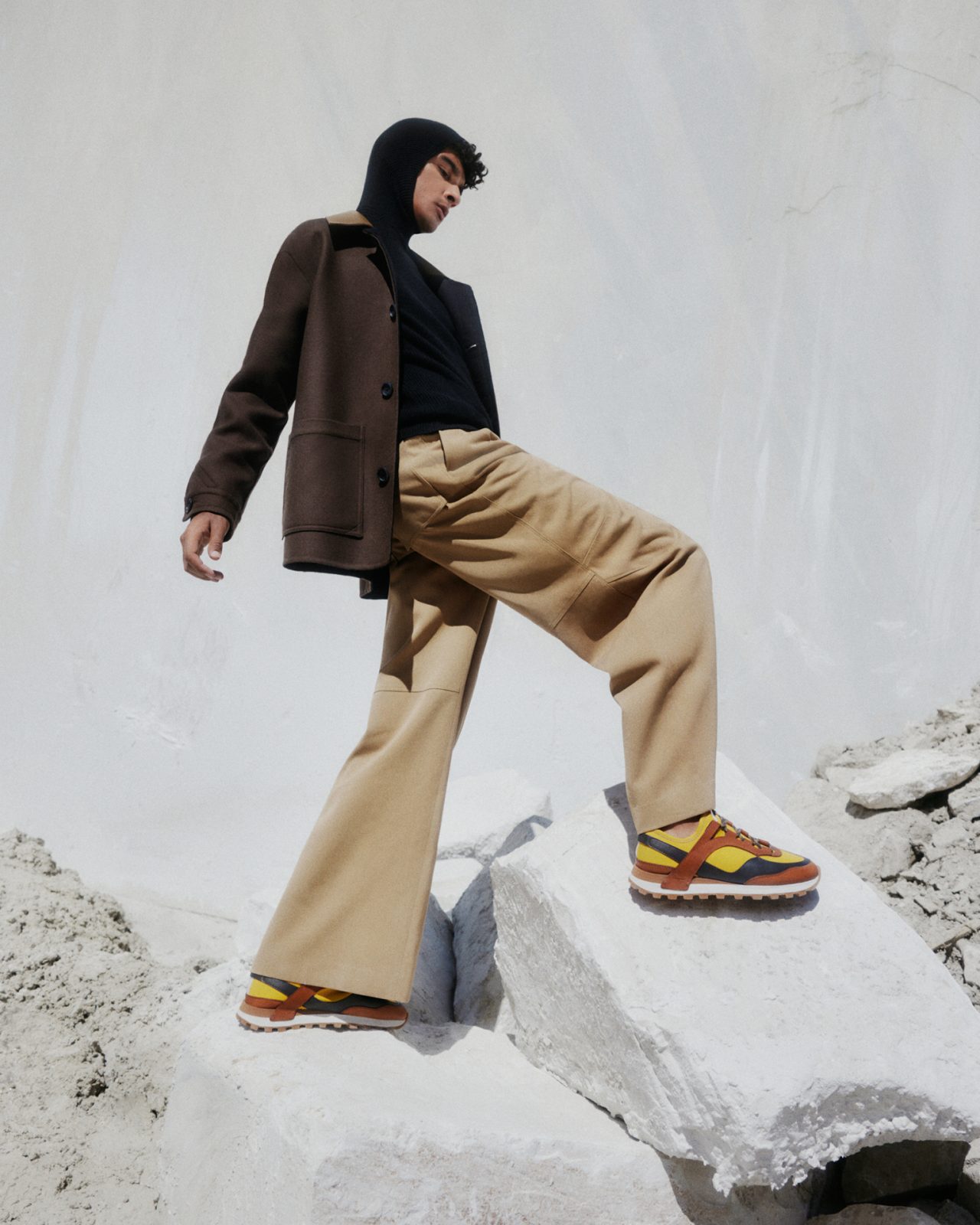 また、テック系のスニーカーにも目が離せない。伸縮性のある生地とレザーを組み合わせ、スポーティーでありながらラグジュアリーを忘れない Salvatore Ferragamo ならではのデザインとなっている。