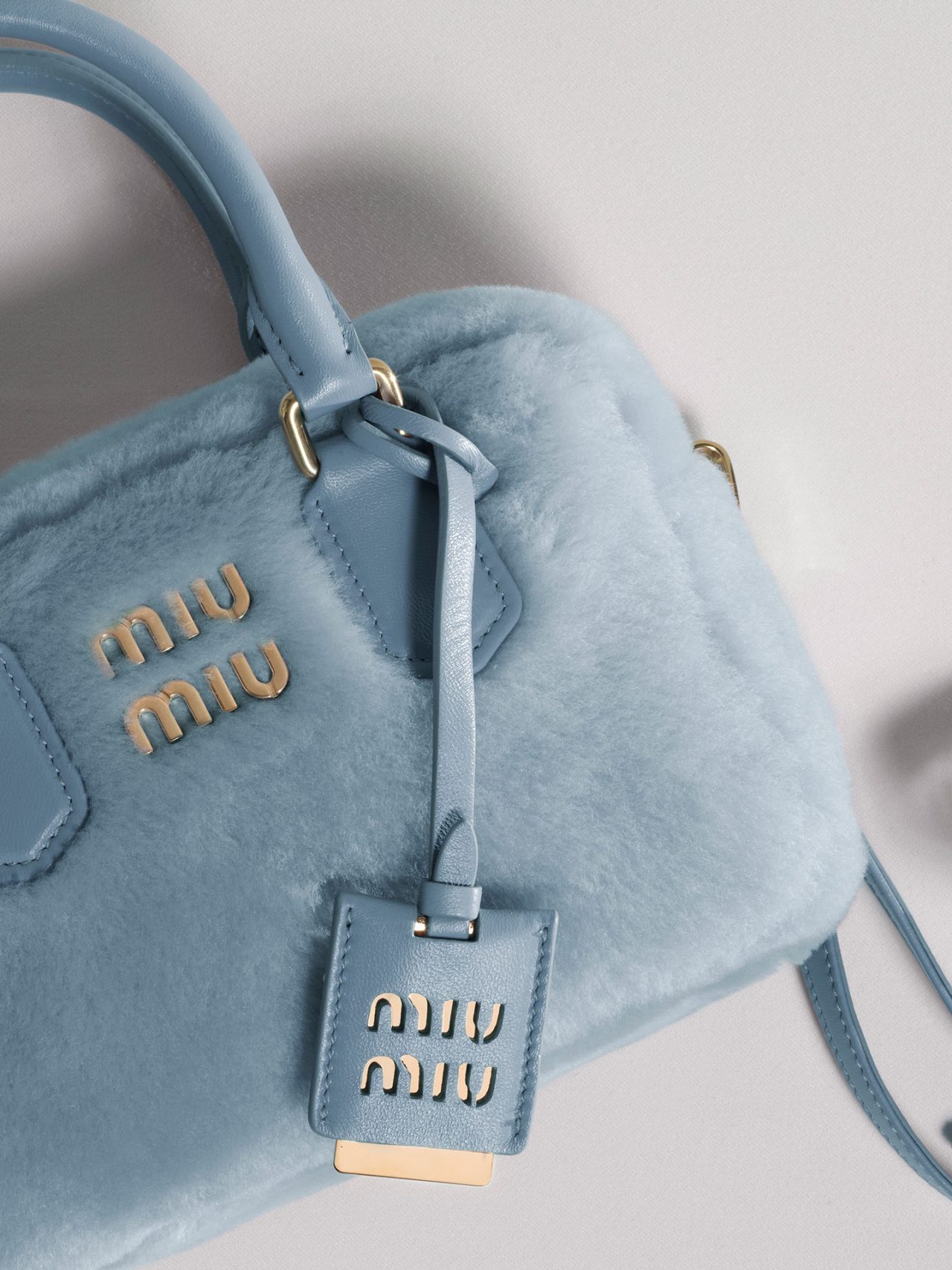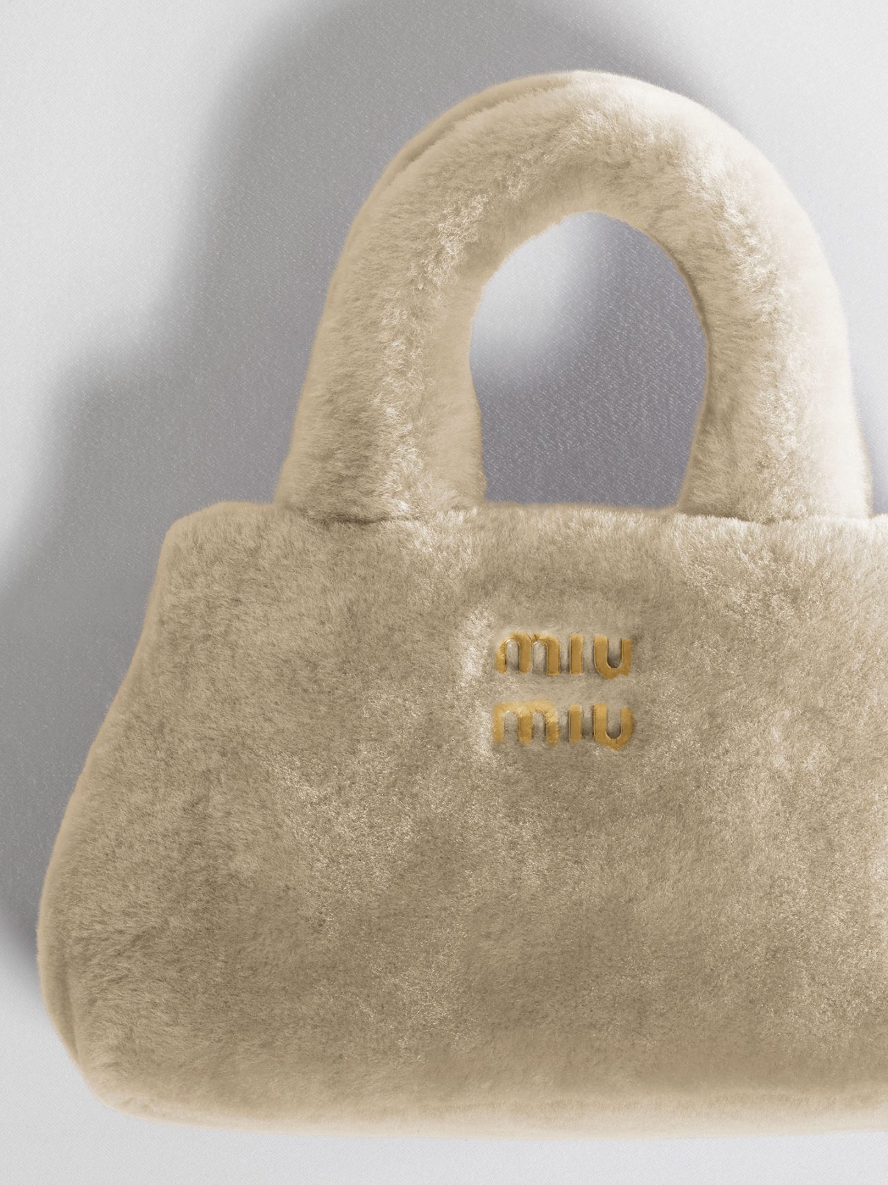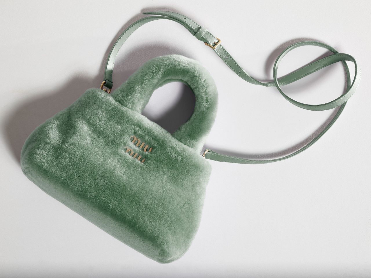 アイコニックな「ミュウワンダー」バッグが柔らかな風合いのシープファー素材で登場するほか、トートバッグ、トップハンドルバッグ、ショルダーバッグをはじめ、スモールレザーグッズや、バケットハット、イヤーマフラー、ヘアアクセサリー、スマートフォンケース、キーリングなどのアクセサリーが揃う。カラーはホワイト、エクリュ、ブルー、グリーン、ピンクなどが展開される。