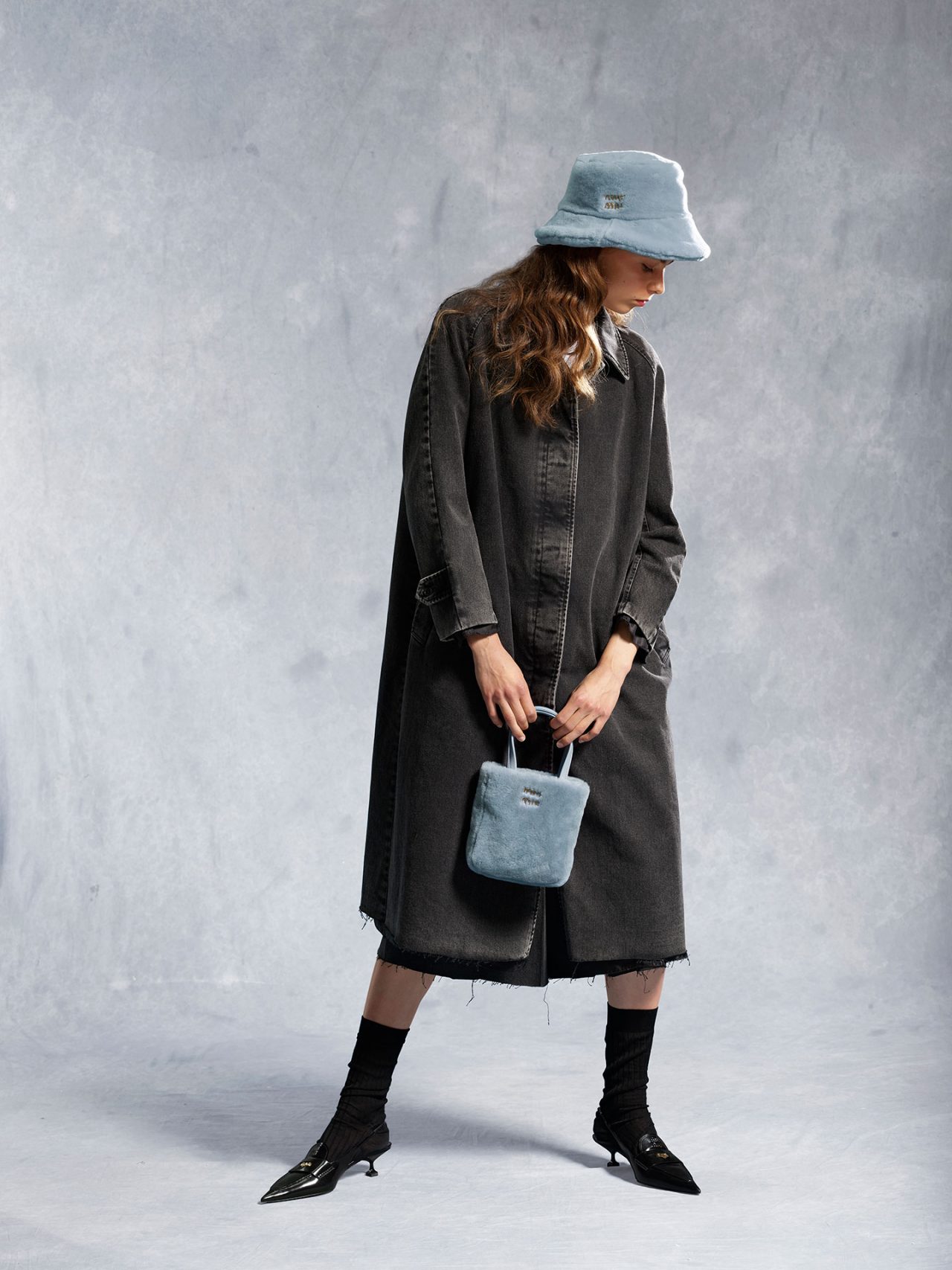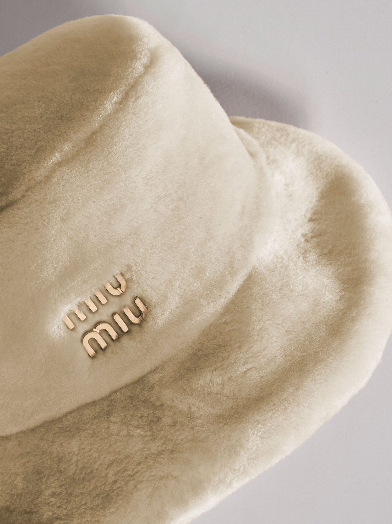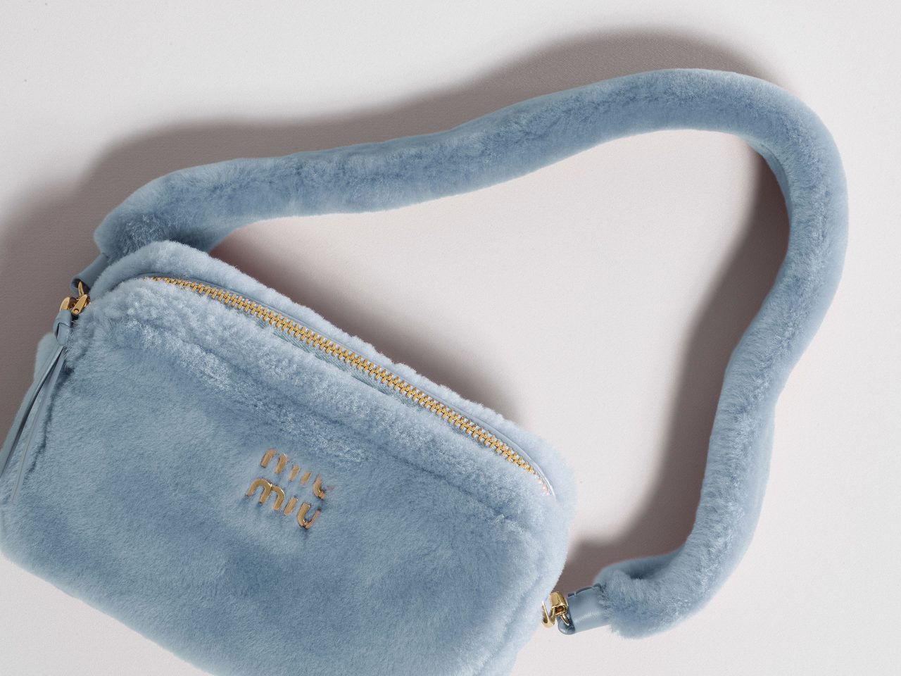 アイコニックな「ミュウワンダー」バッグが柔らかな風合いのシープファー素材で登場するほか、トートバッグ、トップハンドルバッグ、ショルダーバッグをはじめ、スモールレザーグッズや、バケットハット、イヤーマフラー、ヘアアクセサリー、スマートフォンケース、キーリングなどのアクセサリーが揃う。カラーはホワイト、エクリュ、ブルー、グリーン、ピンクなどが展開される。