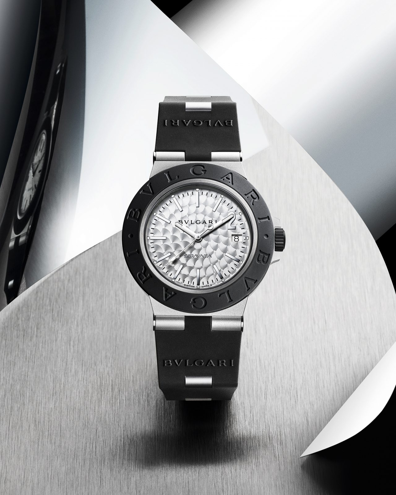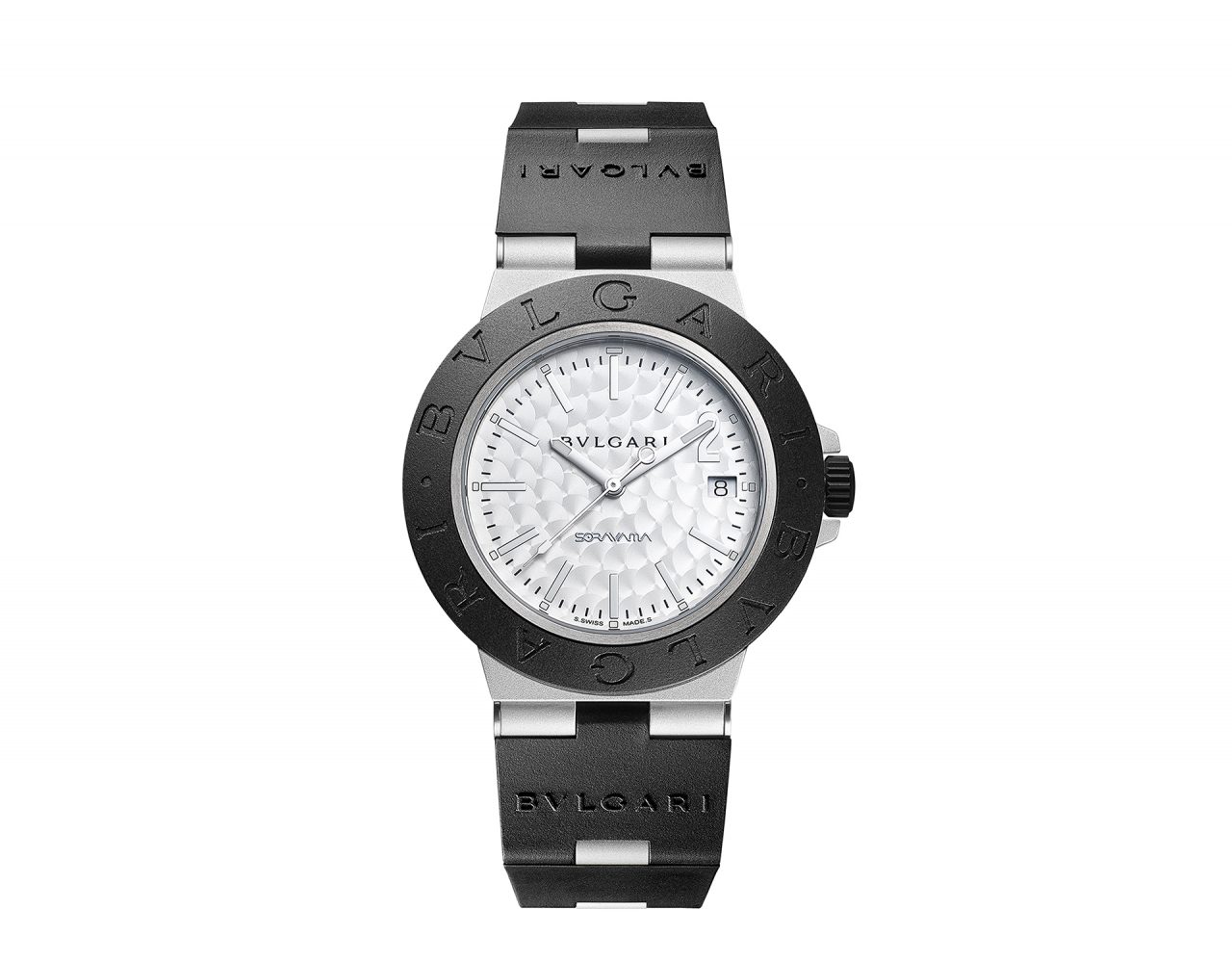 2世代にわたり革命的なアプローチを続けてきた「ブルガリ アルミニウム」。1998年にブラックとホワイトベースのスポーティかつシックなデザインをし、革命的なアルミニウムとラバーの素材の組み合わせで登場し、2020年には機械式自動巻きムーブメントを取り入れリニューアルされた。タイムレスなイタリアンデザインの魅力とメカニカルの卓越性が融合された逸品である。