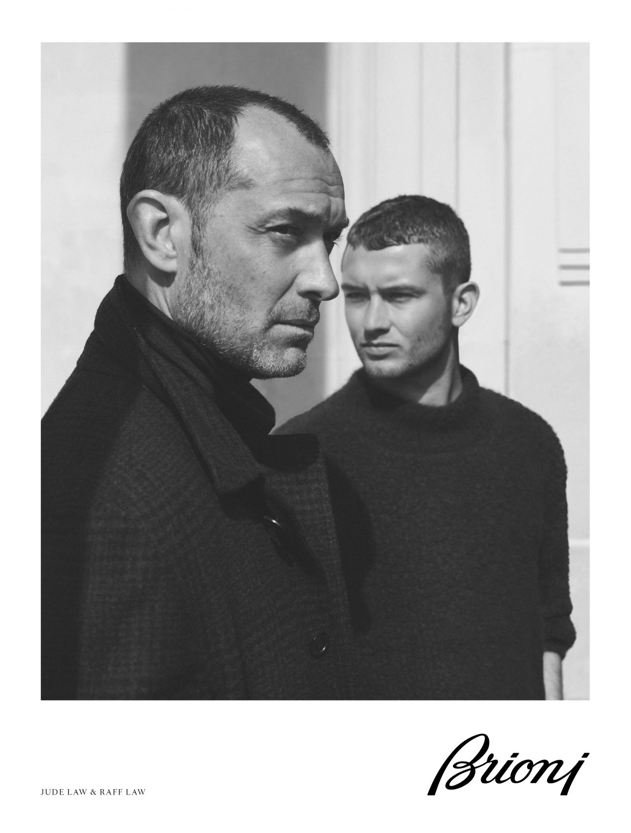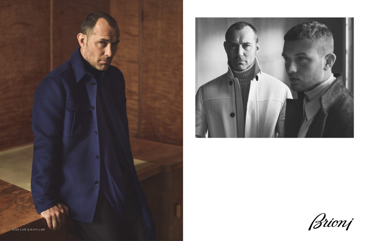 Jude Law は、「ブリオーニとの第2章は、アンネマリークとのコラボレーションで、息子のラフとの関係をよりパーソナルな側面から表現することができ、とても嬉しく思っています。撮影現場も、ブリオーニの服も、安心感がありとてもリラックスできました」と述べた。