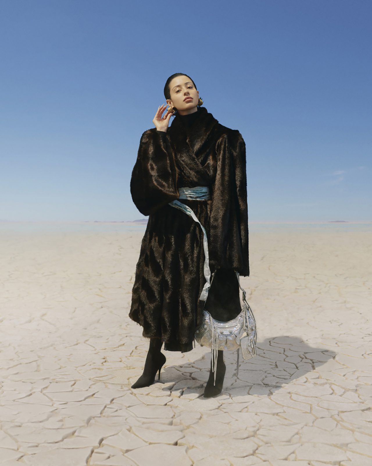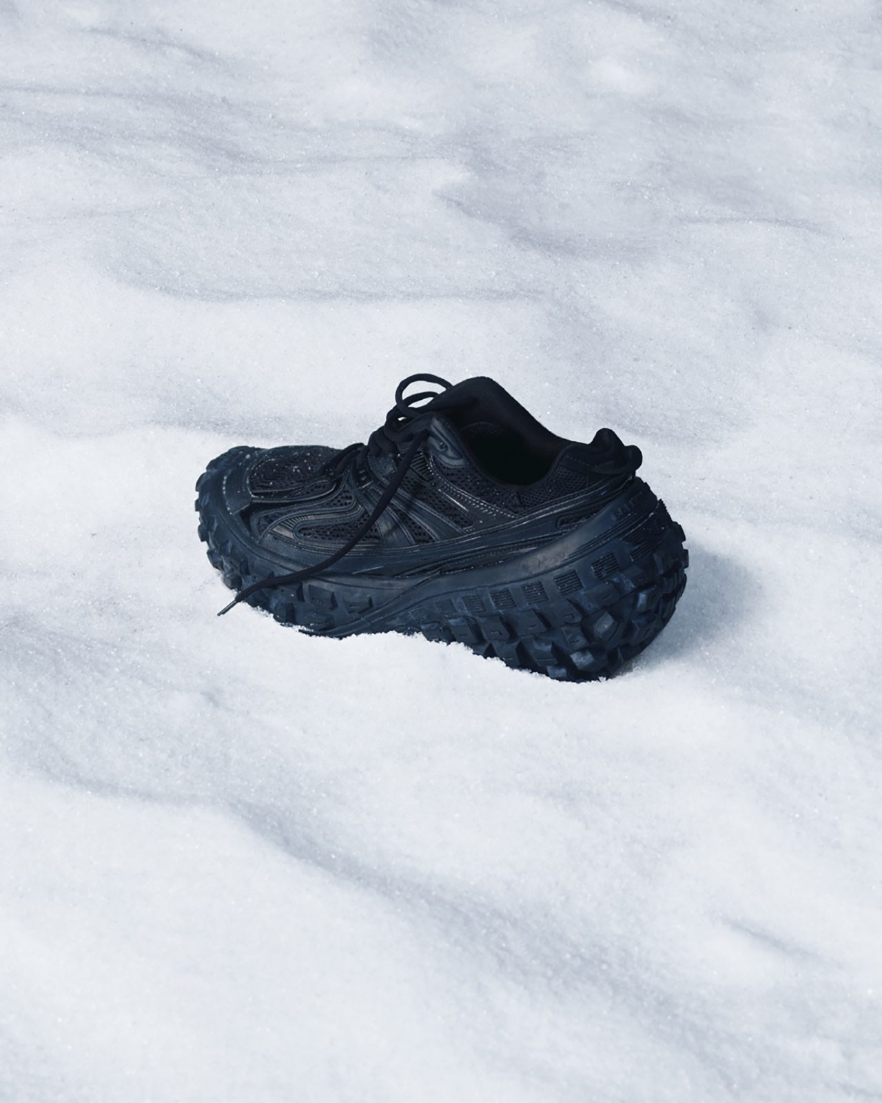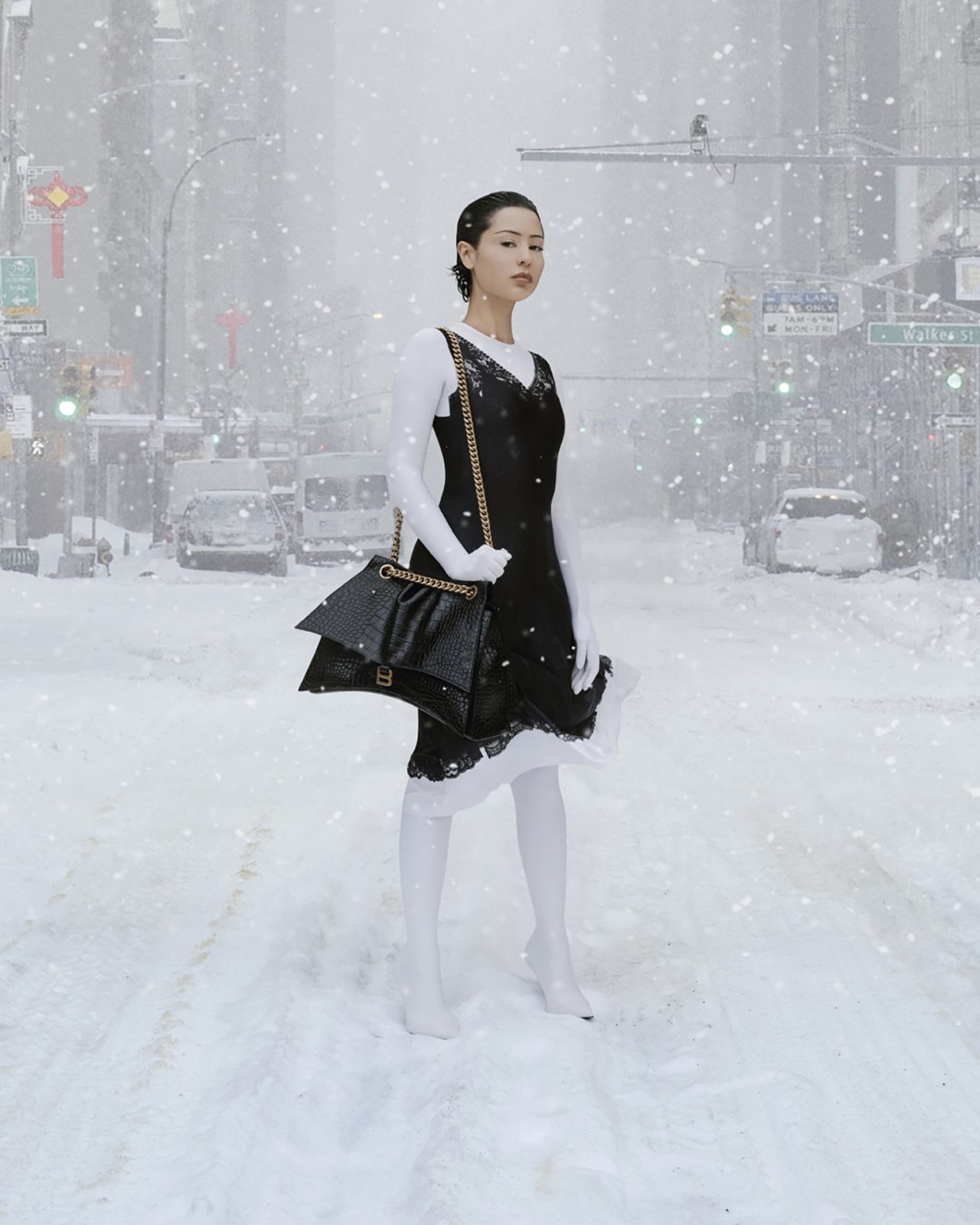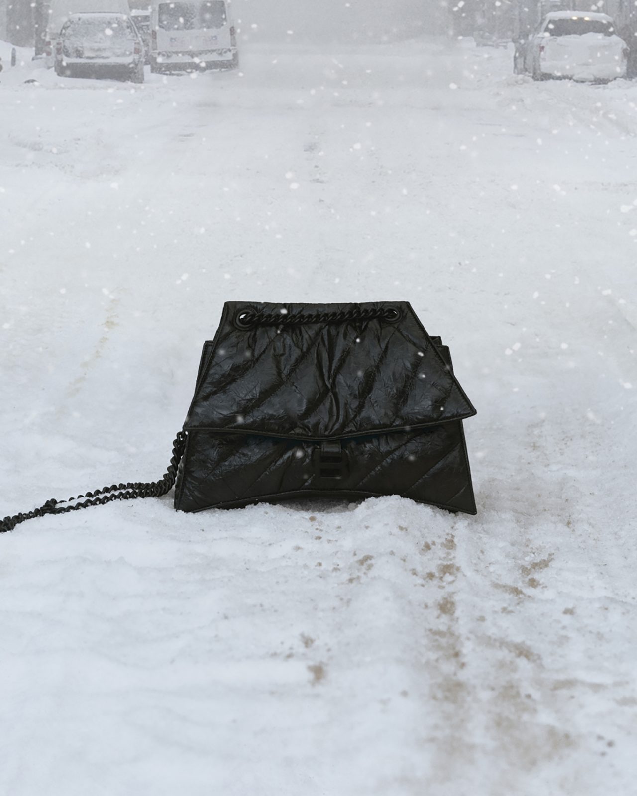 ガラス製のドームに吹き荒れる吹雪の中、2022年3月に発表された BALENCIAGA (バレンシアガ) Winter 22コレクション。キャンペーンでは、「天気がほぼシミュレートされる未来の時代」がテーマとして掲げられ、幅広いジャンルで活躍するキャストたちが集結した。感情に訴えかける表現力豊かな作品で知られる、ベルリンの写真家の Daniel Roché (ダニエル・ロシュ) がフォトグラファーを務め、ユニークで実験的なアニメーションに注力する Mau Morgó (マウ・モウゴ) が映像制作を手掛けた。