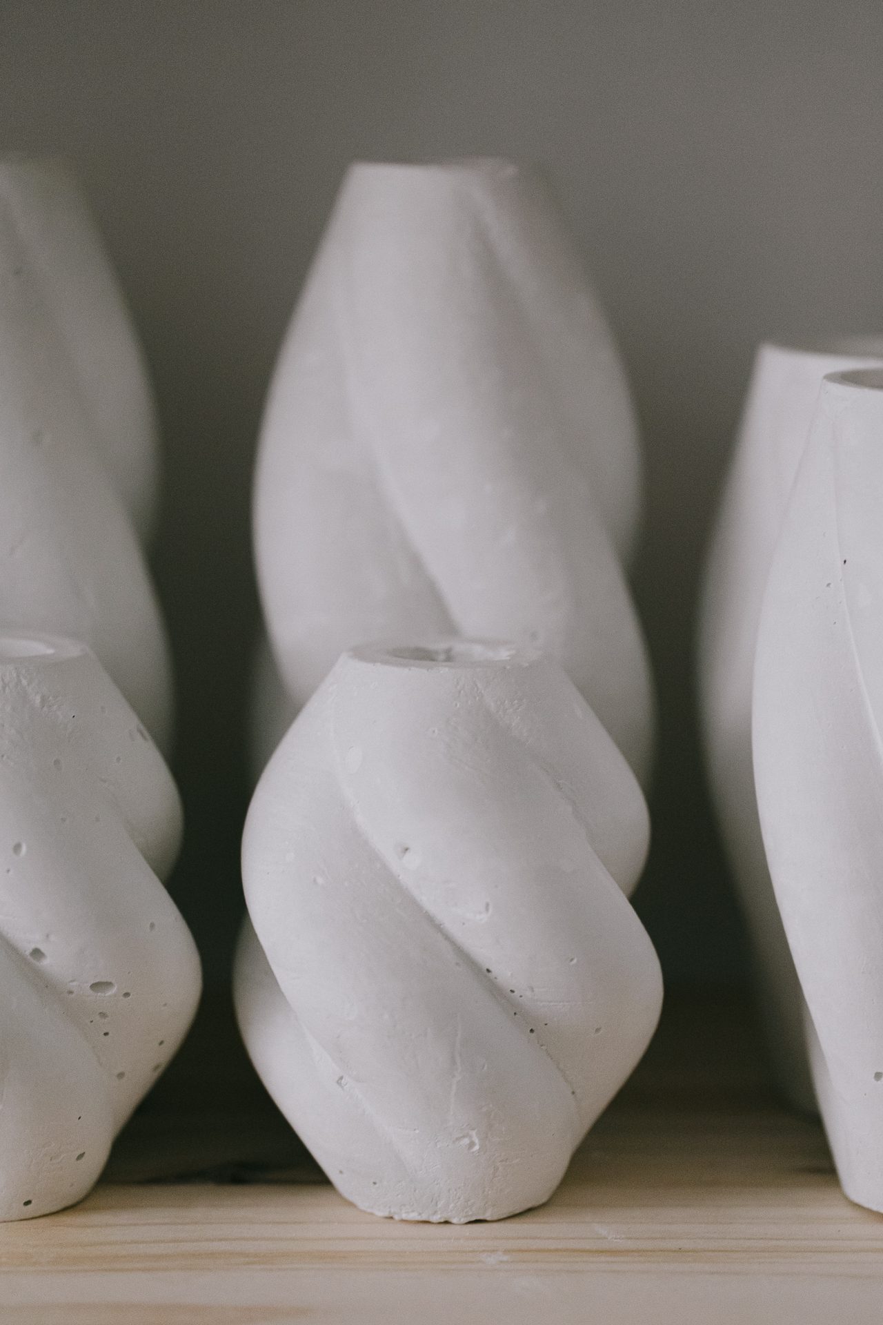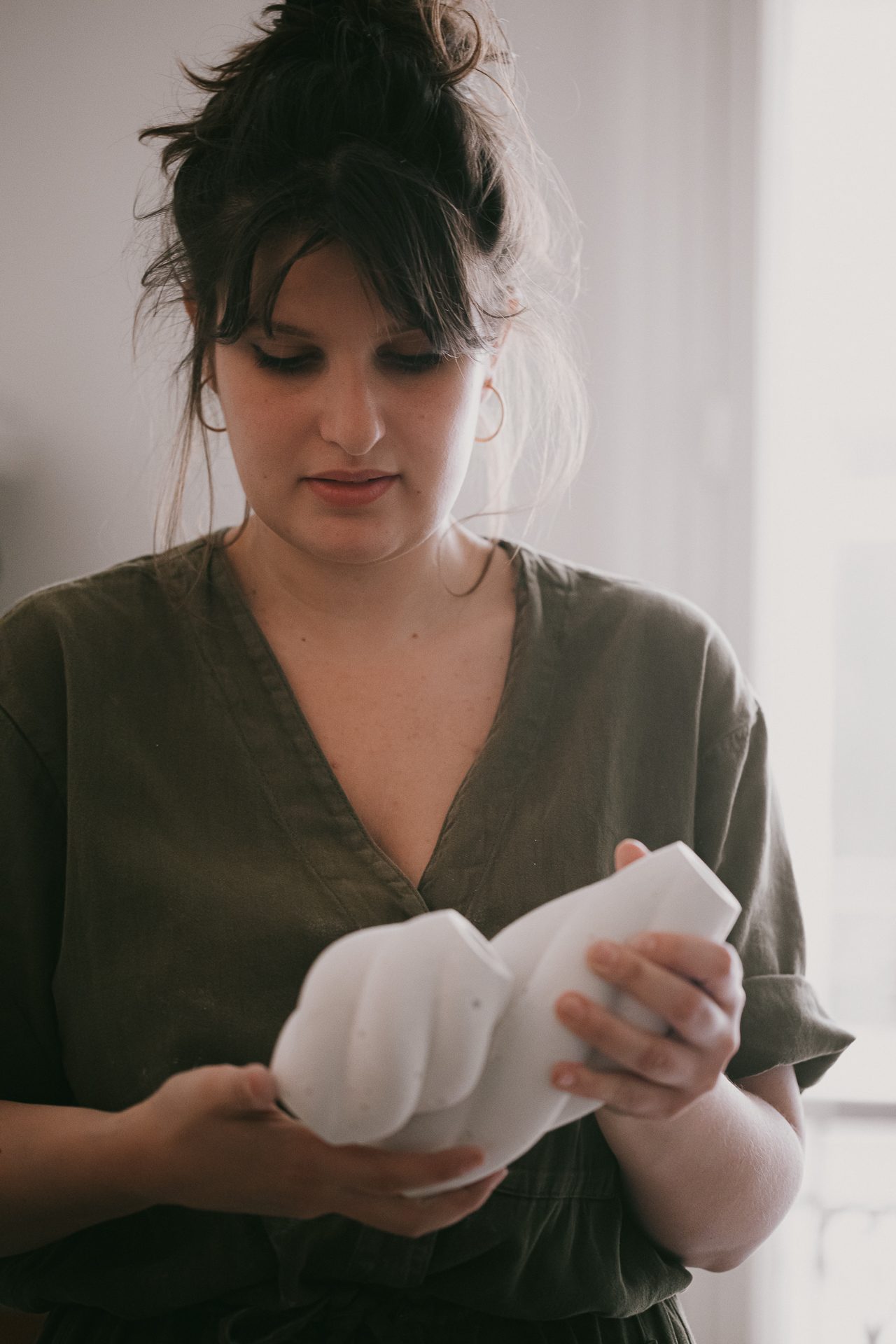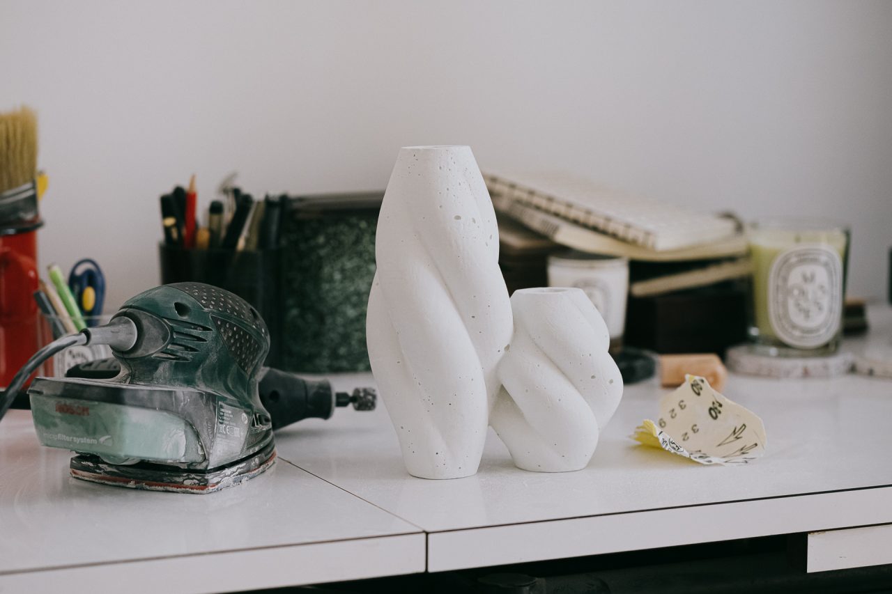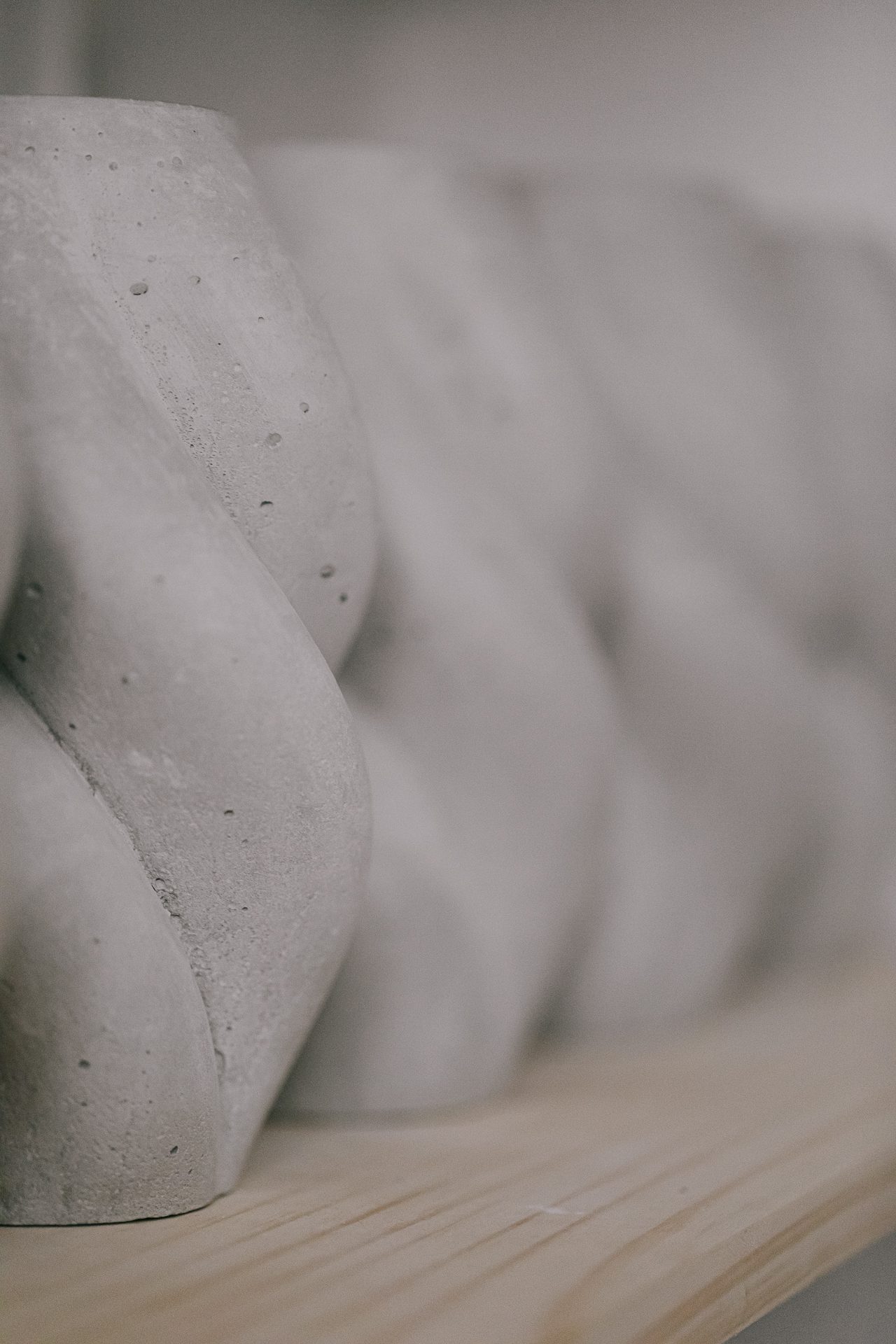 芸術家・彫刻として活動する Sarah Naud (サラ・ノー) は、素材にコンクリートを用い、キャンドルホルダー3部作をデザイン。同じ作品を制作しないという、彼女の最も職人的なプロセスは、鋳造、制作、装飾的な仕上げに至るまで一貫している。その手仕事こそが、ありふれていながらも、使いこなすのが難しいとされる素材コンクリートから、素晴らしいフォルムを持った作品へと見事に昇華させた。
