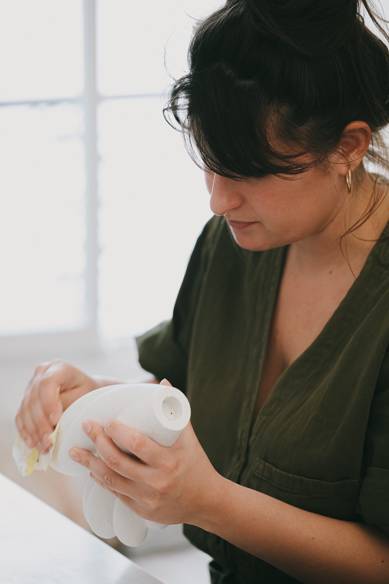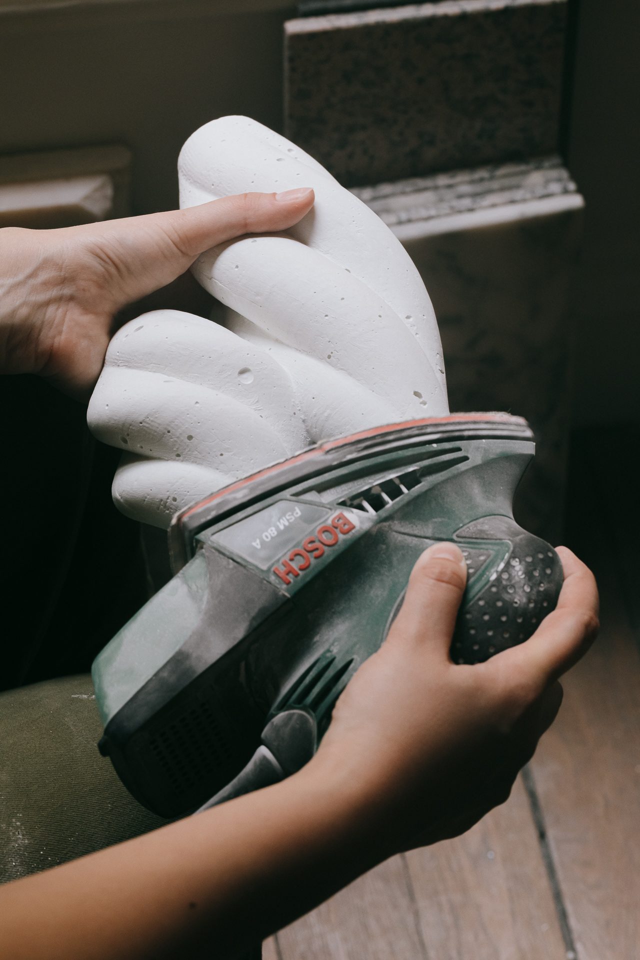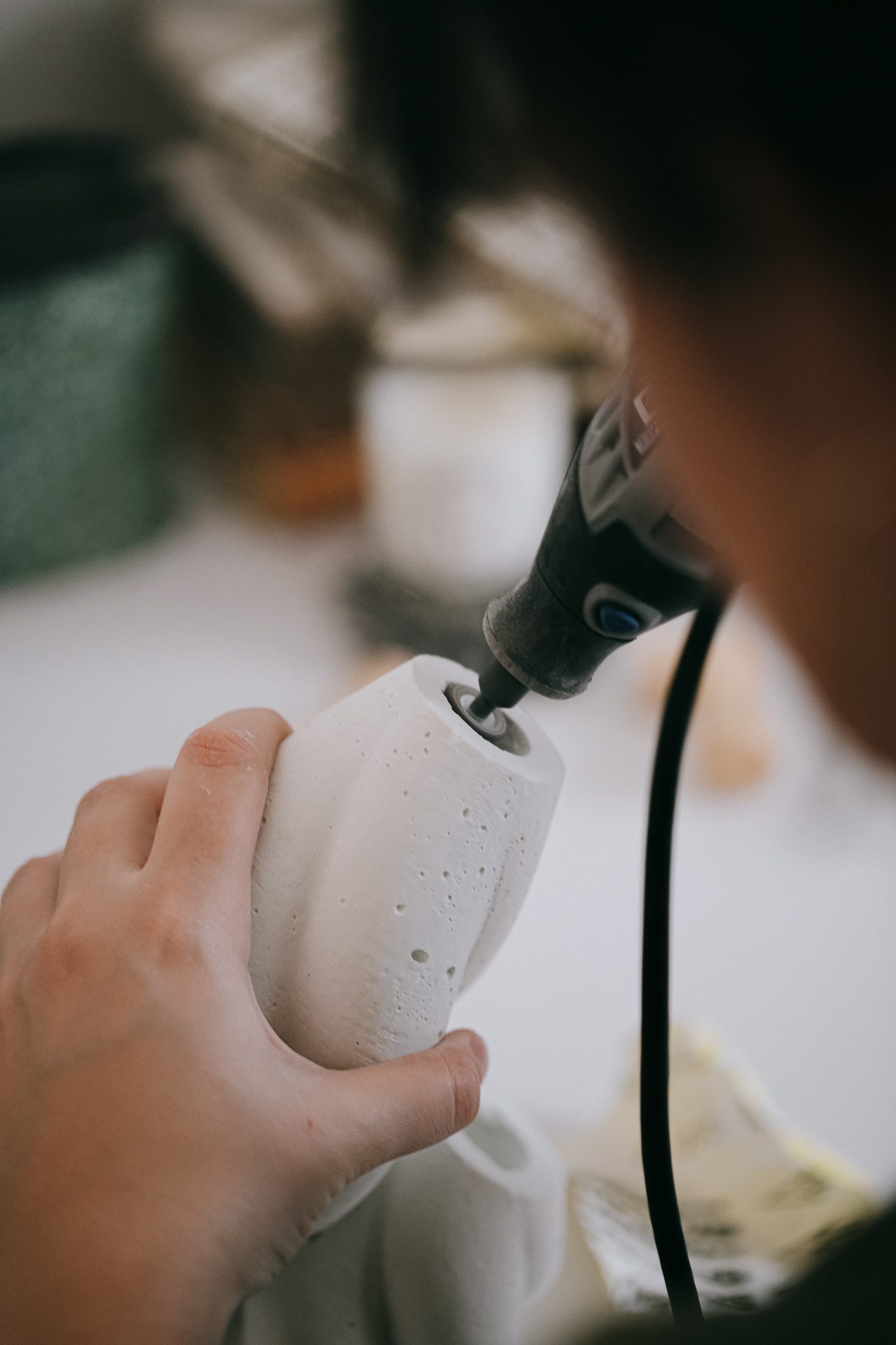 芸術家・彫刻として活動する Sarah Naud (サラ・ノー) は、素材にコンクリートを用い、キャンドルホルダー3部作をデザイン。同じ作品を制作しないという、彼女の最も職人的なプロセスは、鋳造、制作、装飾的な仕上げに至るまで一貫している。その手仕事こそが、ありふれていながらも、使いこなすのが難しいとされる素材コンクリートから、素晴らしいフォルムを持った作品へと見事に昇華させた。