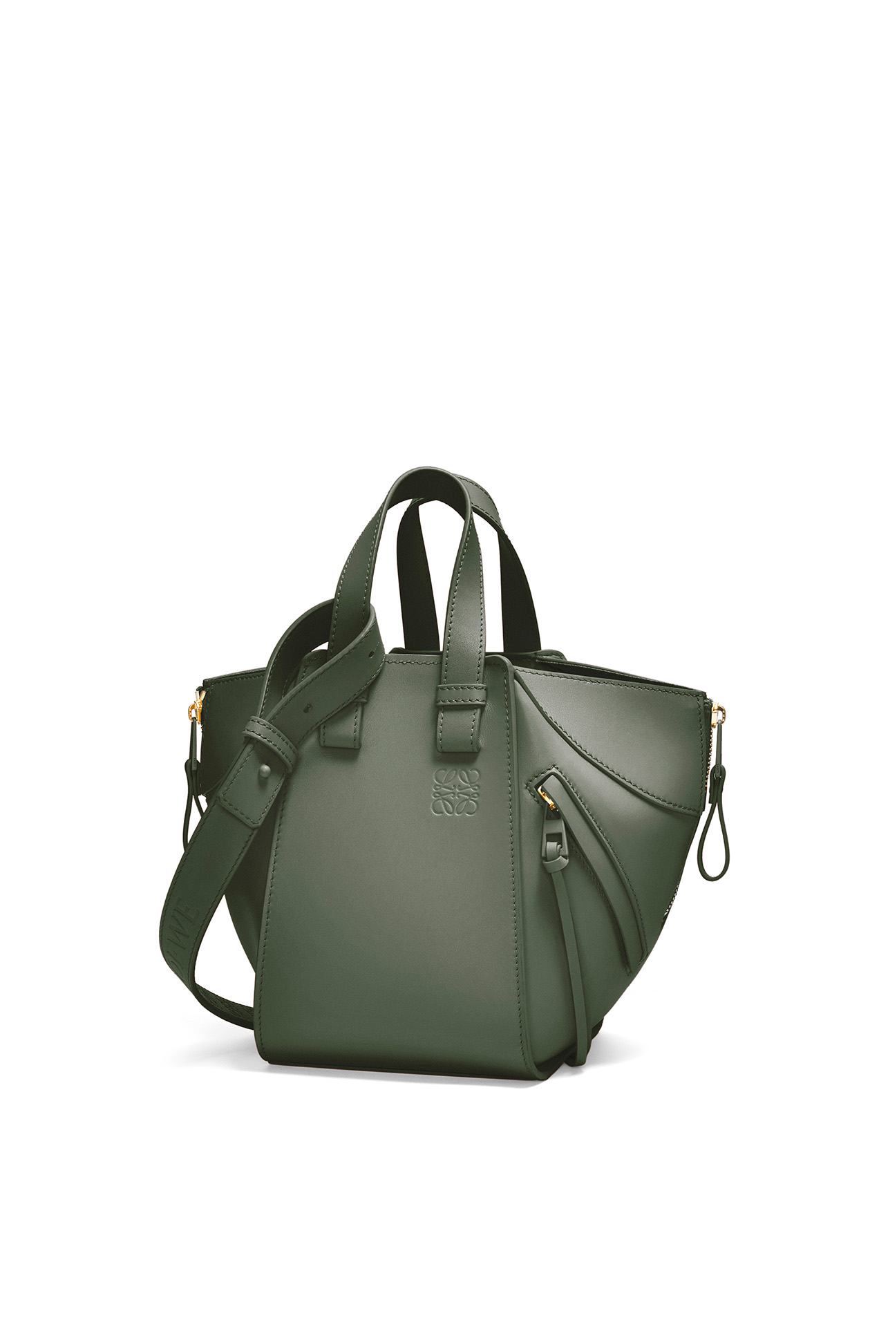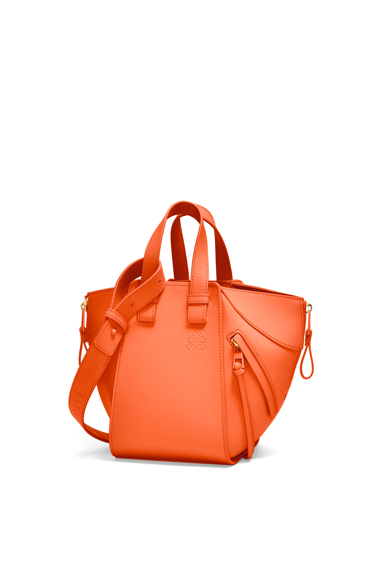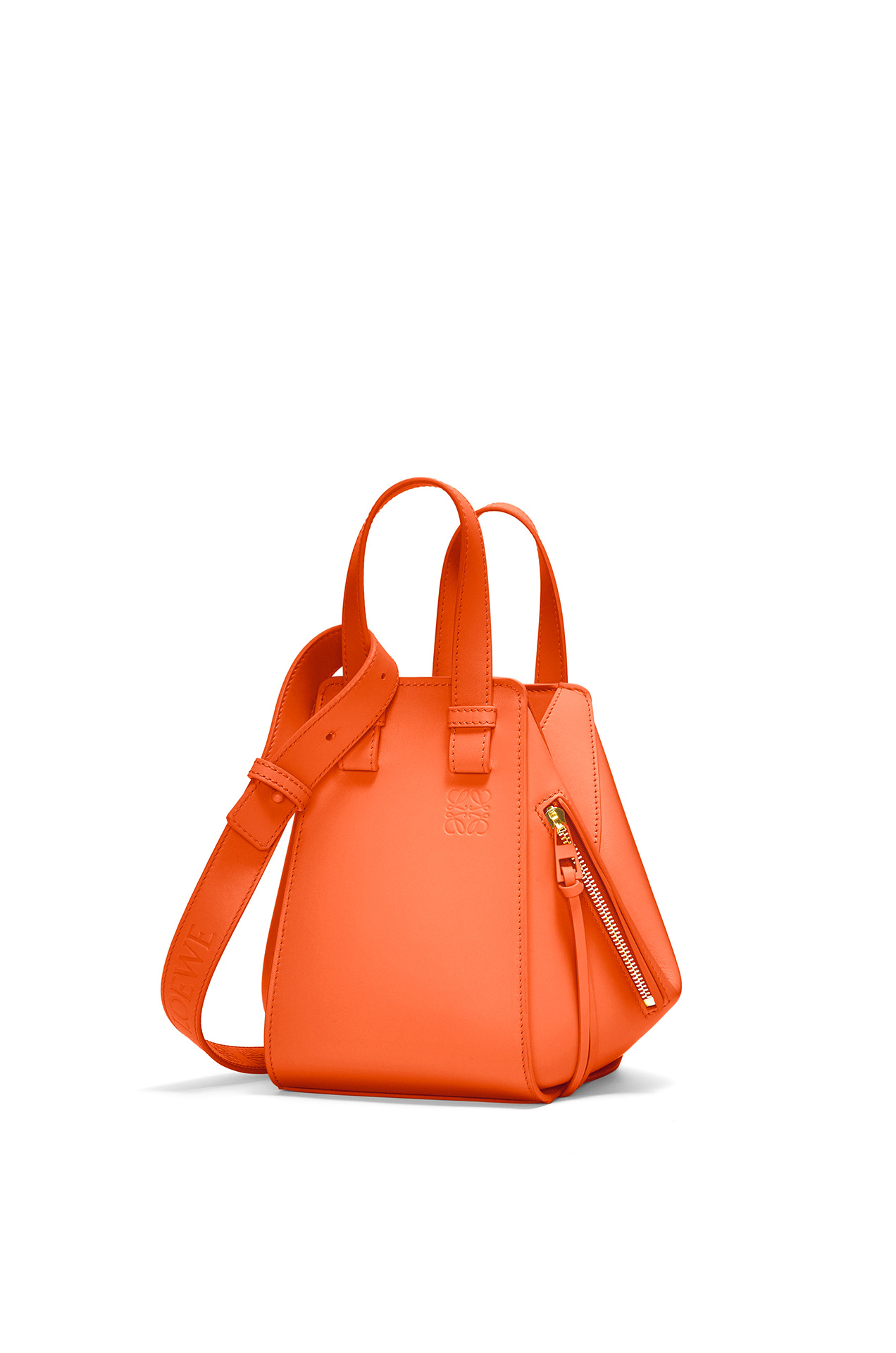 圧倒的なヒットを記録した「ハンモックバッグ」のプロポーションを引き継ぎながらも、大胆なカラーとサイズでフレッシュにアップデートされた「ハンモック コンパクト」。装飾を削ぎ落とした単色デザインで、より一層洗練された佇まいを演出。ストラップには、滑らかなサテンカーフレザーが使用されている。アクアマリン、ヌード、ヴィンテージカーキ、プラムローズ、オレンジの全5色で展開中だ。