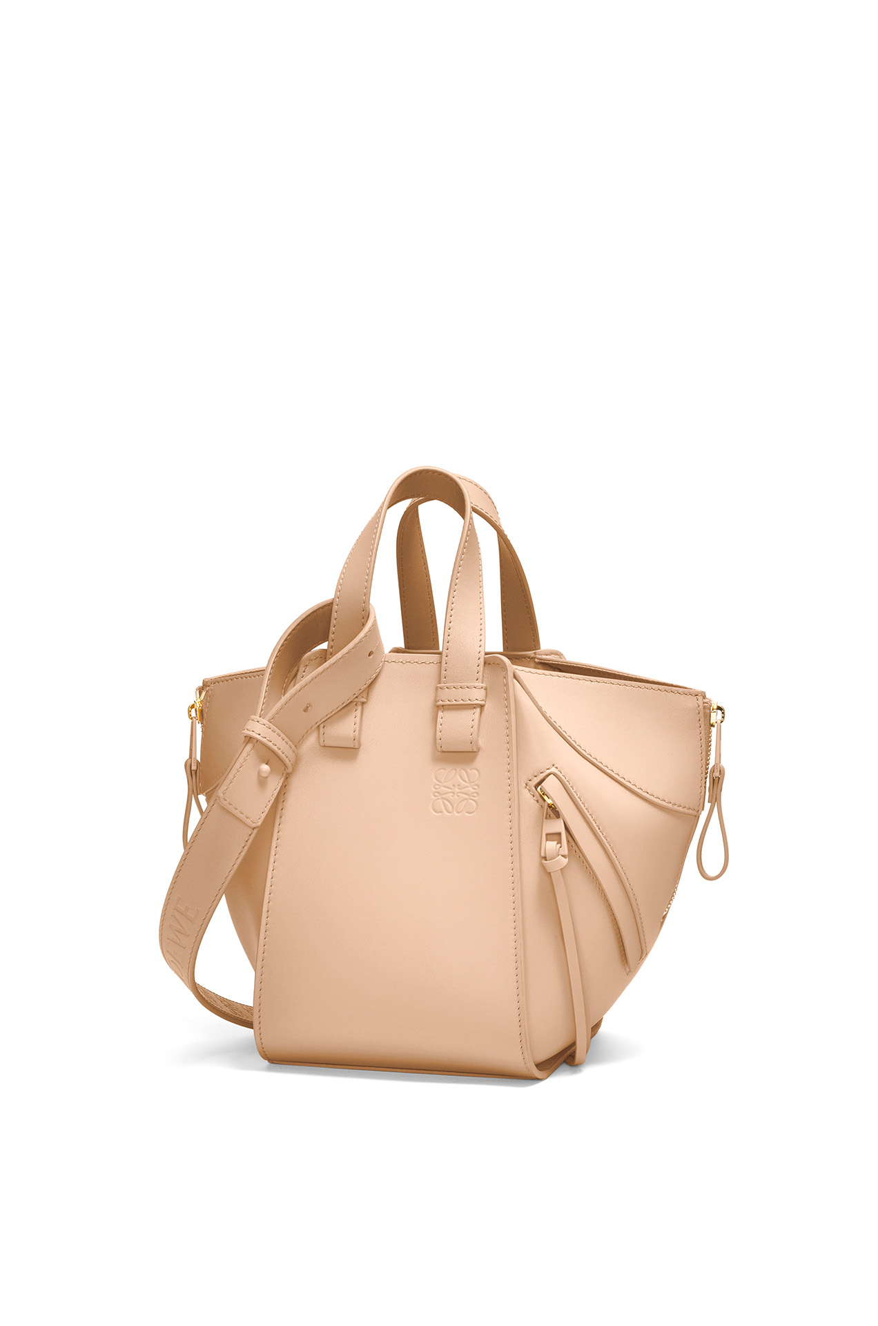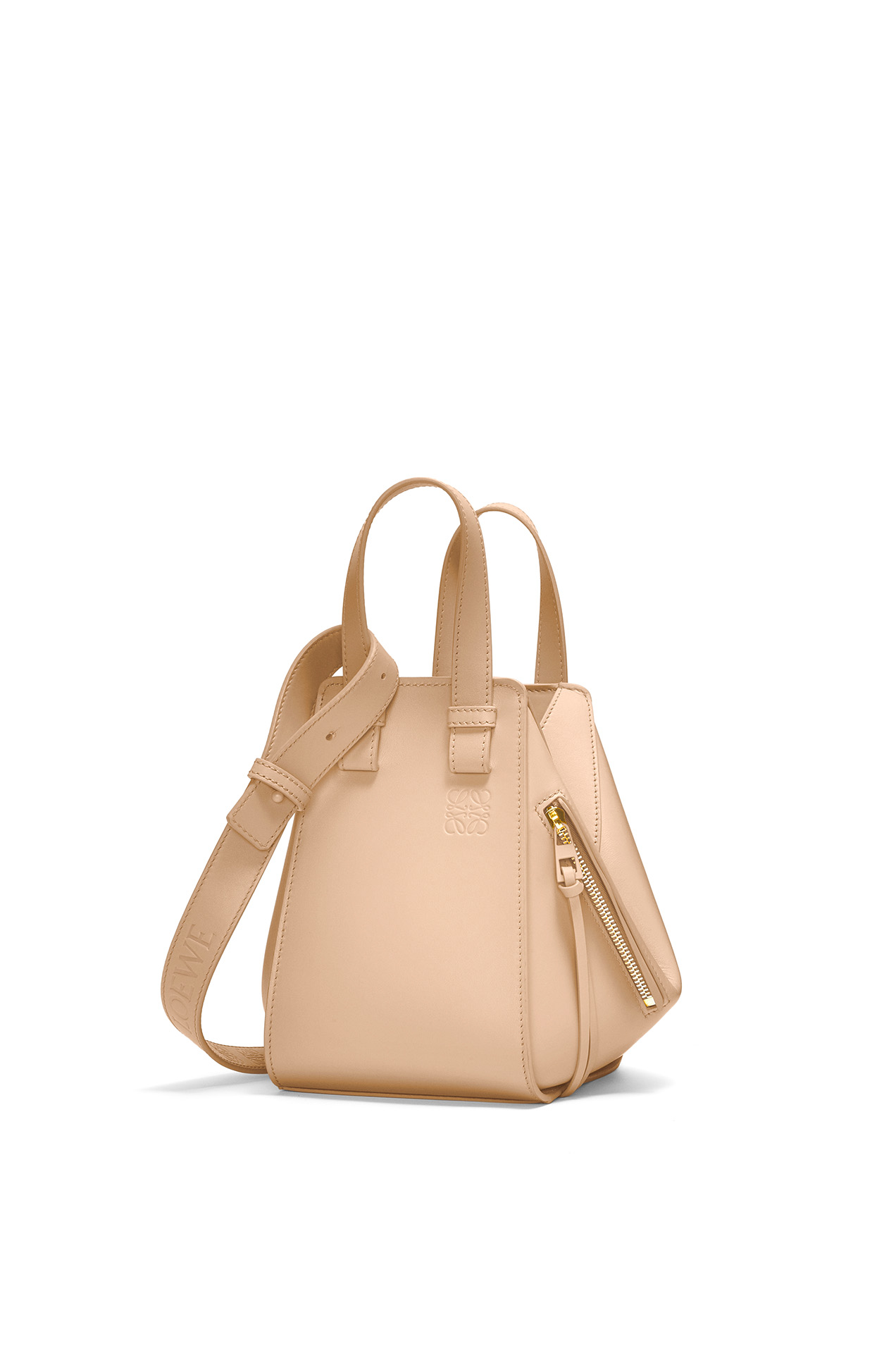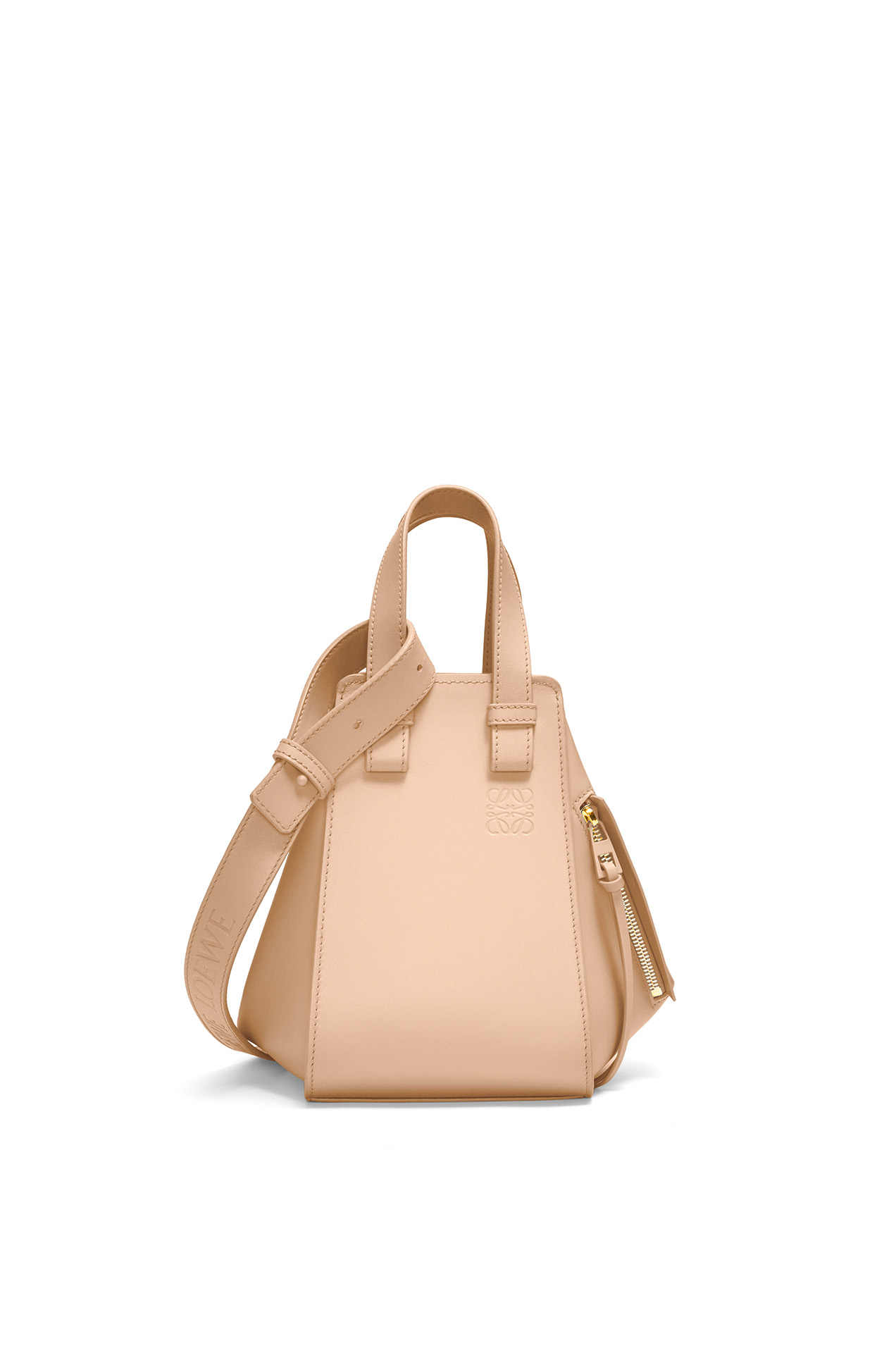 圧倒的なヒットを記録した「ハンモックバッグ」のプロポーションを引き継ぎながらも、大胆なカラーとサイズでフレッシュにアップデートされた「ハンモック コンパクト」。装飾を削ぎ落とした単色デザインで、より一層洗練された佇まいを演出。ストラップには、滑らかなサテンカーフレザーが使用されている。アクアマリン、ヌード、ヴィンテージカーキ、プラムローズ、オレンジの全5色で展開中だ。