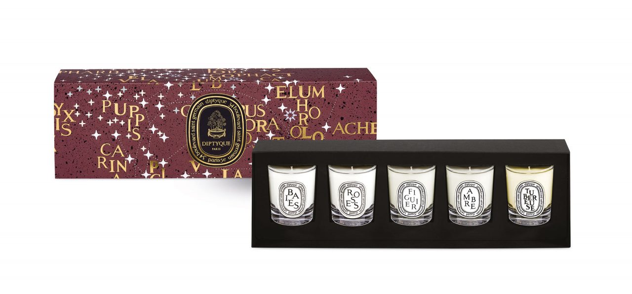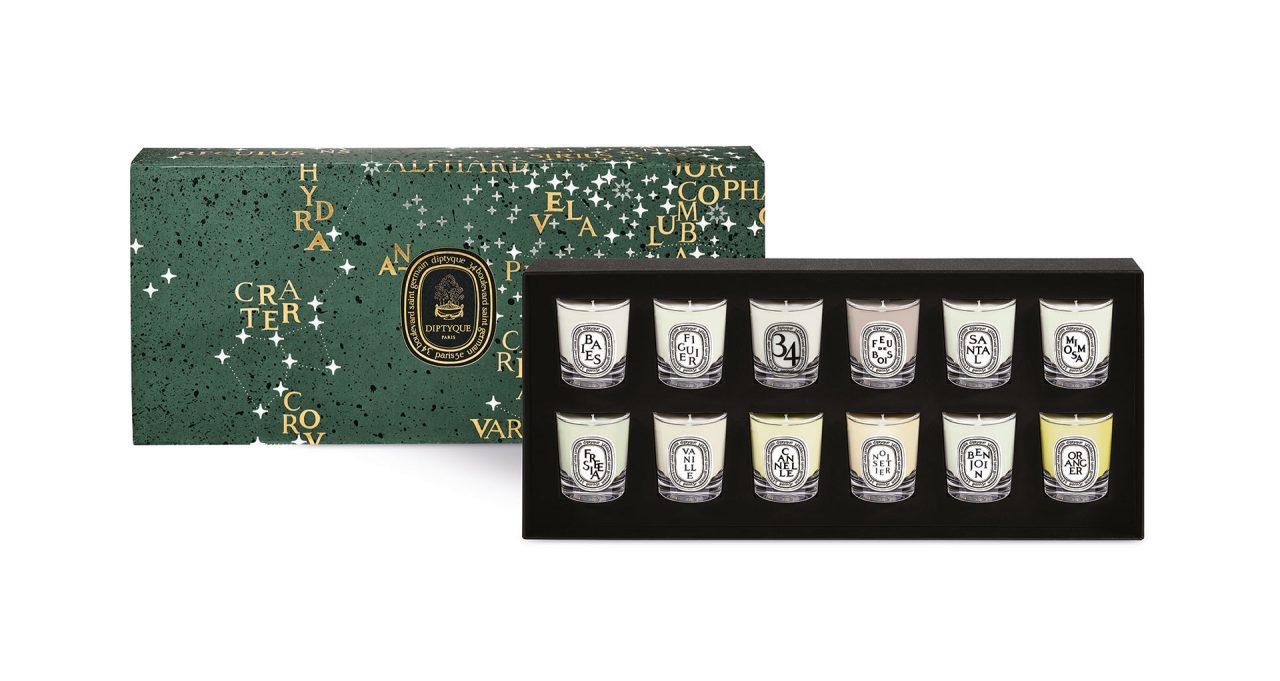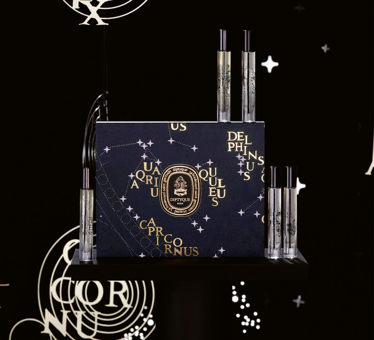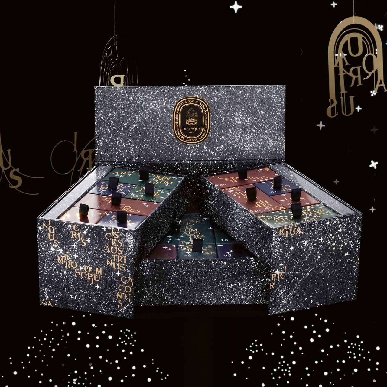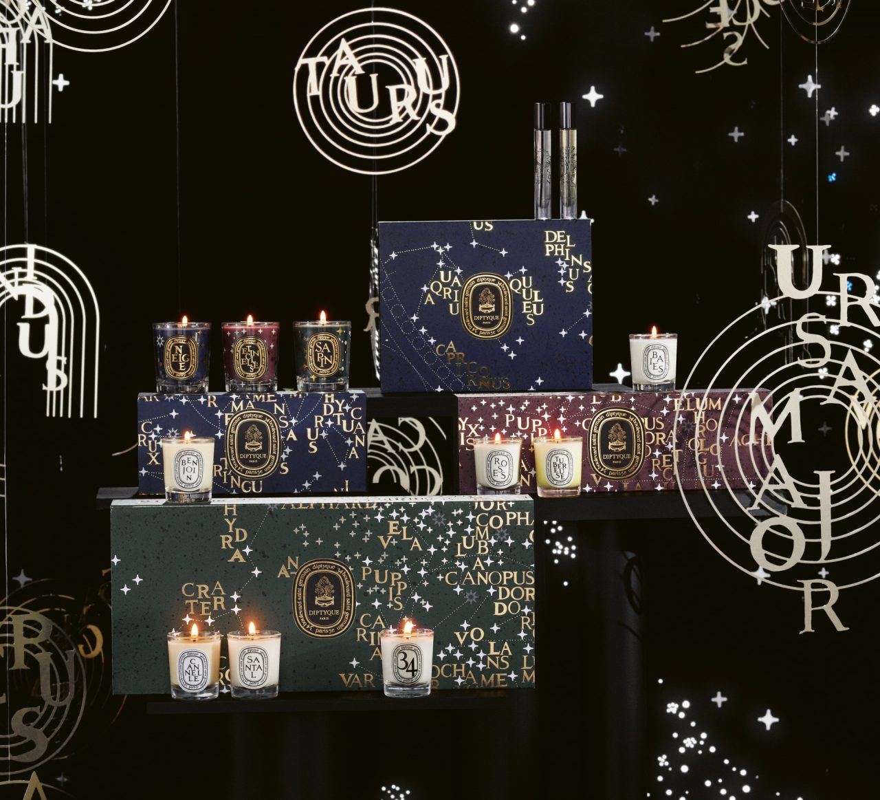 今回のホリデーコレクションのインスピレーションとなったのは「星空」。ゴールドやシルバーの燐光を放つ星や文字が輝く、限定のキャンドルやフレグランスを展開する。コレクション第1弾で特に注目したいのが、3種の香りがセットになった「限定版フレグランス キャンドル」。ダークグリーンのキャンドル「Sapin (サパン)」は、甘いミモザのアクセントにもみの木のウッディなノートを溶け込ませ、「Neige (ネージュ)」は、ヘリオトープの花とホワイトムスクをブレンド。温かみのあるダークレッドのキャンドル「Étincelles (エタンセル)」は、コーヒーやチョコレートの美味しそうなノートが心を和らげる。