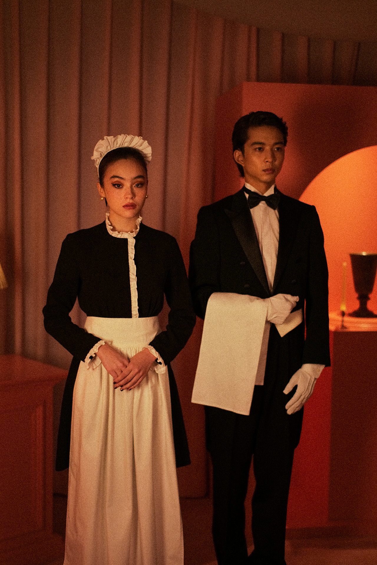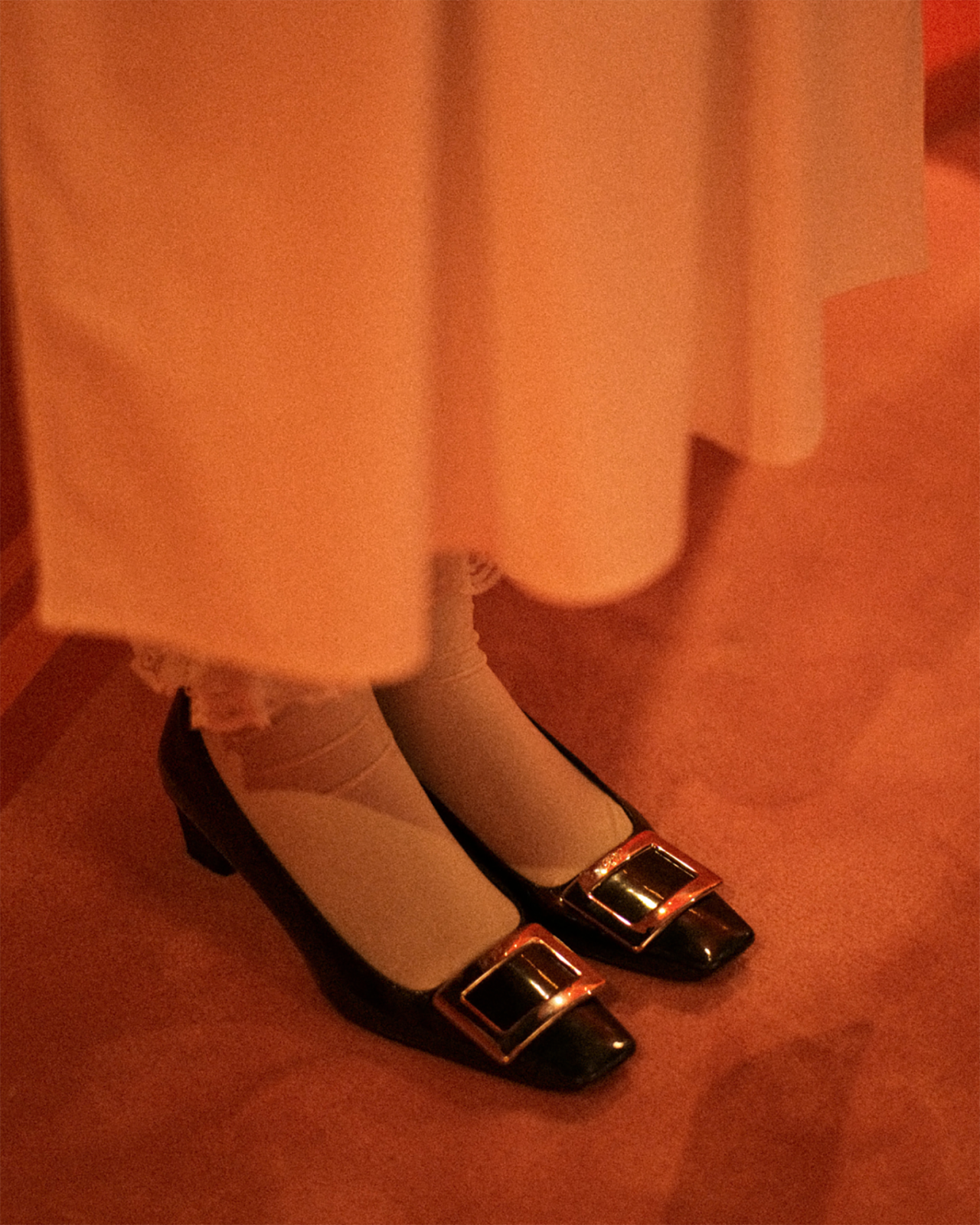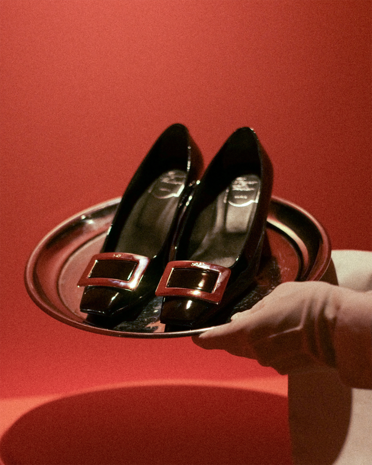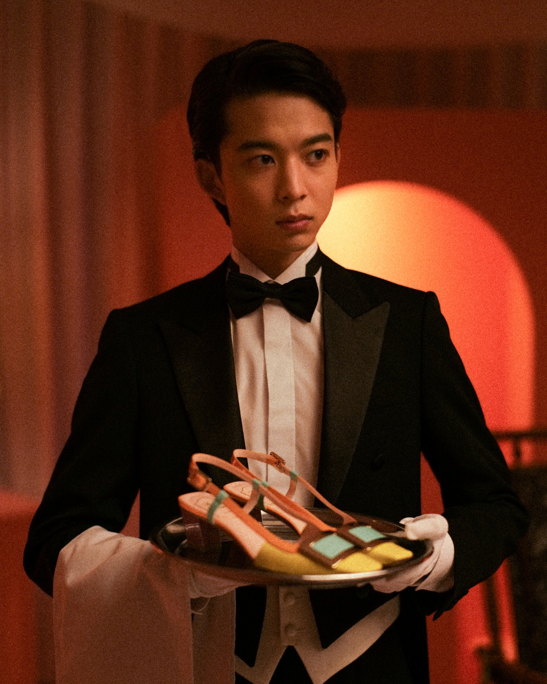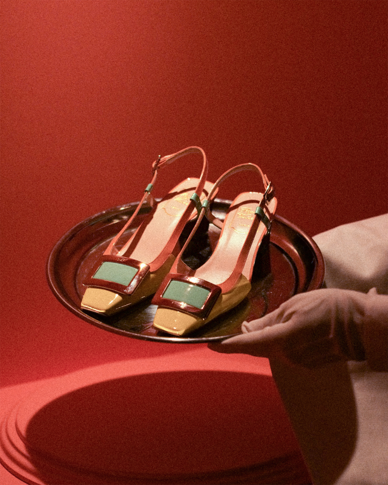 エレガントな伯爵夫人、その娘である美しい女主人、そして保守的な家族に対して少し反抗的でボヘミアンな孫娘たちが集結。忠実なメイドと執事が緊張した面持ちでディナーをサーブするが、伝説のシューズ「ベル ヴィヴィエ」が一足、行方不明になってしまう。 ユニークな登場人物と共に、クリエイティブ・ディレクター Gherardo Felloni (ゲラルド・フェローニ) を紹介するのは、メゾンの創業者でもある Roger Vivier (ロジェ・ヴィヴィエ) だ