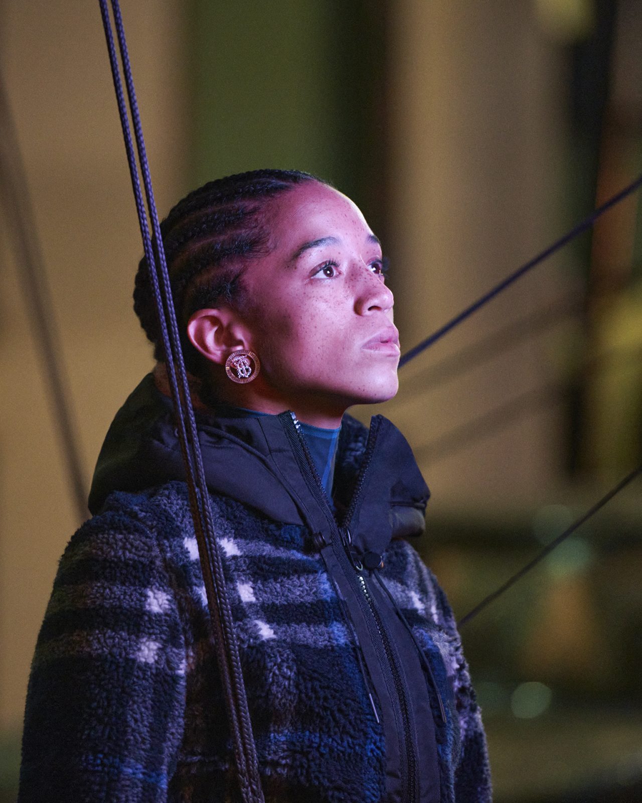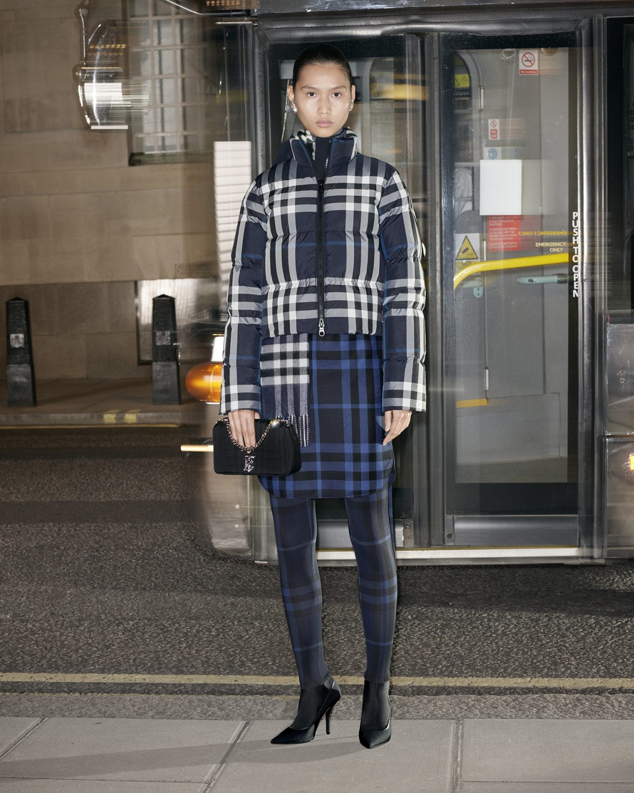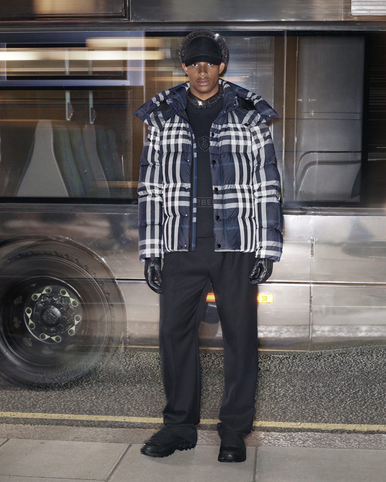 今回フィーチャーされたアウターウェアコレクションには、アウトドアから街中の探検まで、さまざまな冒険をナビゲートするためにデザインされた、テクニカルなアイテムが揃った。シーズナルカラーで彩られた「バファージャケット」、「フリース」、「シャツ」、「ニットウェア」をはじめ、オプティックホワイトとダークチャコールブルーのコントラストを効かせたカラーブロックの「ナイロンジャケット」や、ホースフェリープリントをあしらった「オーバーサイズパーカー」が登場。さらに、アイコニックな「トレンチコート」はよりモダンなプロポーションで刷新された。また、今回「Burberry Night Check (バーバリー ナイトチェック)」が最新パターンとして登場し、星が輝く夜空のような配色で、BURBERRY の自然界への愛情を表現している。