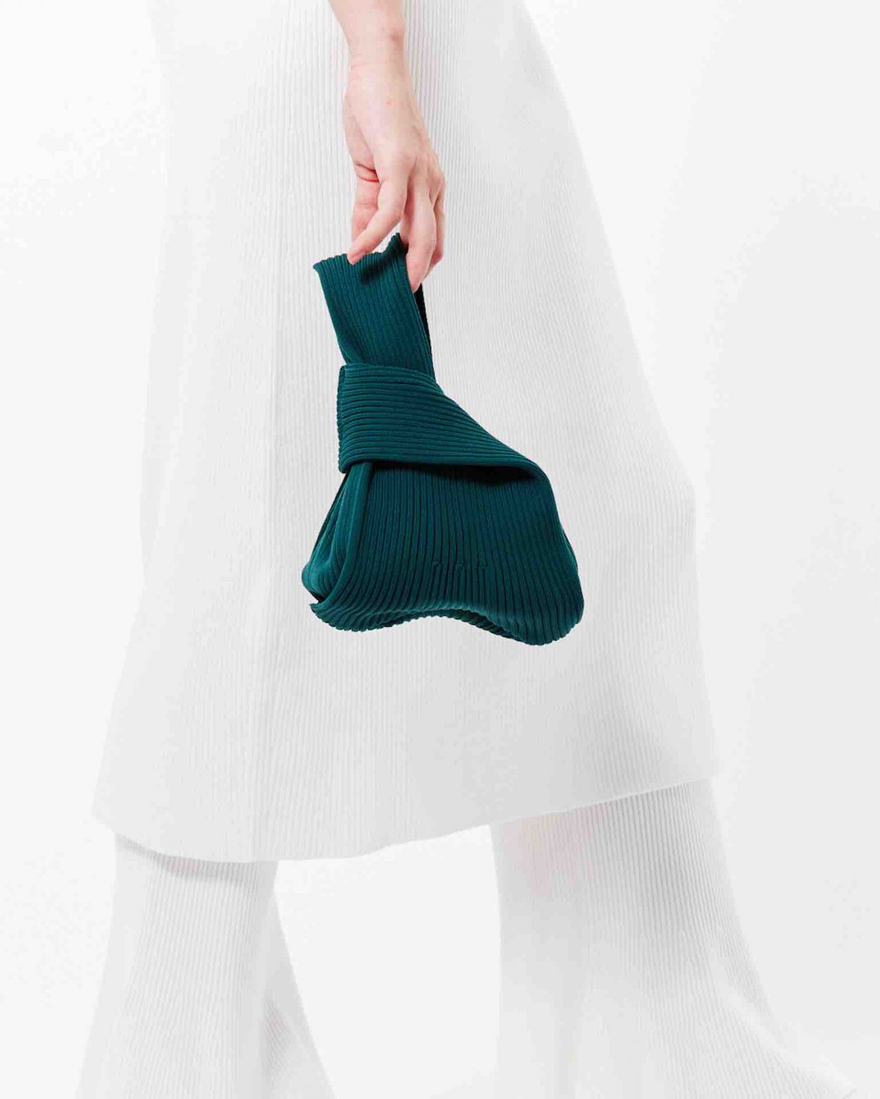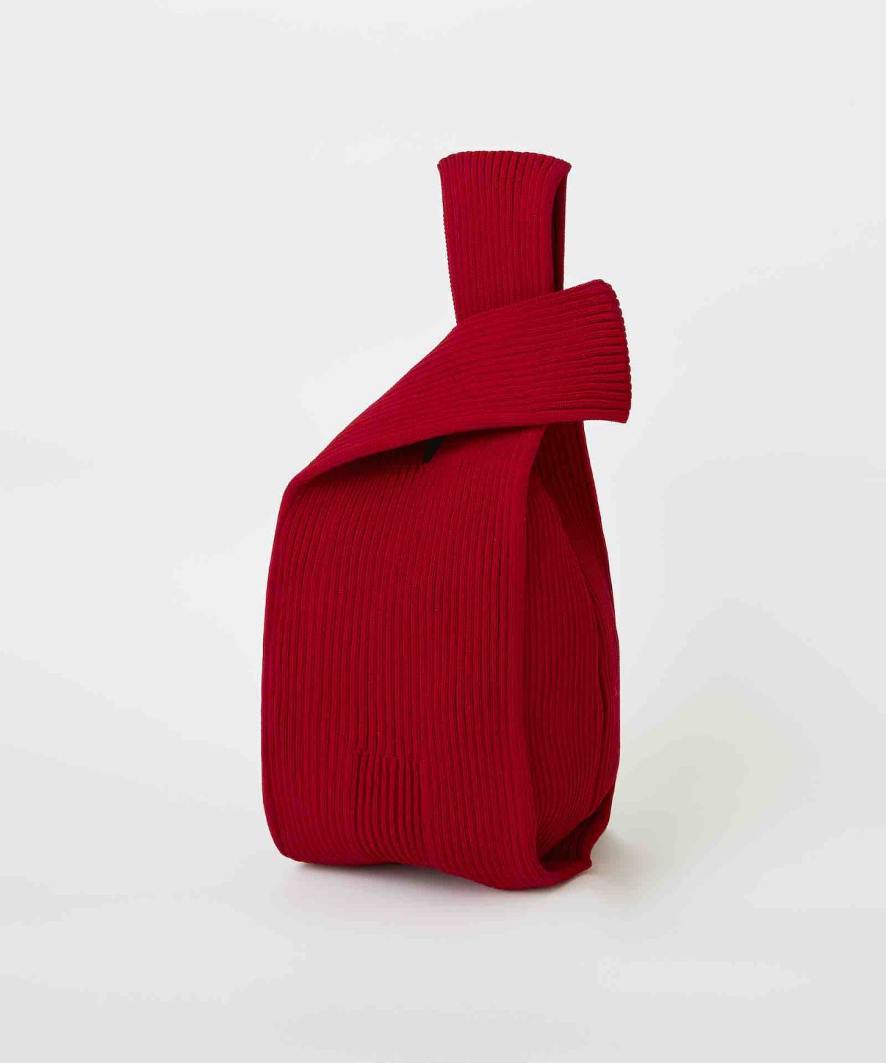 今回のオープンを記念して、都会のオケージョンを意識したレッドカラーの店舗限定アイテムがお目見え。さらに、1st シーズンから続く CFCL のアイコニックな「NOTCHED RIB BAG」の MINI サイズ(非売品)を、1万円以上の購入者のうち先着100名にプレゼント(CFCLの会員登録が必須)。過去1年間の生産で余った再生ポリエステルの残糸を使用した16色のバリエーション展開となっている(色は選べない可能性あり)。