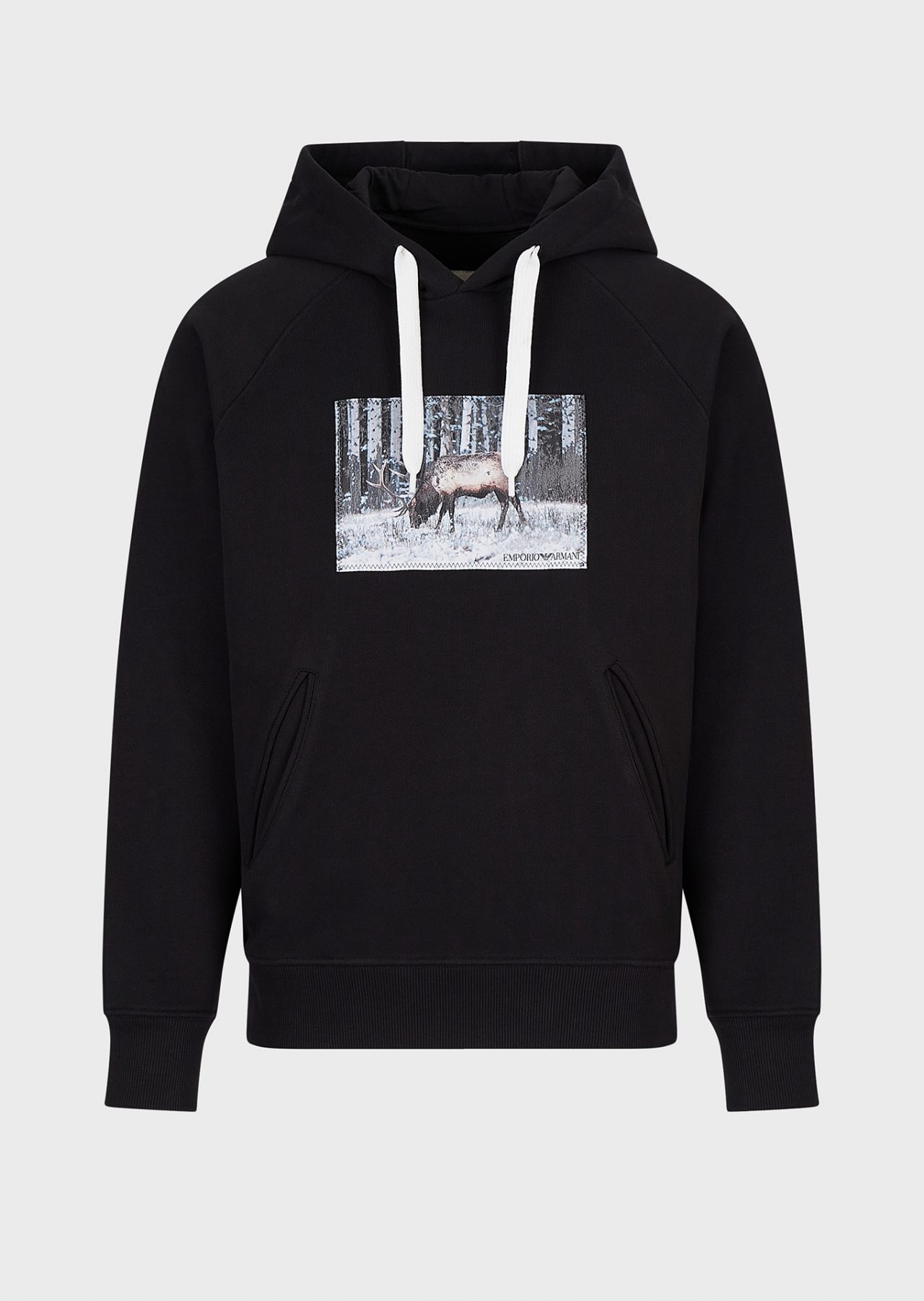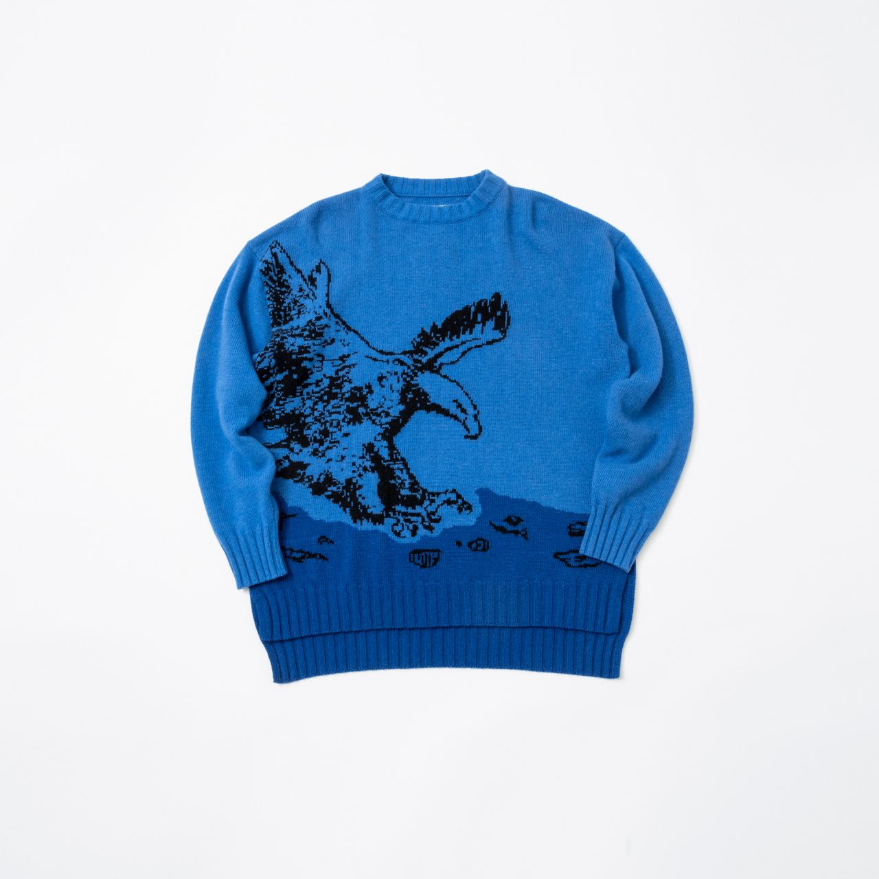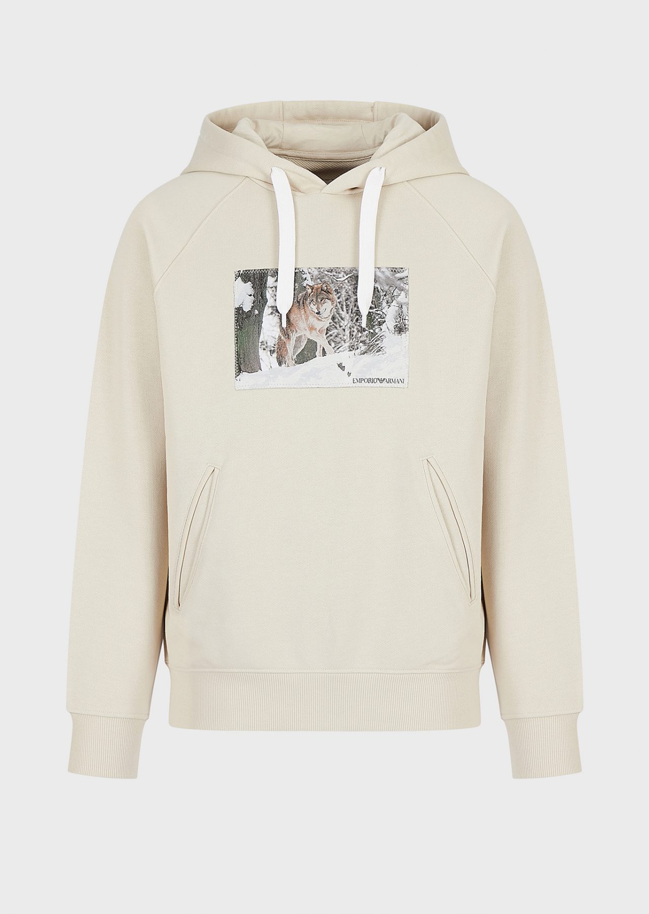 最新コレクションはニュートラルカラーをベースに、レッド、ブルー、イエローなど生き生きとした色使いが特徴的。北極圏から着想を得てオオカミやトナカイ、また Emporio Armani のアイコンでもあるイーグルも登場する。 氷河をイメージしたプリントが施されたアイテムは、伊勢丹新宿店にて先行発売予定。素材はボリューミーなニット、オーガニックコットン、柔らかなベルベットなど多岐にわたる。