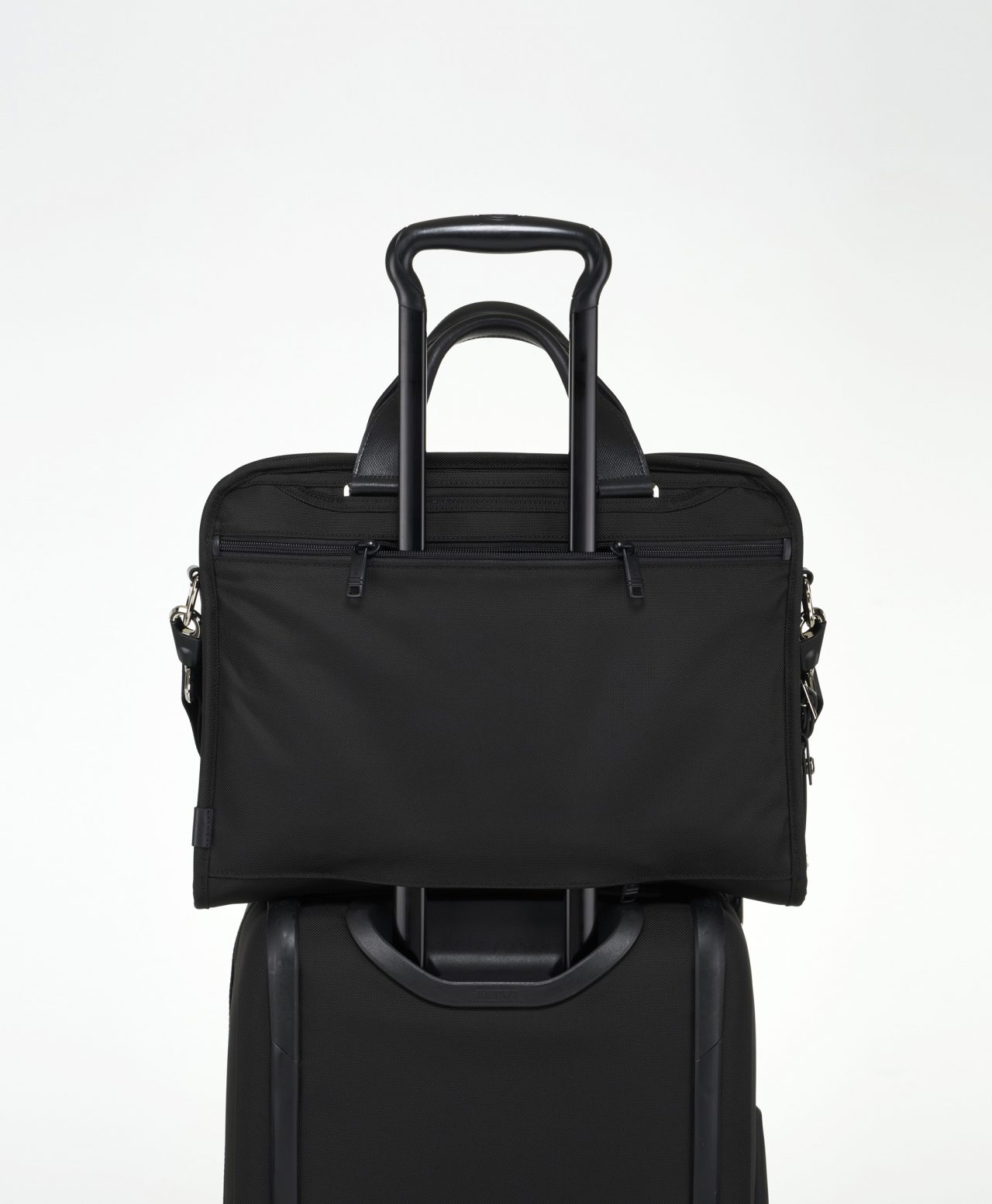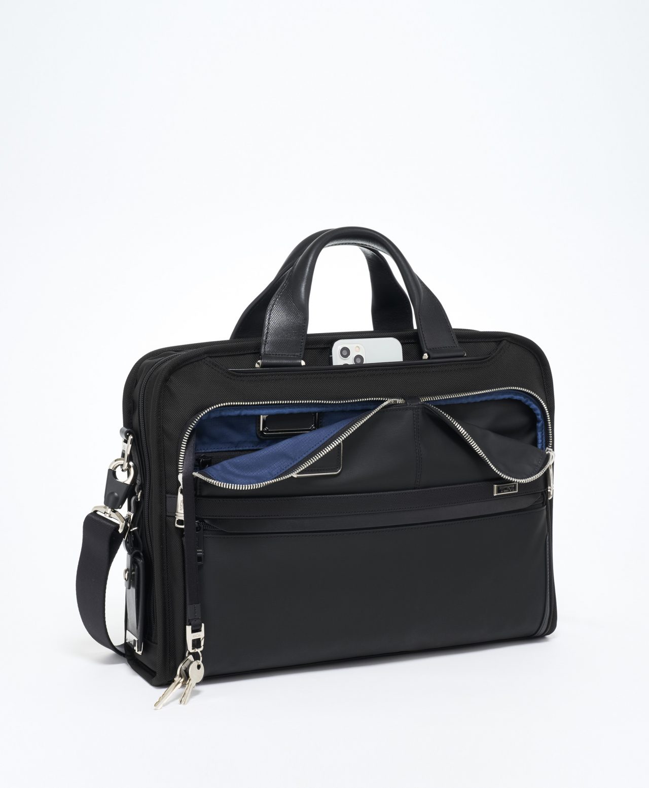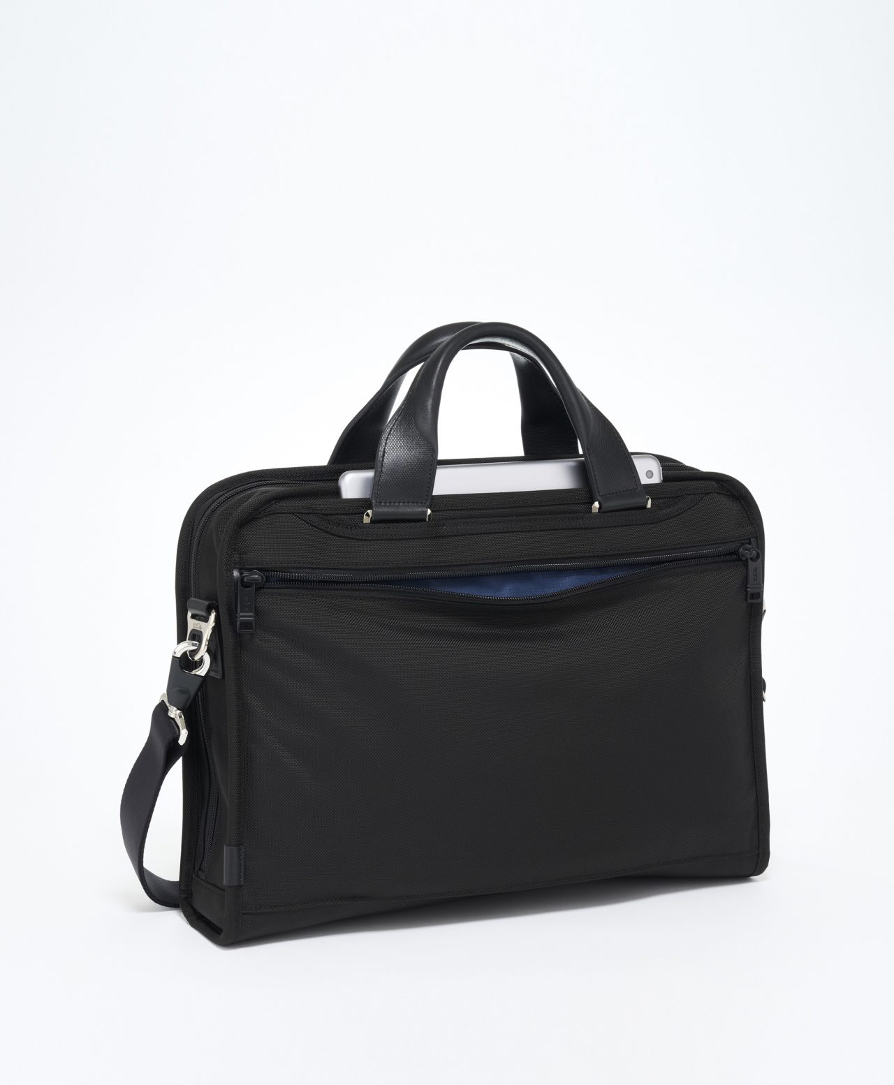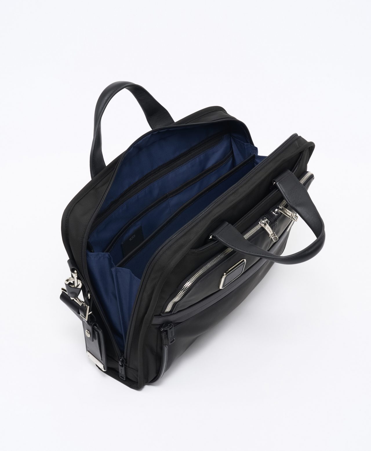 ビジネススタイルの「オーガナイザー・ポートフォリオ・ブリーフ」は、前後に、素早くものの出し入れができるオープンスペースを備えるシングルコンパートメントブリーフ。フロントには、防水ポケットを含む3つのポケット、コンパートメント内には、書類を分けて収納できる中仕切りやパッドで保護されたタブレット用ポケット、ステーショナリーの収納に便利なオーガナイザーパネルを装備。キャリーにセットできるスリーブと、取り外し可能なショルダーストラップも付属する。