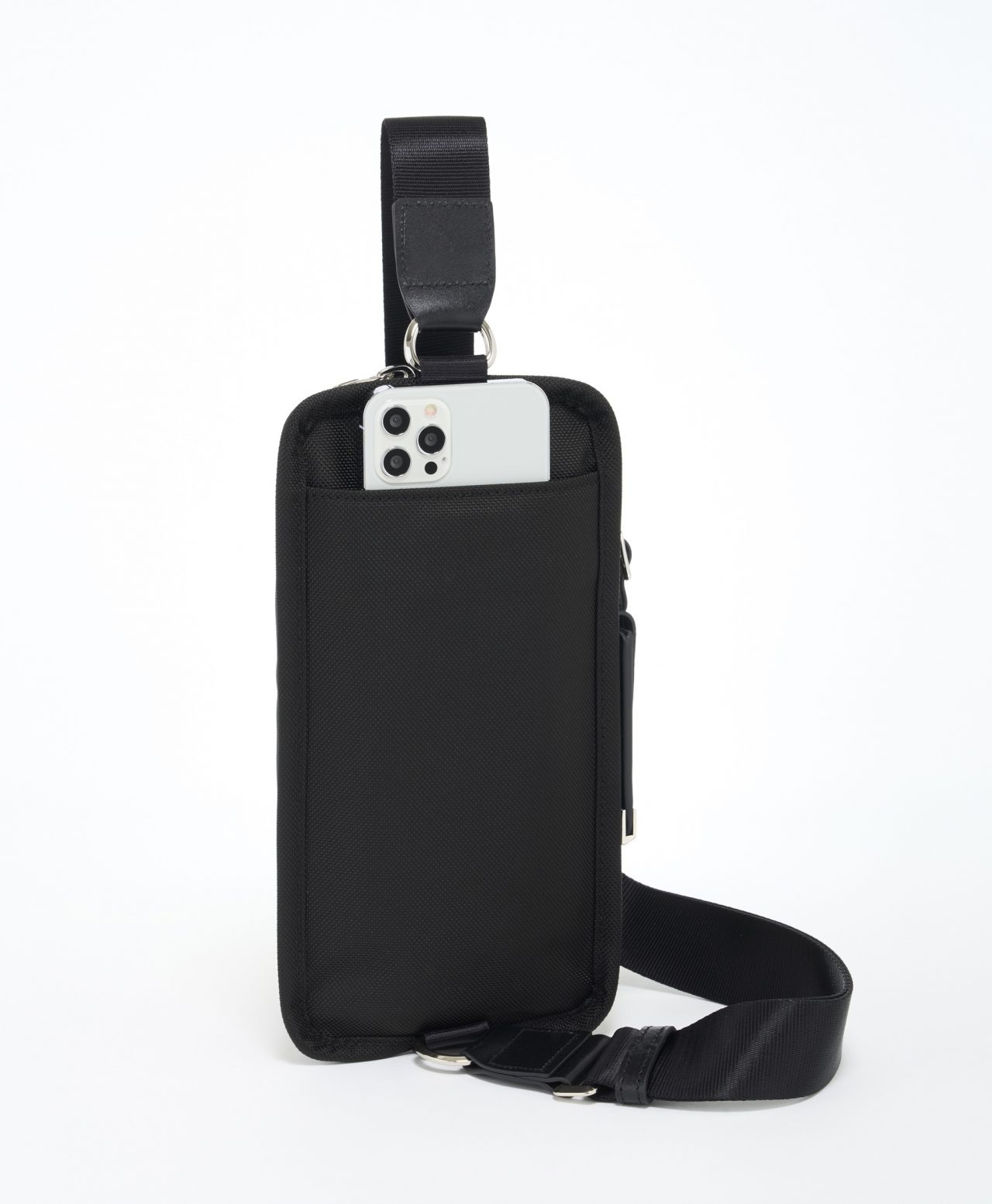 マチ幅のある立体的なフォルムに背面ポケットを備えた、カジュアルなハンズフリースタイルの「コンパクト・スリング」。ストラップは可動域のあるDカンで本体に取り付けられており、着用時に体にフィットするようデザインされている。