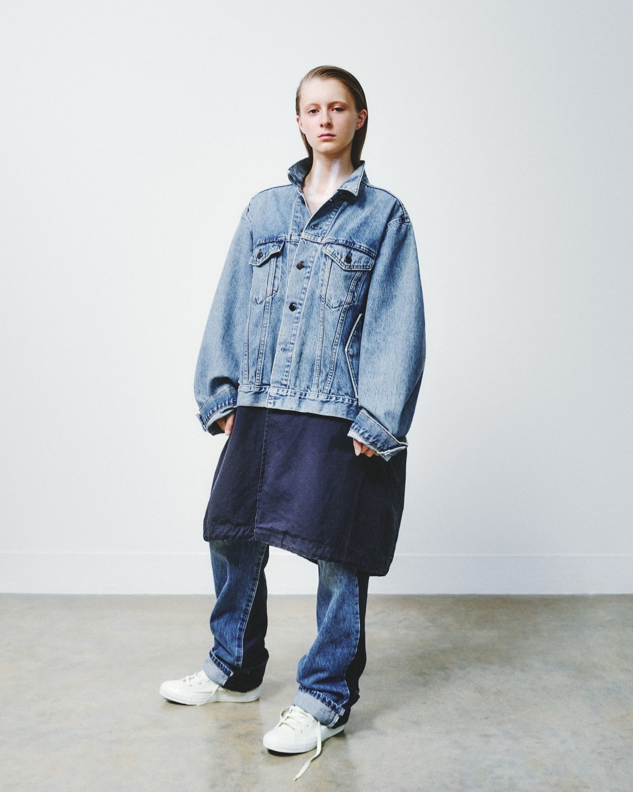 今回のコレクションは、アメリカ製のヴィンテージの Leviʼ s® デニムと日本製の UNDERCOVER のパーツを使用した、ジャケット4型、パンツ2型の計6型で構成される。それぞれのブランドのハイブリッドピースはロサンゼルスで丁寧に組み合わされ、日本とアメリカの素材や構造、美学が融合されたコレクションが誕生した。