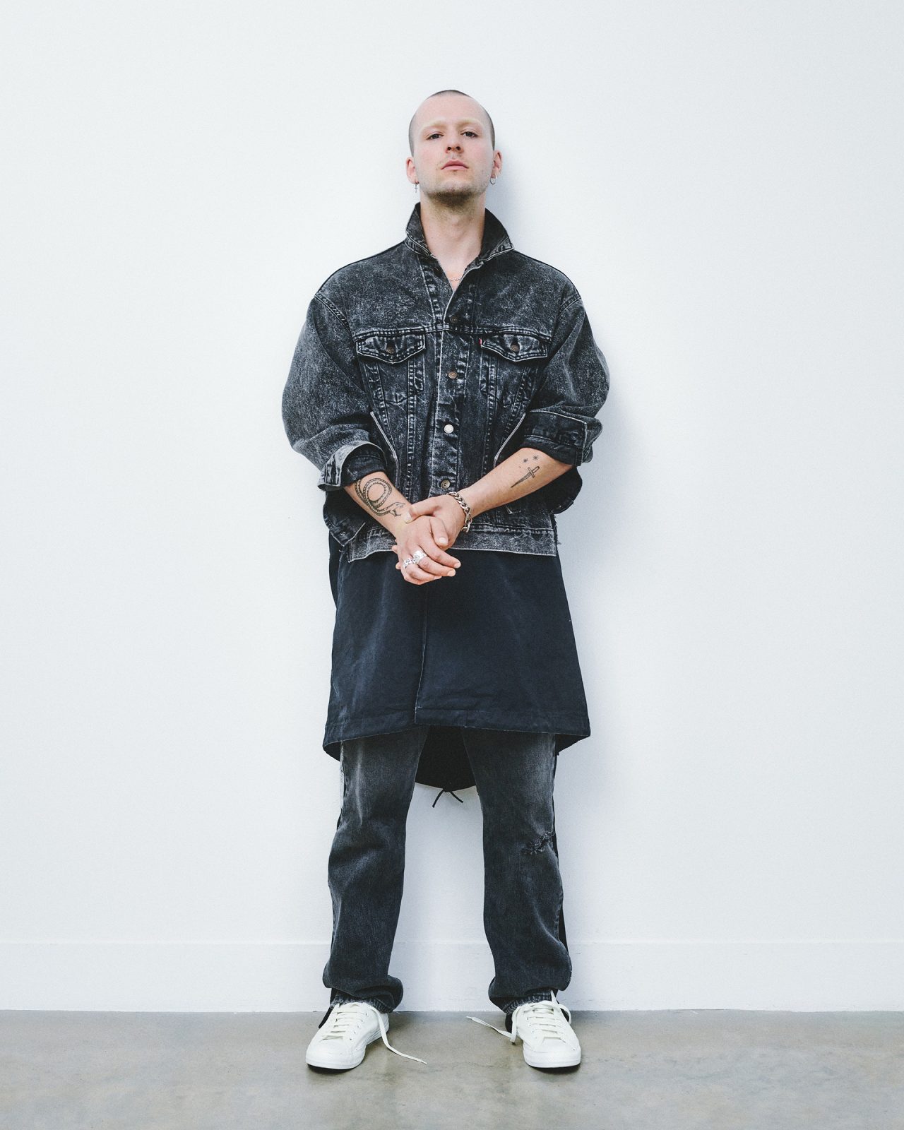 また、ロンドンのスタジオで撮影されたキャンペーンでは、イギリスを代表するミュージシャン、Thomas Yorke (トム・ヨーク) の子供、Noah (ノア) と Agnes (アグネス) が登場。ノアは、ブラックウォッシュのハイブリッドトラッカーダウンジャケット、ブラックウォッシュのハイブリッドトラッカーモッズコート、ブラックウォッシュのハイブリッドデニムスウェットパンツを、アグネスは同型のインディゴウォッシュを着用している。