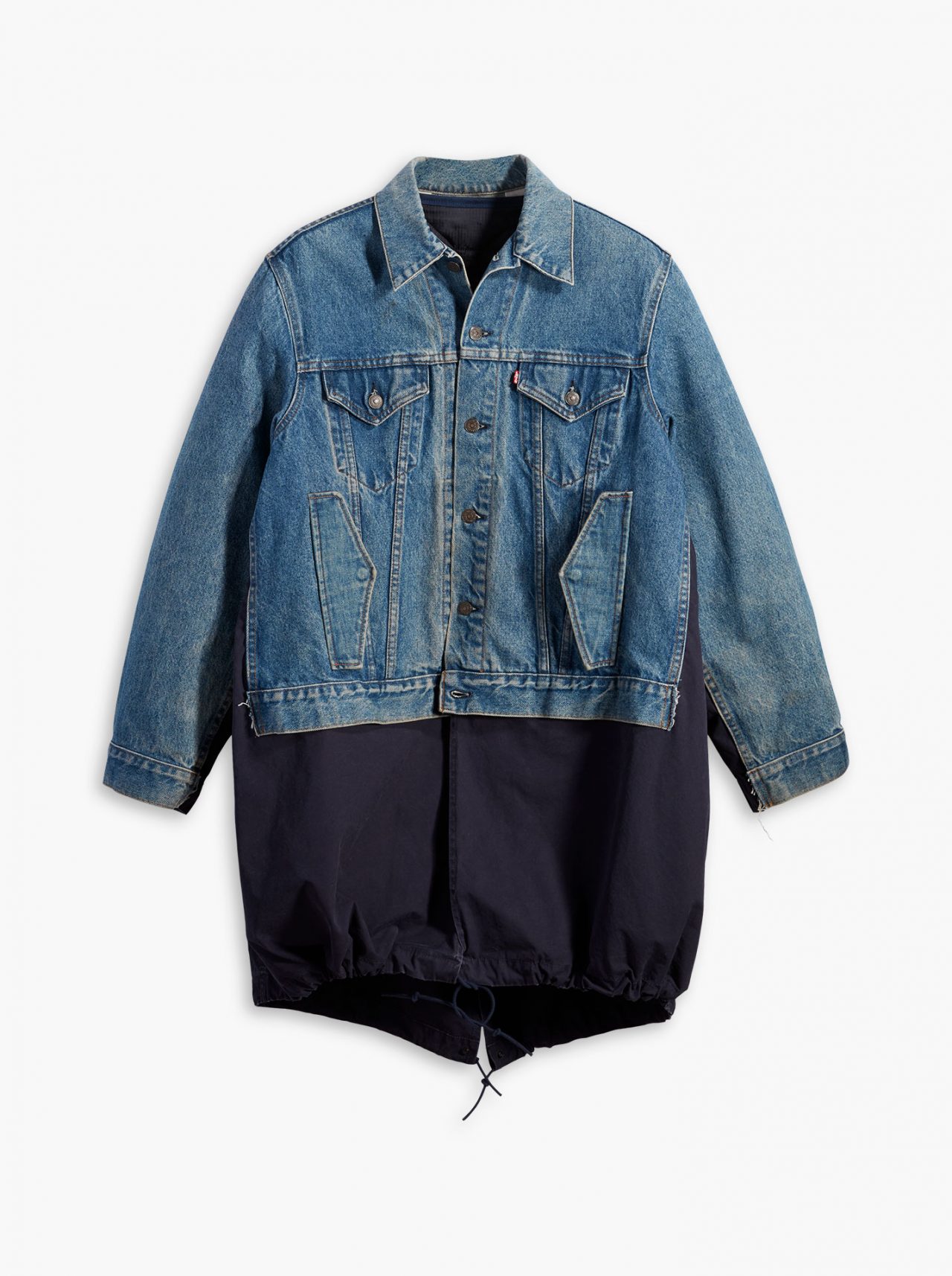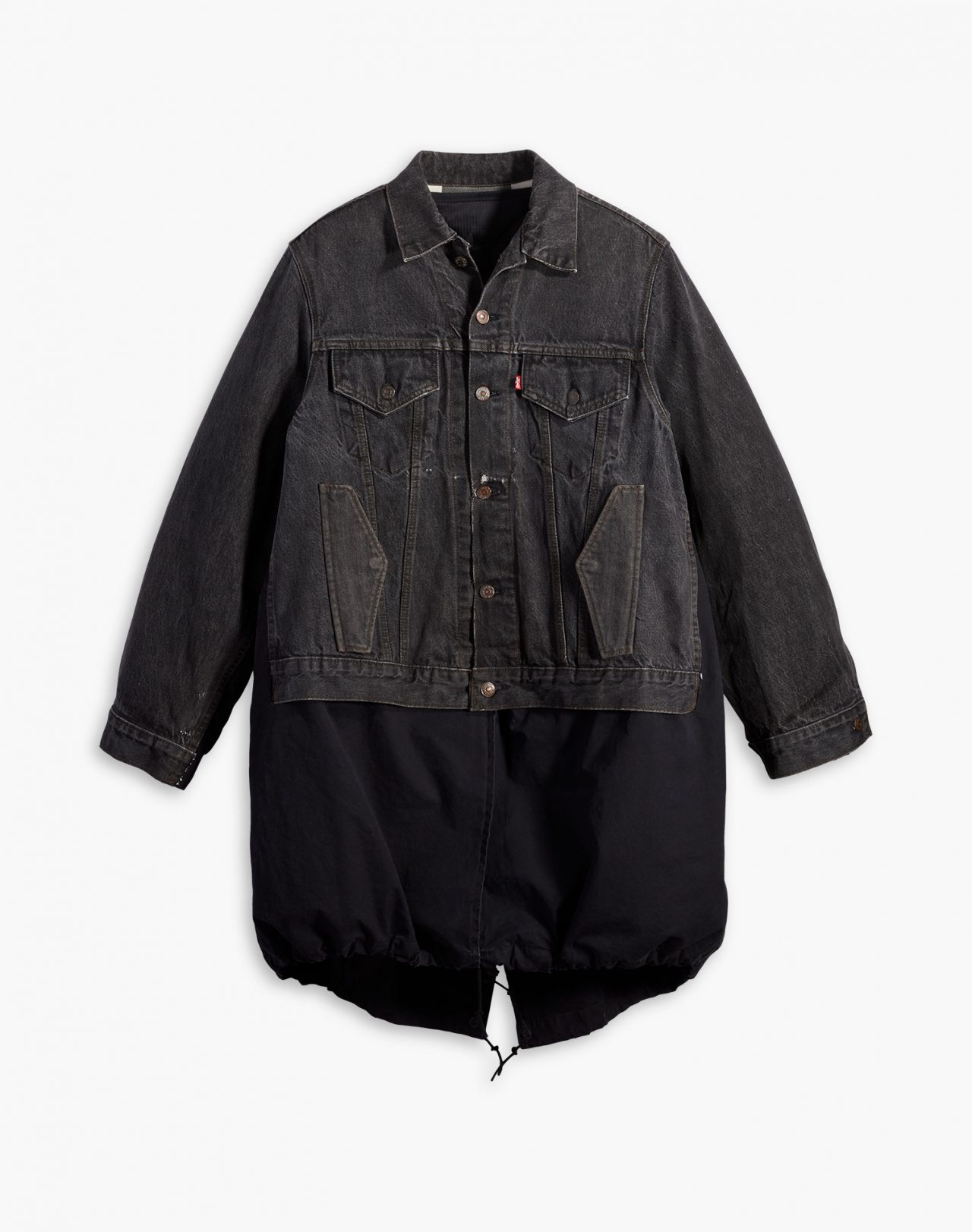 ダウンジャケット同様、ヴィンテージの Levi’s® トラッカージャケットを再構築し、モッズコートのディテールを投影、取り外し可能なミリタリースタイルのライニングを施したハイブリッドトラッカーモッズコートも登場。カラーはインディゴウォッシュとブラックウォッシュの2色で、インディゴウォッシュにはネイビー、