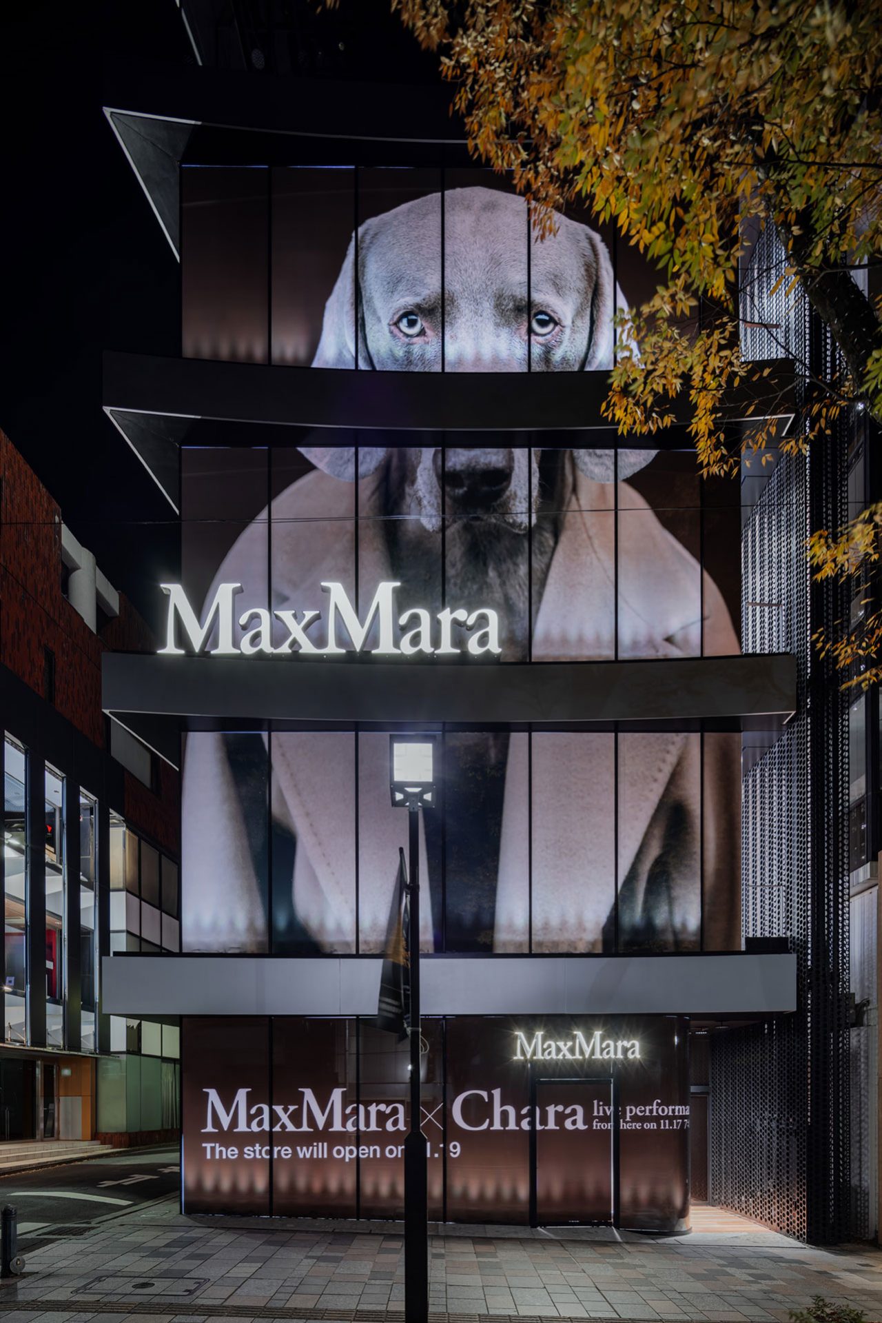 また、「マックスマーラ表参道店」のオープンを記念したエクスクルーシブなイベントでは、Chara が発売したばかりの新曲『A・O・U』を含む一夜限りのライブパフォーマンスを披露。その模様は Max Mara の公式サイトにて17日19:15よりライブ配信され、日本中どこにいても Chara の歌声と Max Mara の新店舗の共演を堪能することができる。また、11月16日までの期間限定で同店を埋め尽くす、アーティストで写真家の William Wegman (ウィリアム・ウェグマン) が撮影した、ブランドのアイコンである「101801 コート」のキャメルカラーを纏ったエレガントなワイマラナー犬の有名なグラフィックにも注目して。