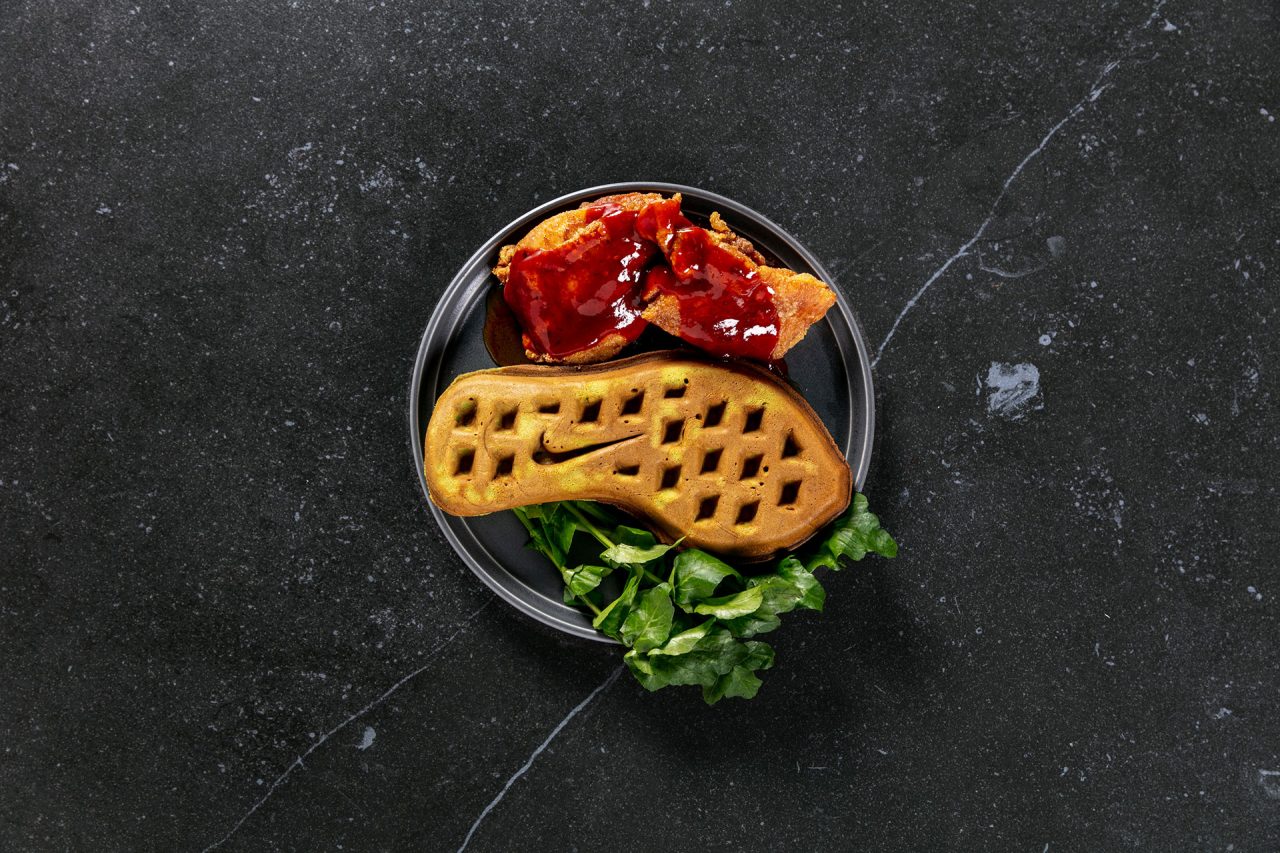 Ghetto Gastro は、料理とカルチャーを交差させ、イベントや食品のプロデュースを行うニューヨークを拠点のコレクティブ。以前 Nike とともにロサンゼルスのイベントで提供されたスウッシュ入りのソール型ワッフルが今回、Ghetto Gastro 監修の sacai オリジナルレシピでお目見えする。メニューは、神戸と広尾にショップを構える Harlow (ハーロウ) のヴィーガンアイスクリームをトッピングしたストロベリーとチョコレートのワッフル、Ghetto Gastro オリジナルのスパイシーシロップを合わせたフライドチキンと抹茶ワッフル、キャビアとカニサラダを添えた贅沢なコーンワッフルの全4種類。ドリンクは、ブルーボトルコーヒーと、sacai と親交の深い Rocky Xu によって2022年にスタートしたばかりの Rocky’s Matcha をパートナーに迎える。12月24日と25日の2日間は、原宿の StandBy (スタンドバイ) にてワッフルとドリンクのテイクアウトを実施する予定だ(1日限定200個)。