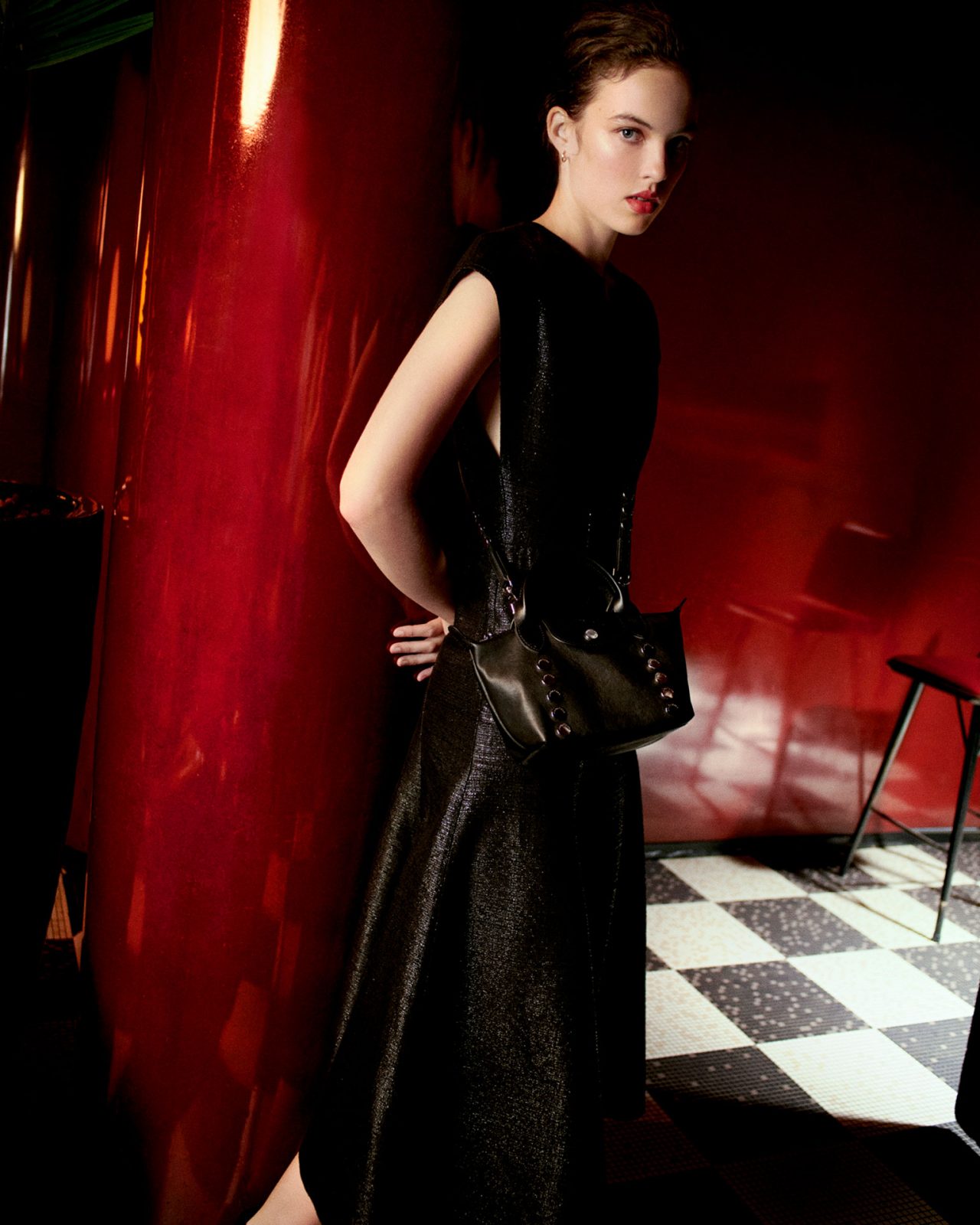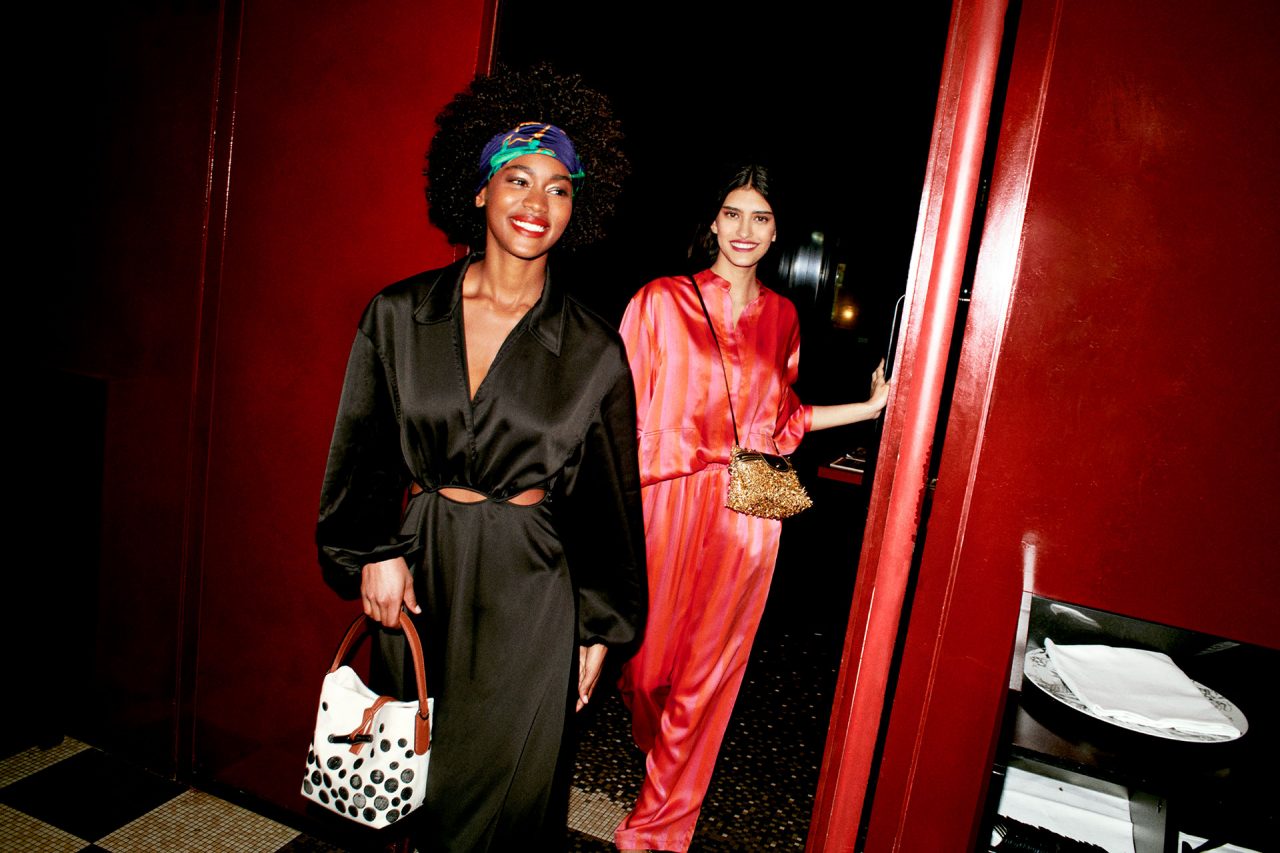 キラキラと輝くミラーボールをイメージしたポルカドット柄に彩られた Longchamp のホリデーシーズン。メゾンを代表するアイコニックなコレクション「Roseau」からは、黒のボディにミラーボールのように大きな白のポルカドットあしらった、グラフィカルでモダンな印象のバッグが新たに登場。また、「Essential (エッセンシャル)」には白いリネン地に黒のポルカドットをあしらったリラクシーなバッグ、「Le Pliage®」にはミラーボールのファセットをメタルで表現した新作がお目見えした。ウェアもまた、ミラー仕上げのポルカドットが煌めくオレンジのスエードジャケットやポルカドット躍るシックなリネンのセットアップ、肌を少しだけ覗かせるカットアウトのニットトップスにメタリックなレザーのミニスカートなど、ホリデーシーズンの装いにぴったりなラインナップ。「Le Pliage®」では他にも、カウントダウンの紙吹雪を思わせるメタリックゴールドのツイード輝く新作が揃い、ポーチとメッセンジャーバッグ、スニーカーとバリエーションも豊富だ。