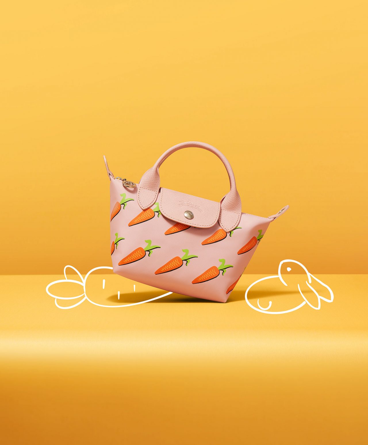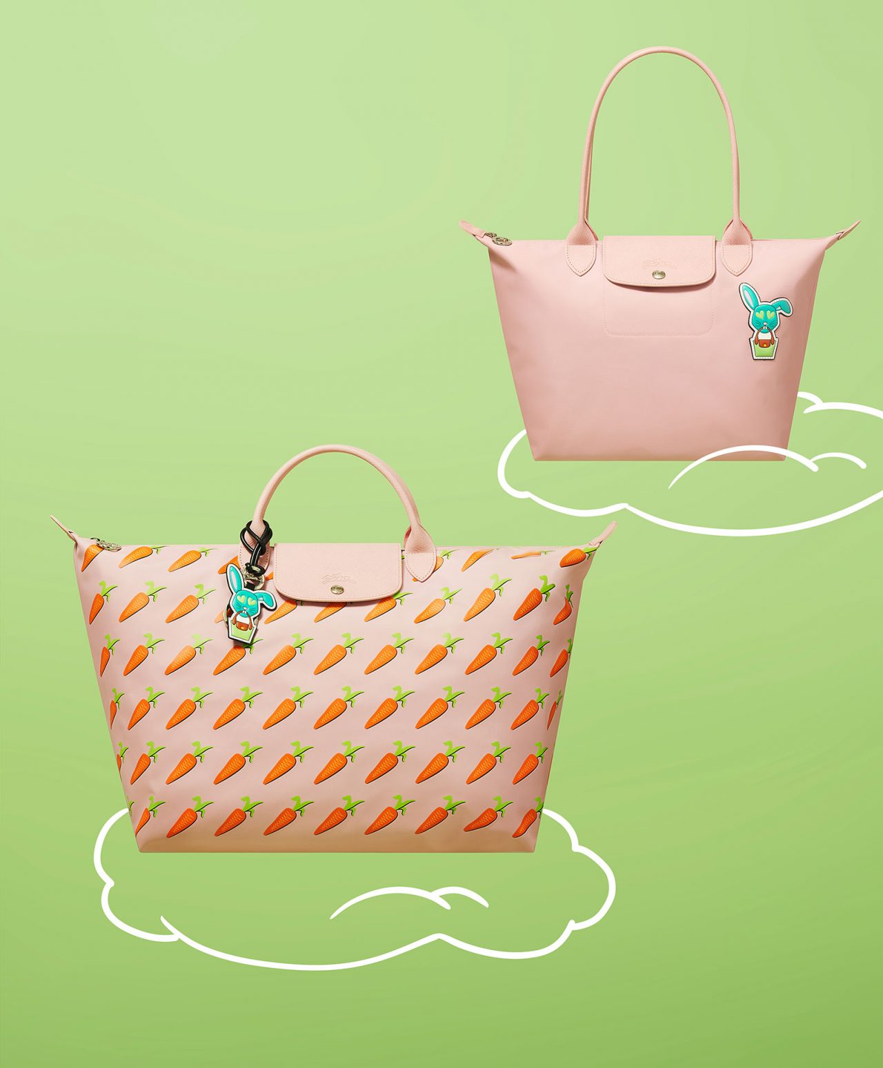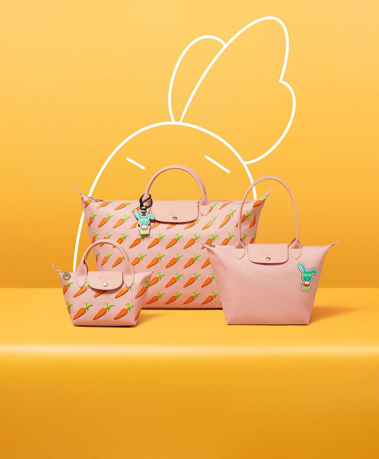 さらに、新年に向けて2023年の干支「卯」をコミカルに表現した限定デザインの「Le Pliage®」バッグが誕生。華やかなホーソーンピンクのボディに、ウサギの大好物であるニンジンをプリントしたデザインと「Le Pliage®」をくわえたコミカルなウサギのレザーバッジが付いたデザインの2種類が展開。すべてのバッグには、「Le Pliage®」のシグネチャーパーツである「ロシアンレザー」のハンドル/フラップ、そしてメタル仕上げのスナップボタンや金具等があしらわれている。また、「ロンシャン・ホース」メダイヨンからはウサギがぶら下がったレザー製キーリングも登場した。