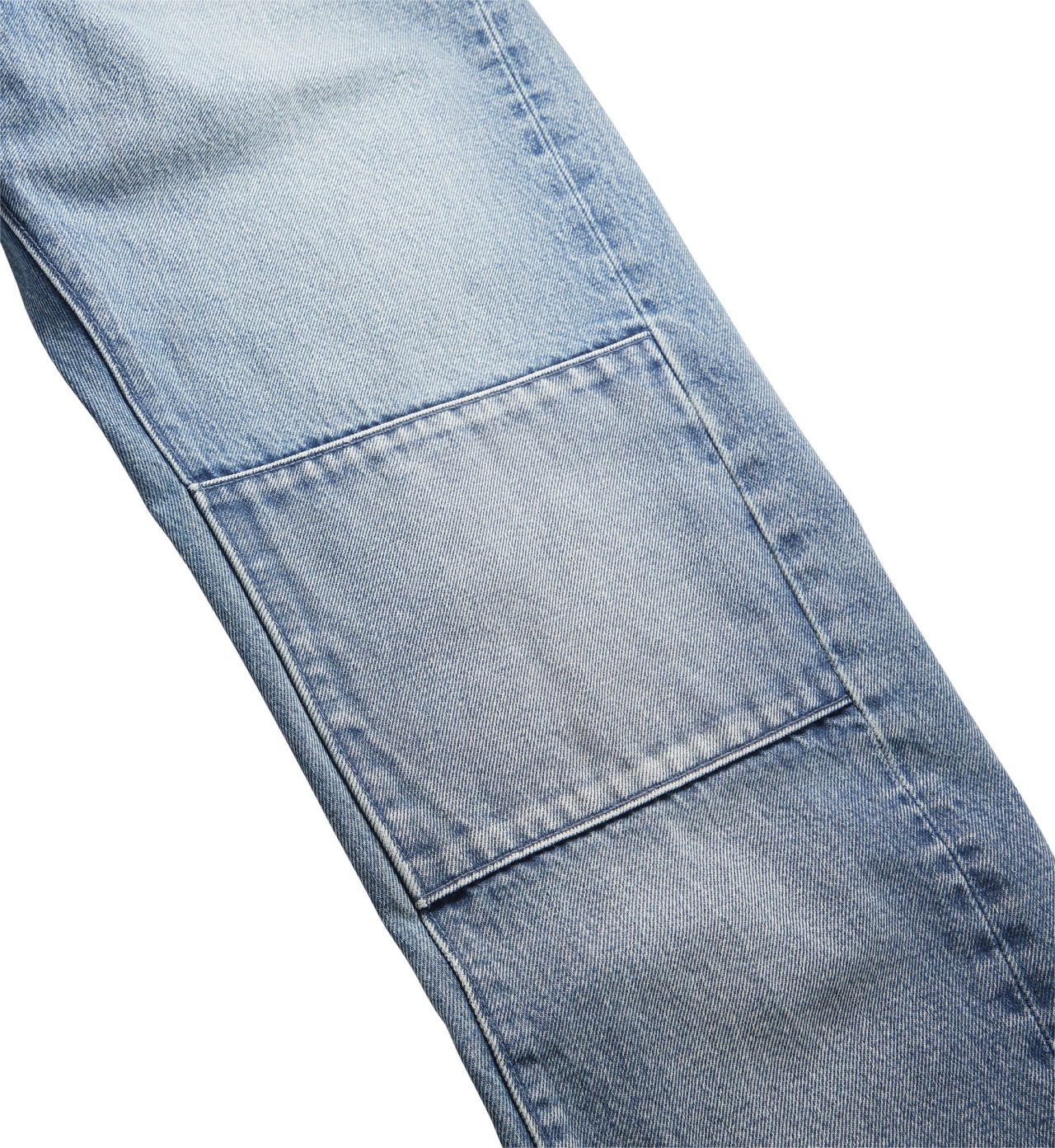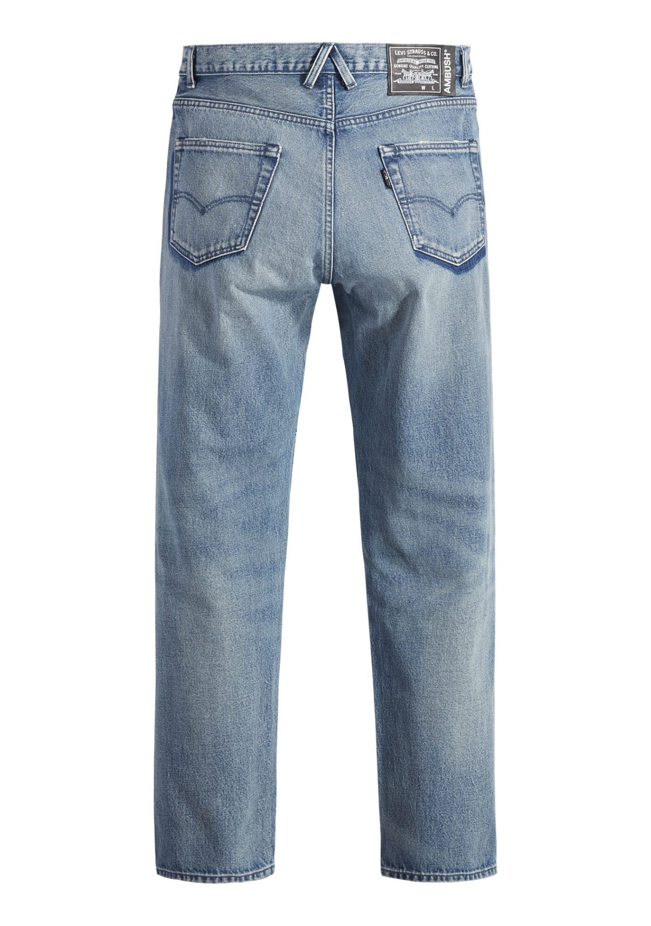 ジャケットと同じくミッドインディゴウォッシュカラーで作られたバイカージーンズは、スリムストレートフィット型で展開。フロントにはニーパネルのディテールと、剝き出しの5番ジッパーを施し、バックにはジャケットパッチと同様のウォッシュ加工がなされたシャドーポケットをあしらうなど、ユニークでこだわりのある一本に仕上がった。両アイテムにあしらわれたバックパッチは、Levi’s® ツーホースと AMBUSH® のロゴが入ったブラックのスペシャルな限定仕様だ。