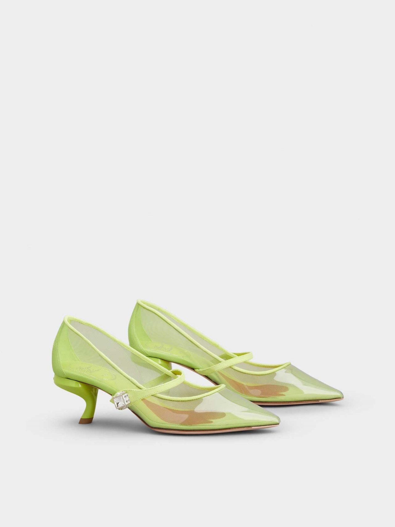 1963年に誕生したアイコニックなヒールシェイプの「ヴィルギュル」や1965年に誕生したメゾンのシグネチャーシューズ「ベル ヴィヴィエ」にあしらわれたメタルバックル、60年代のアーカイブからインスパイアされた、ハートモチーフの「アイラブ ヴィヴィエ」。これらの歴史的モチーフが、Gherardo Felloni ならではの独特の感性とフュージョンし、ネオンカラーのポップで楽しいコレクションが誕生した。