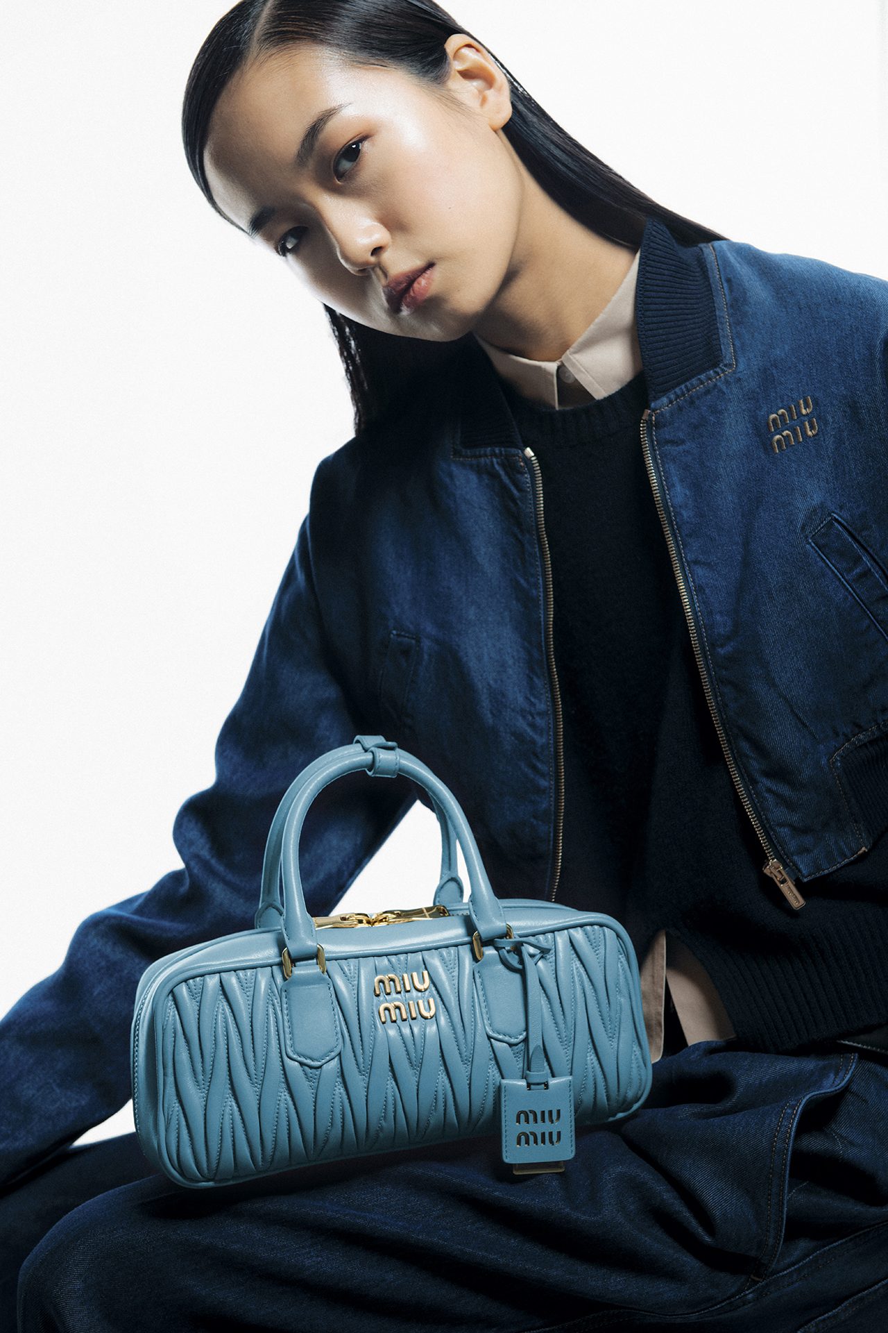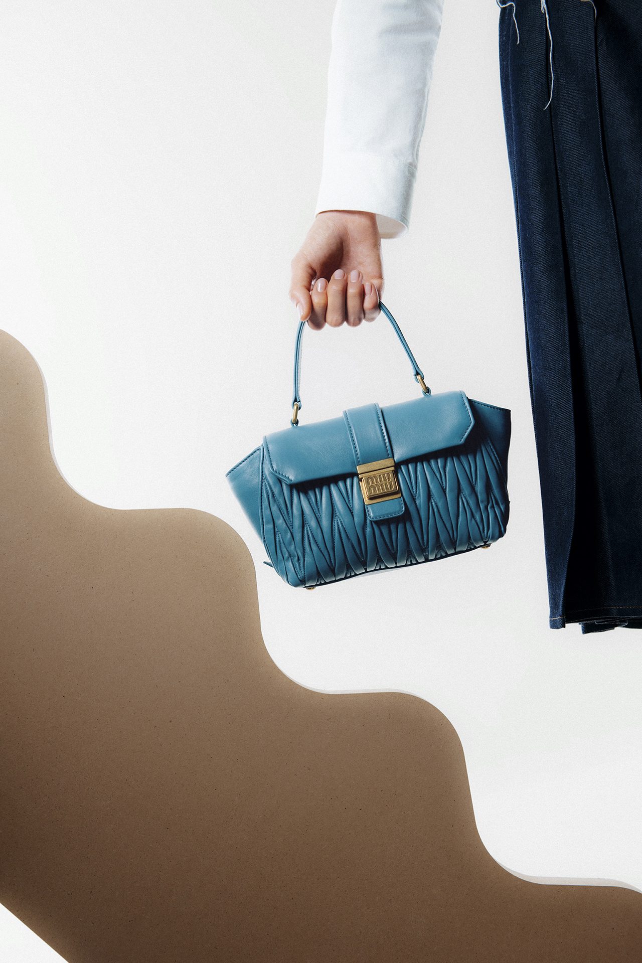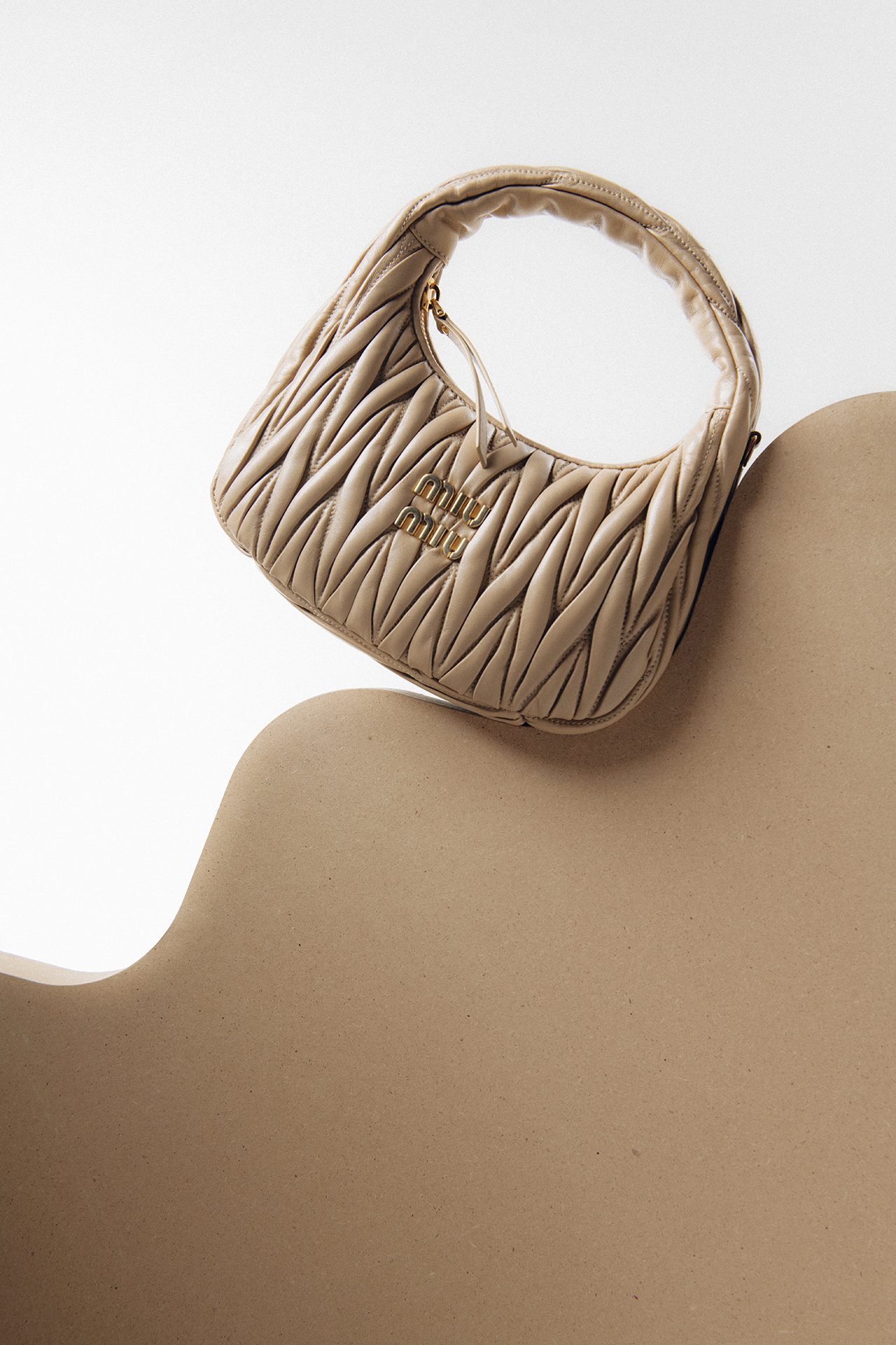 一足早く春のトラッドムードが漂う本ポップアップでは、サンドベージュやブラウンといったナチュラルな風合いに、インディゴ、マリンブルー、ライトグレーなどのカラーパレットを用いた MIU MIU らしいアーバンシックなワードローブを展開。先行販売となるブランドを象徴するマテラッセレザーを用いた新作バッグをはじめ、アイコニックなペニーローファーの新色や新素材が登場する。