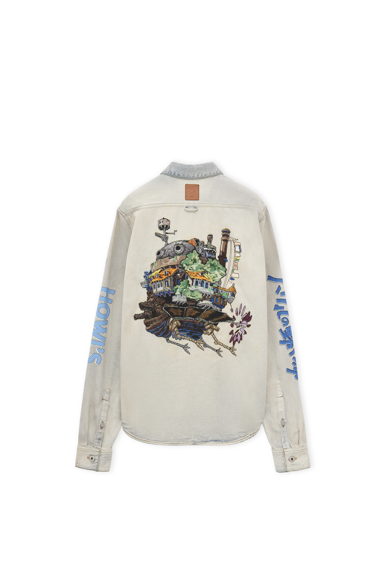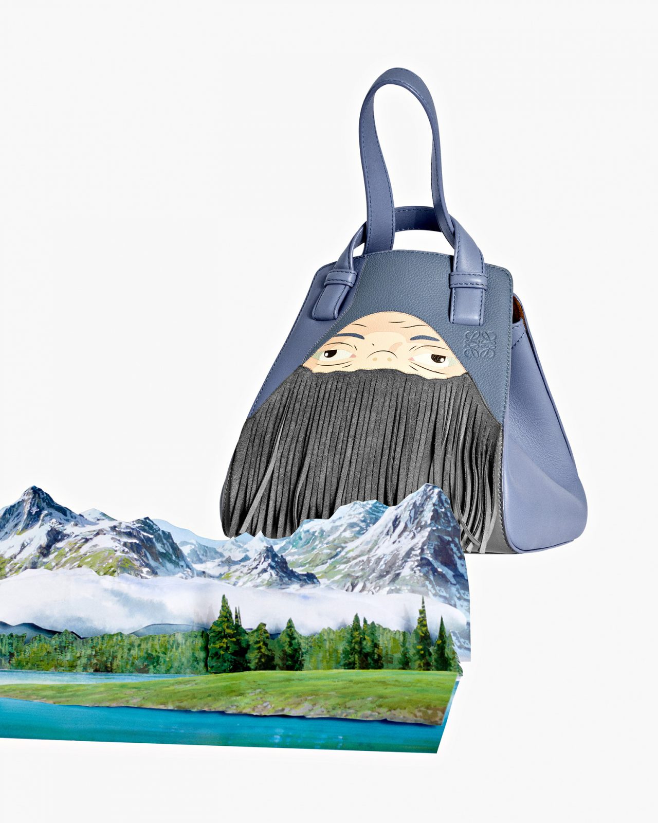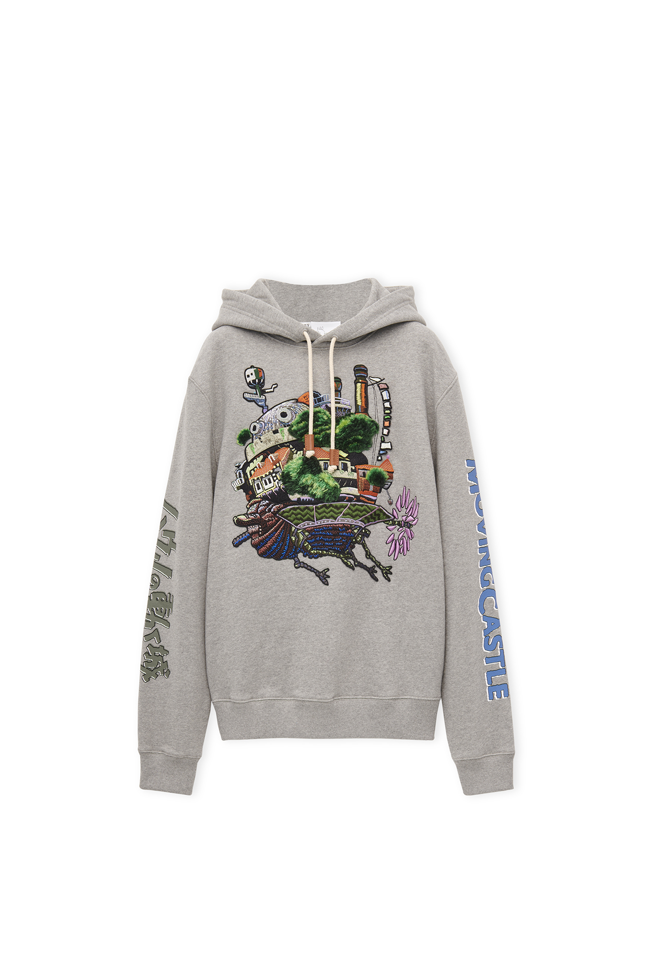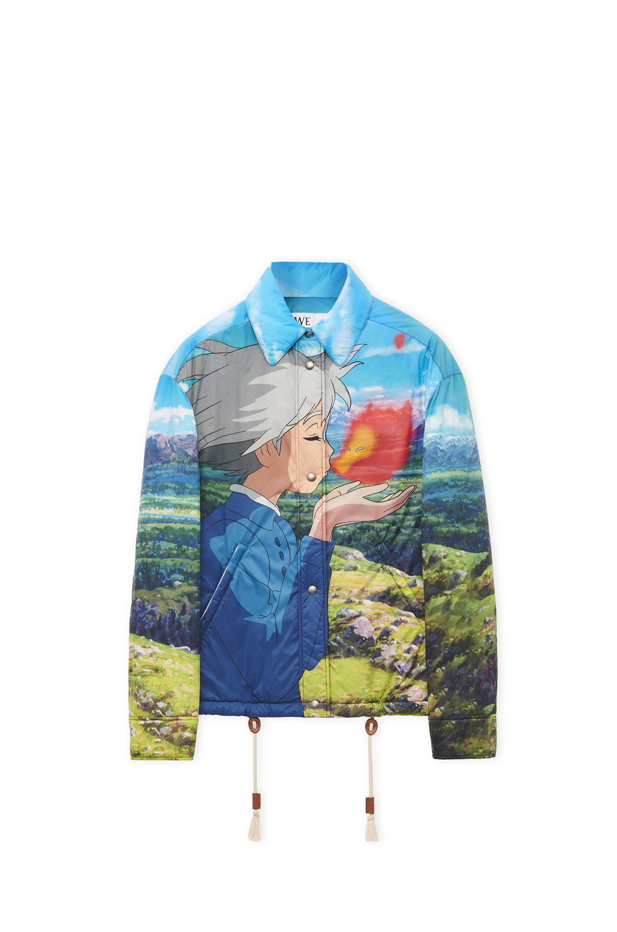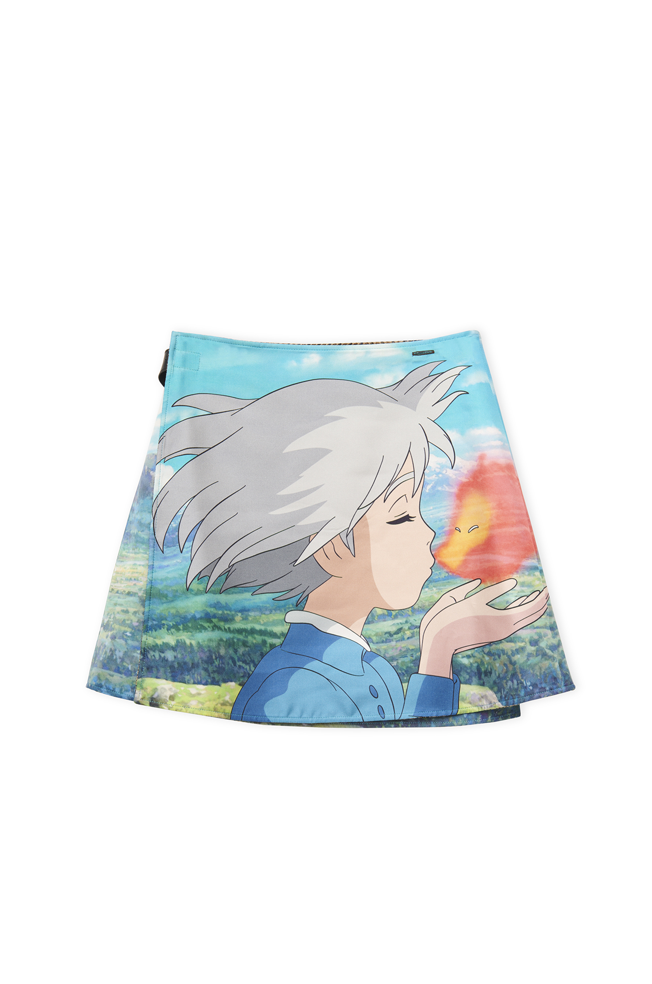 『ハウルの動く城』が最も愛する宮崎駿作品の1つであるという、LOEWE のクリエイティブディレクター Jonathan Anderson (ジョナサン・アンダーソン) は、手書きとデジタルのアニメーションが融合するこの作品に、古いものと新しいものとをつなぐクラフトの力を見出した。本コレクションでは、ウェアやバッグ、アクセサリーなどに、映画に登場するおなじみのキャラクターや美しい背景を落とし込み、身に着けるとまるで作品の一部になったかのような感覚をもたらしてくれる。ソフィーやハウル、さらに炎の悪魔カルシファーやマルクル、ヒン、かかしのカブ、荒れ地の魔女などが、レザーやシアリングといった上質な生地に、インターシャ、刺繍、象嵌などの手法を用いて生き生きと描かれている。