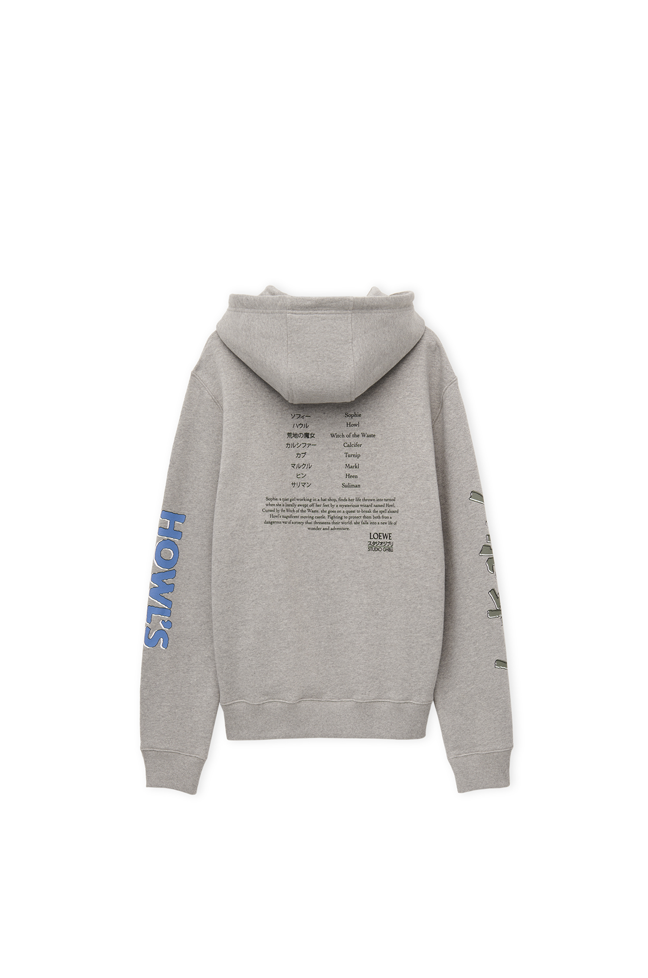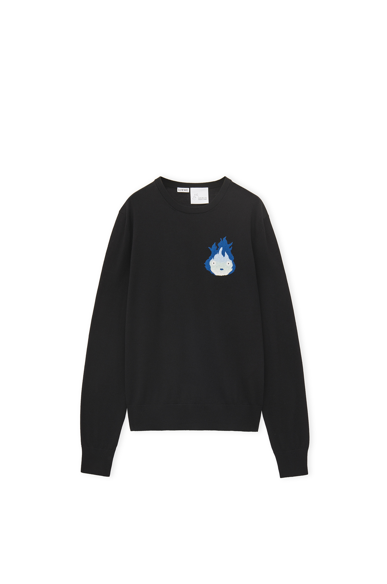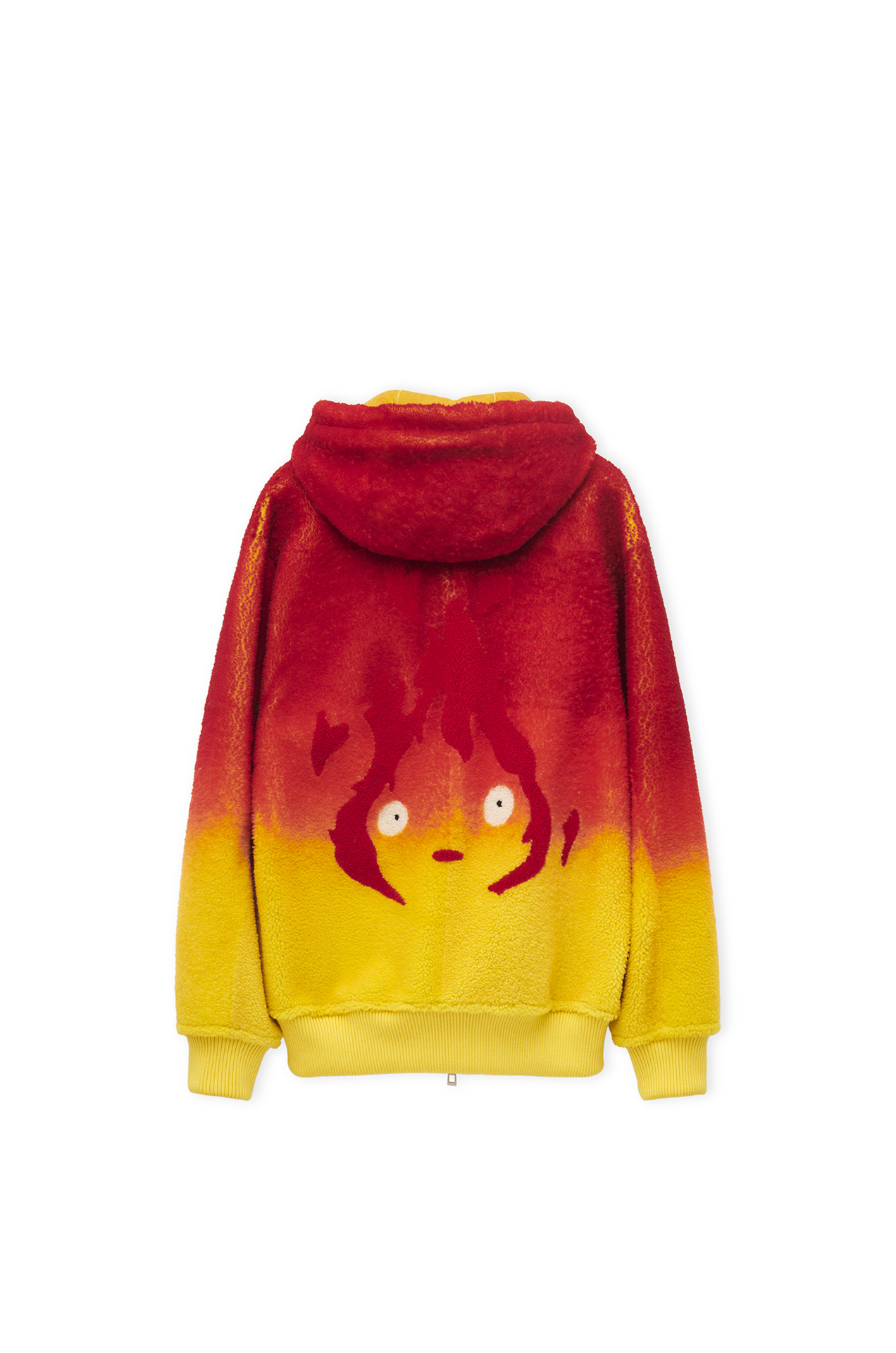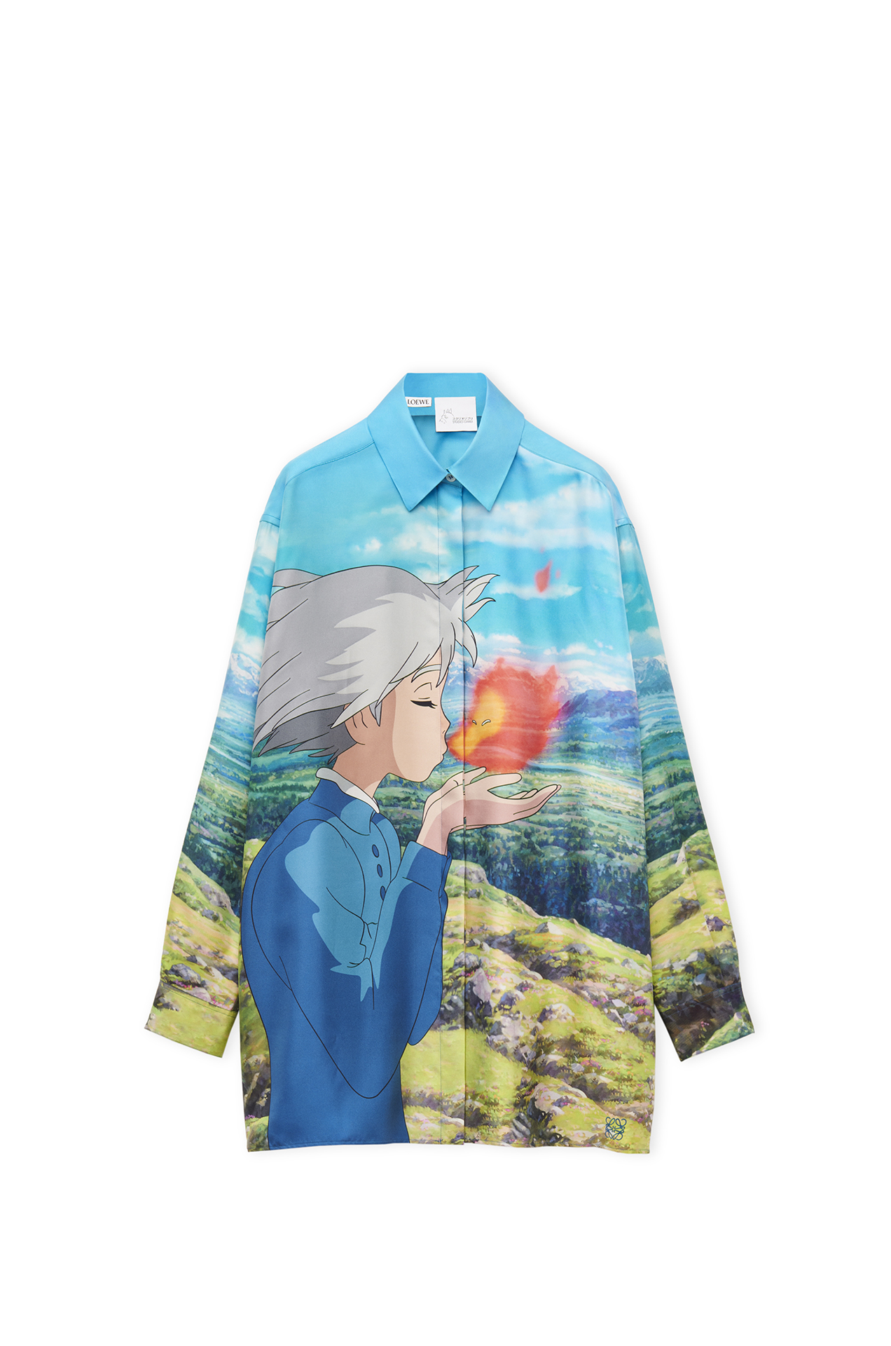 『ハウルの動く城』が最も愛する宮崎駿作品の1つであるという、LOEWE のクリエイティブディレクター Jonathan Anderson (ジョナサン・アンダーソン) は、手書きとデジタルのアニメーションが融合するこの作品に、古いものと新しいものとをつなぐクラフトの力を見出した。本コレクションでは、ウェアやバッグ、アクセサリーなどに、映画に登場するおなじみのキャラクターや美しい背景を落とし込み、身に着けるとまるで作品の一部になったかのような感覚をもたらしてくれる。ソフィーやハウル、さらに炎の悪魔カルシファーやマルクル、ヒン、かかしのカブ、荒れ地の魔女などが、レザーやシアリングといった上質な生地に、インターシャ、刺繍、象嵌などの手法を用いて生き生きと描かれている。