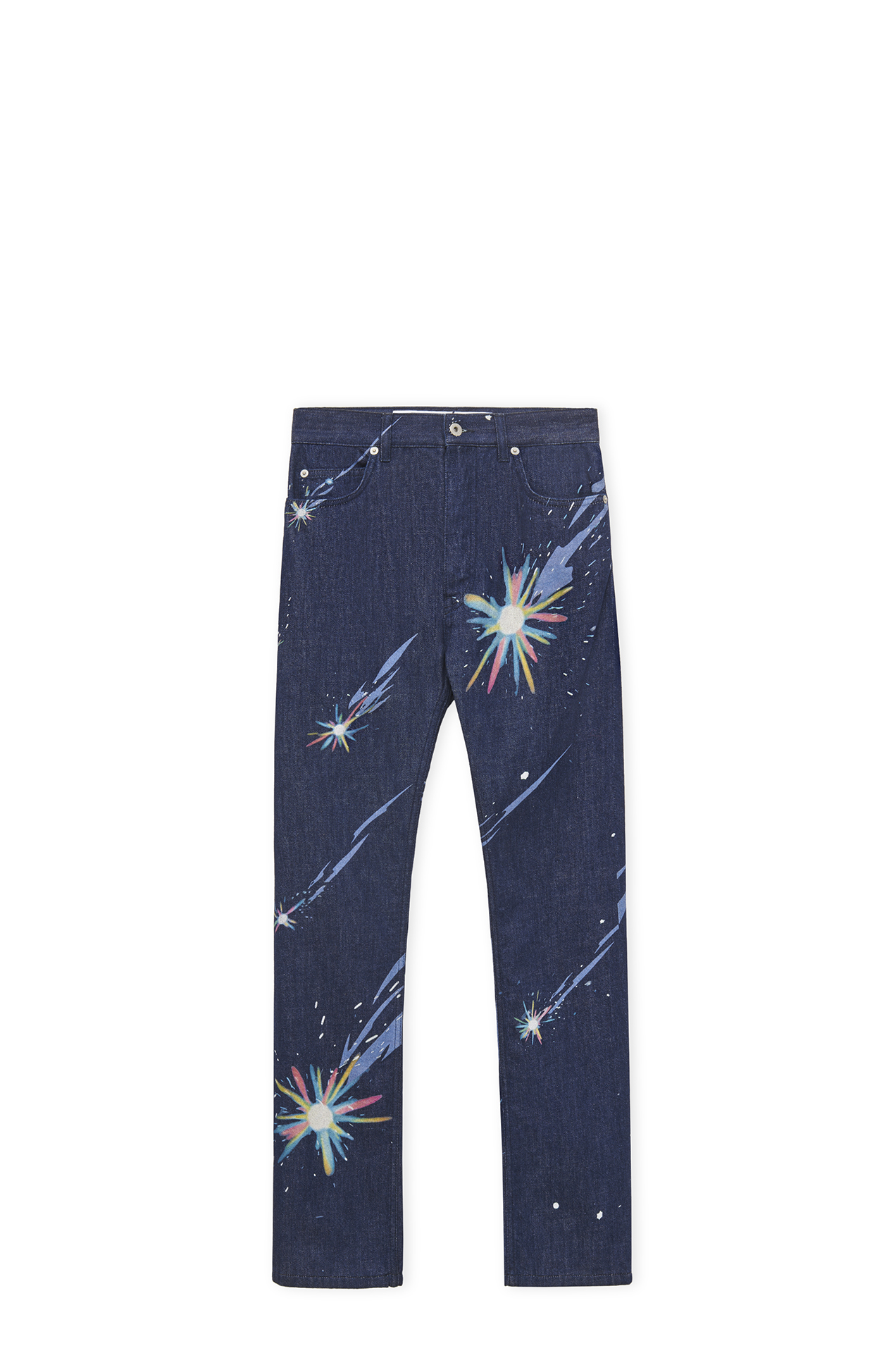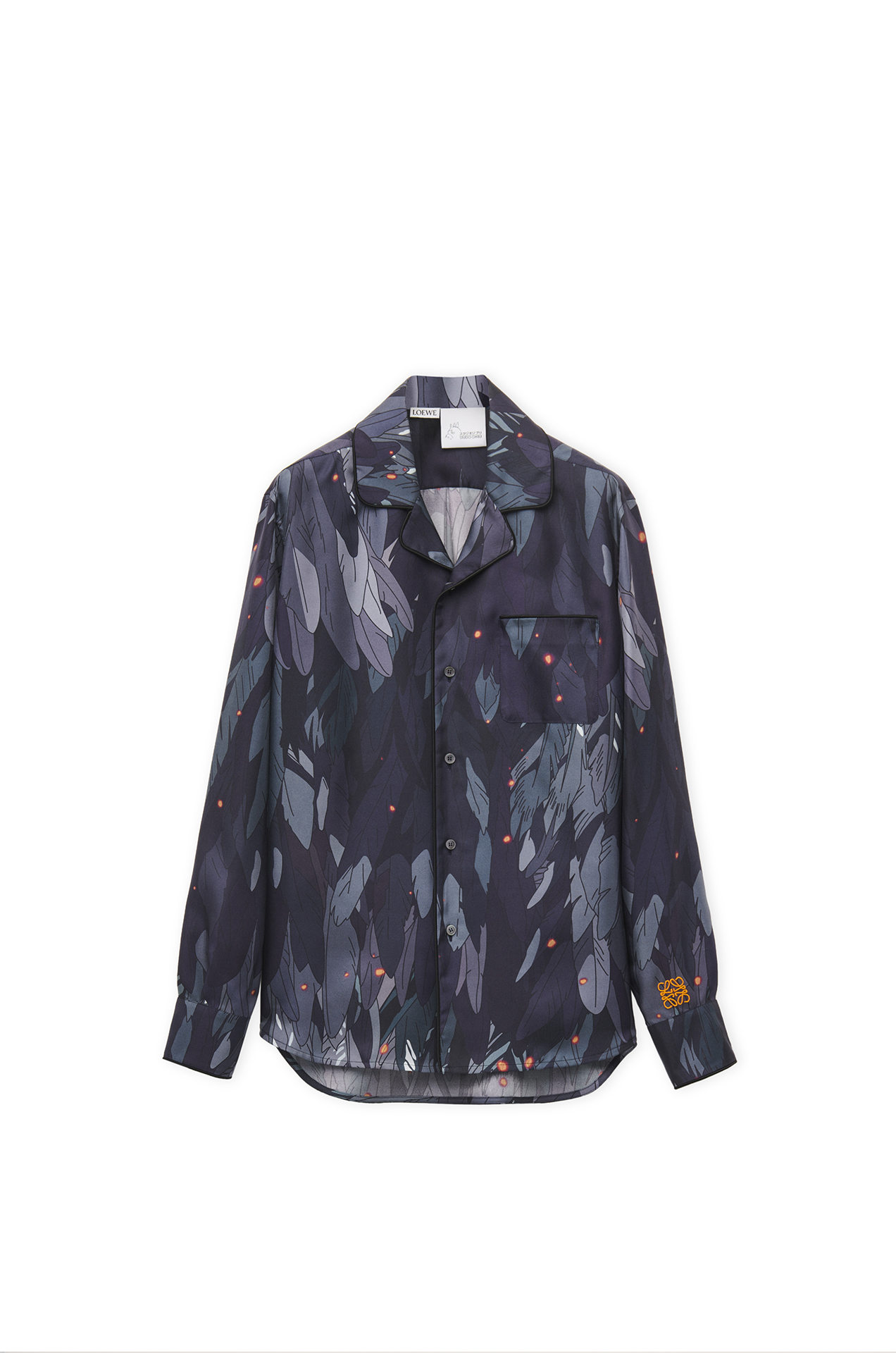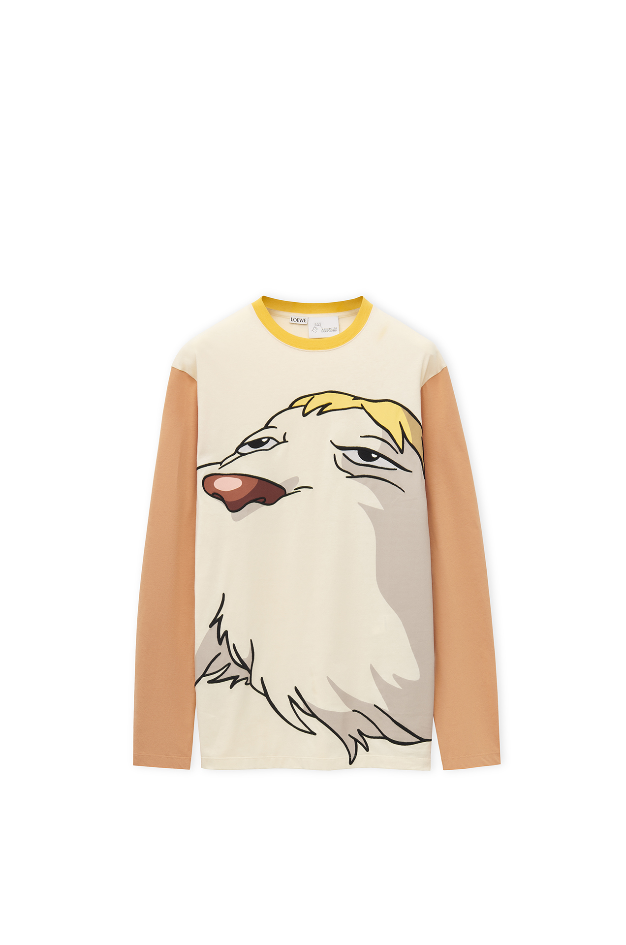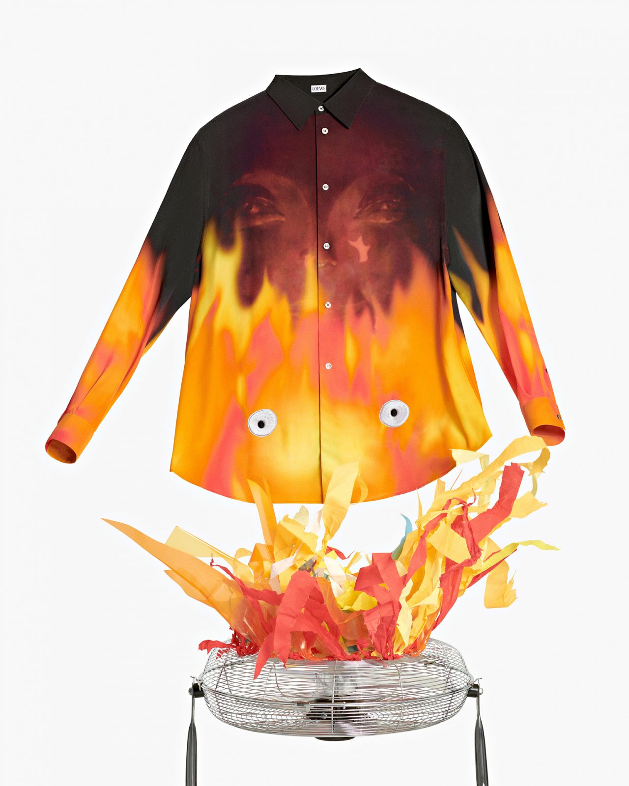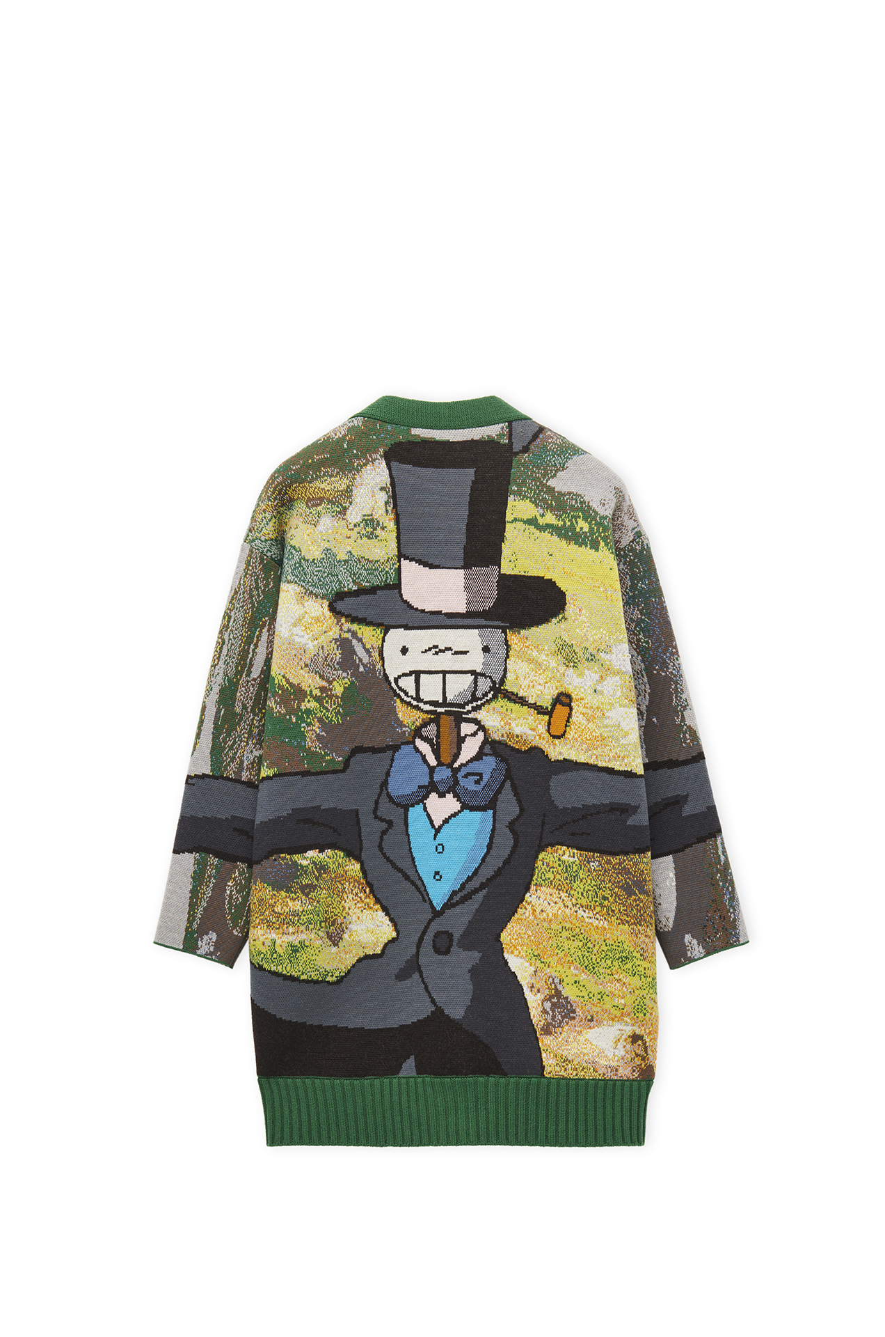 『ハウルの動く城』が最も愛する宮崎駿作品の1つであるという、LOEWE のクリエイティブディレクター Jonathan Anderson (ジョナサン・アンダーソン) は、手書きとデジタルのアニメーションが融合するこの作品に、古いものと新しいものとをつなぐクラフトの力を見出した。本コレクションでは、ウェアやバッグ、アクセサリーなどに、映画に登場するおなじみのキャラクターや美しい背景を落とし込み、身に着けるとまるで作品の一部になったかのような感覚をもたらしてくれる。ソフィーやハウル、さらに炎の悪魔カルシファーやマルクル、ヒン、かかしのカブ、荒れ地の魔女などが、レザーやシアリングといった上質な生地に、インターシャ、刺繍、象嵌などの手法を用いて生き生きと描かれている。
