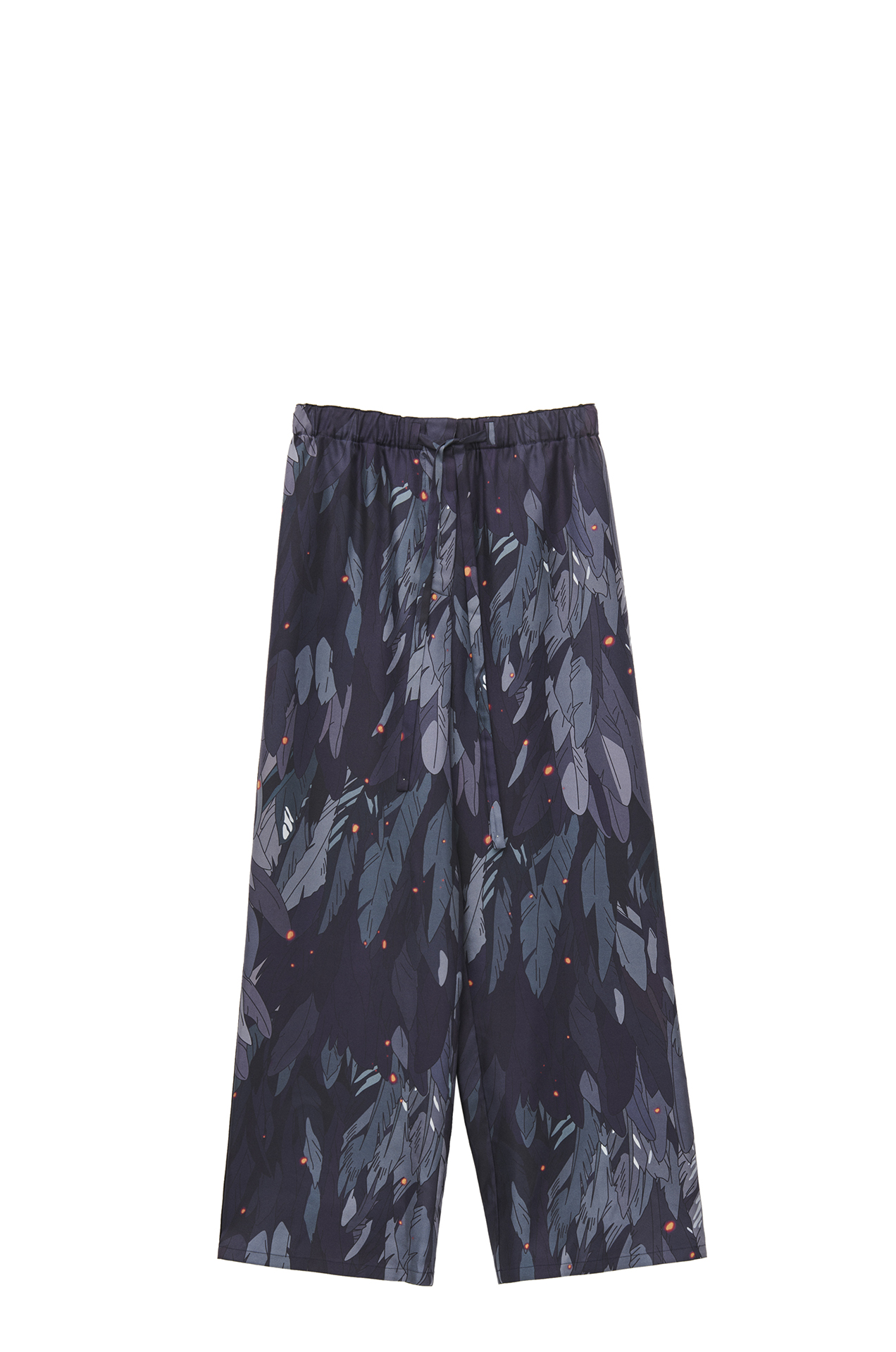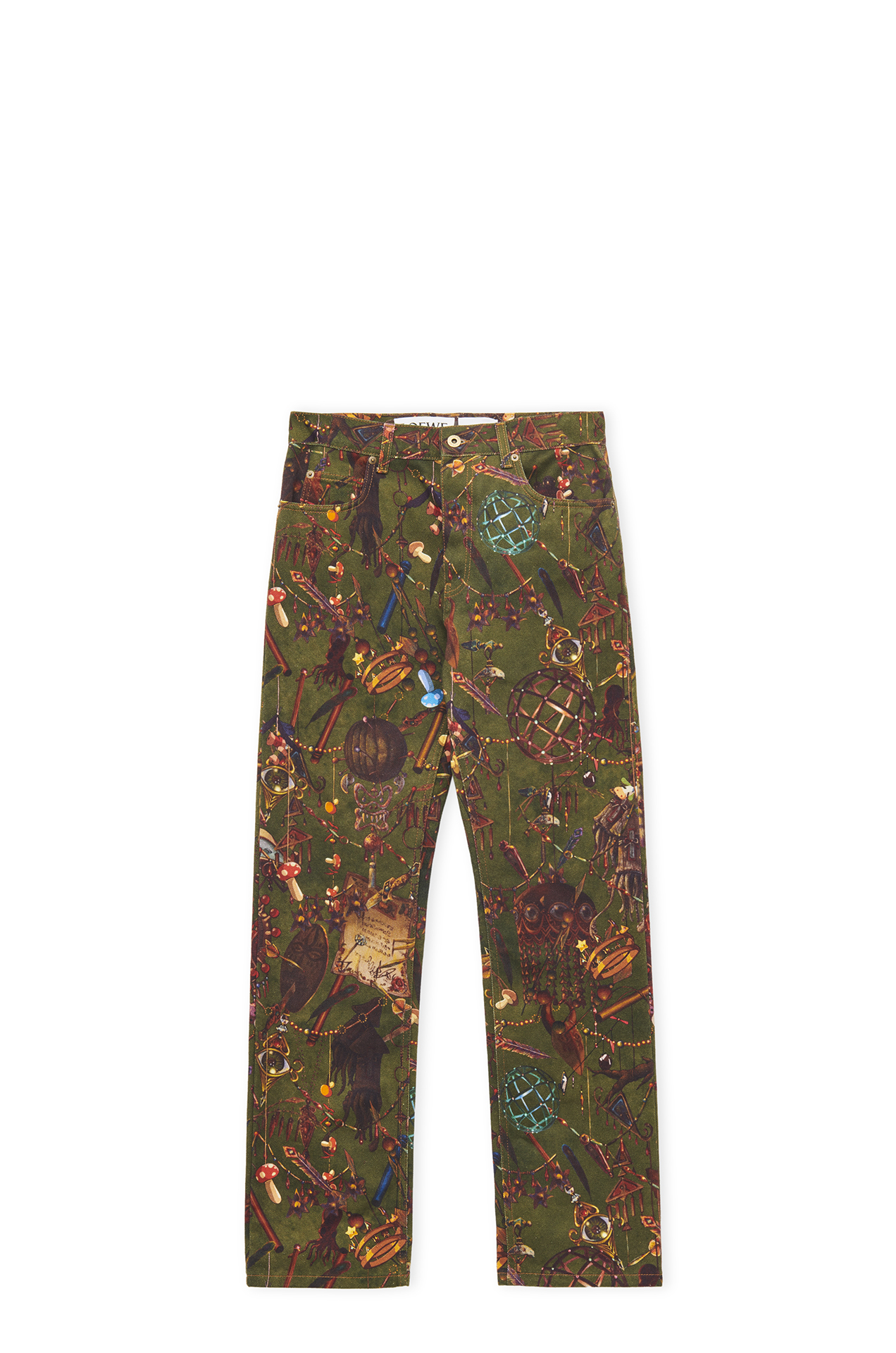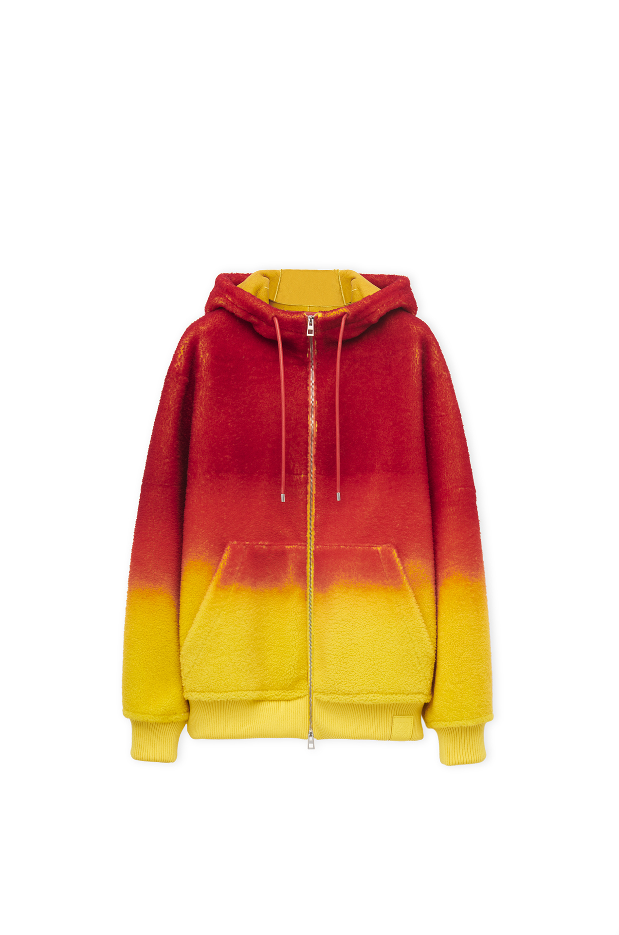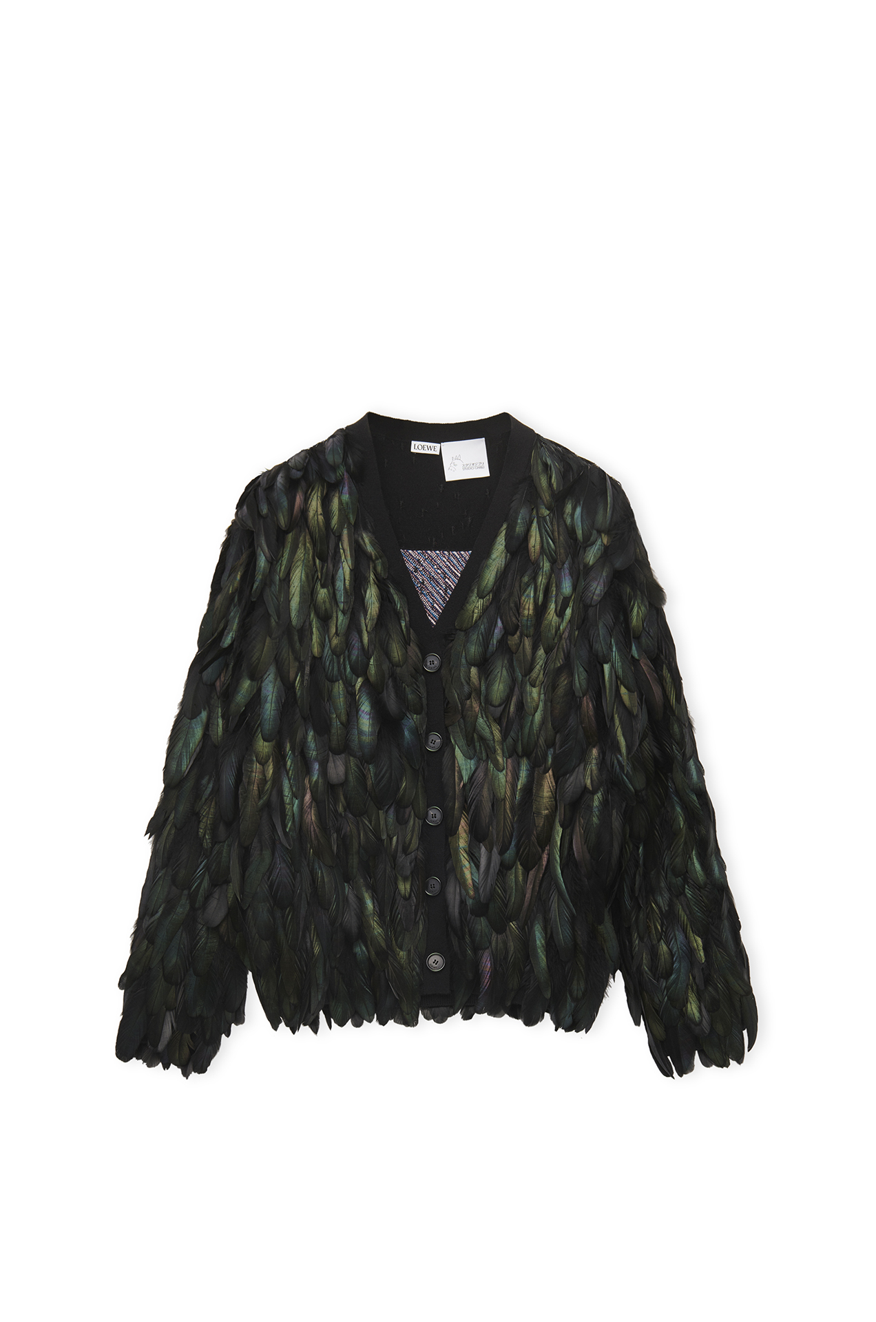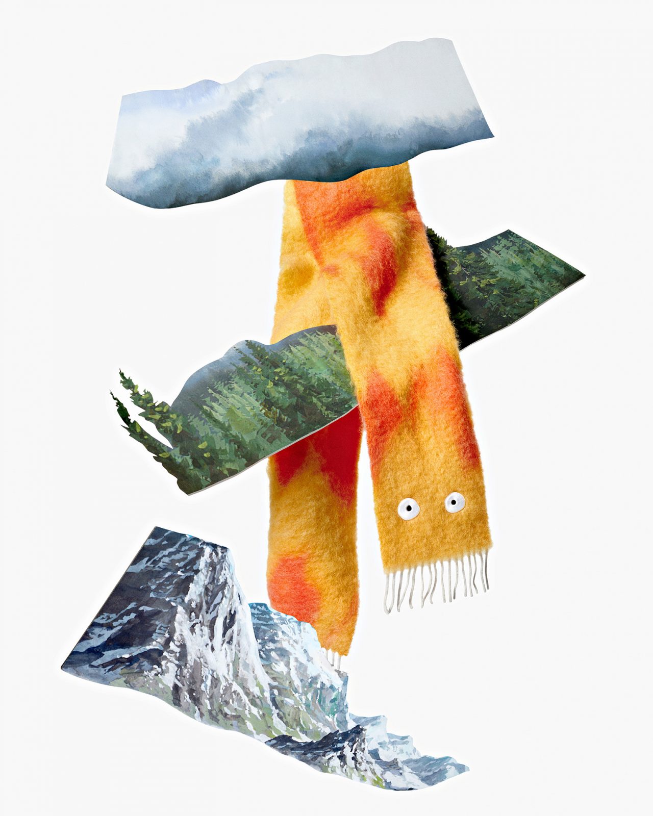 『ハウルの動く城』が最も愛する宮崎駿作品の1つであるという、LOEWE のクリエイティブディレクター Jonathan Anderson (ジョナサン・アンダーソン) は、手書きとデジタルのアニメーションが融合するこの作品に、古いものと新しいものとをつなぐクラフトの力を見出した。本コレクションでは、ウェアやバッグ、アクセサリーなどに、映画に登場するおなじみのキャラクターや美しい背景を落とし込み、身に着けるとまるで作品の一部になったかのような感覚をもたらしてくれる。ソフィーやハウル、さらに炎の悪魔カルシファーやマルクル、ヒン、かかしのカブ、荒れ地の魔女などが、レザーやシアリングといった上質な生地に、インターシャ、刺繍、象嵌などの手法を用いて生き生きと描かれている。