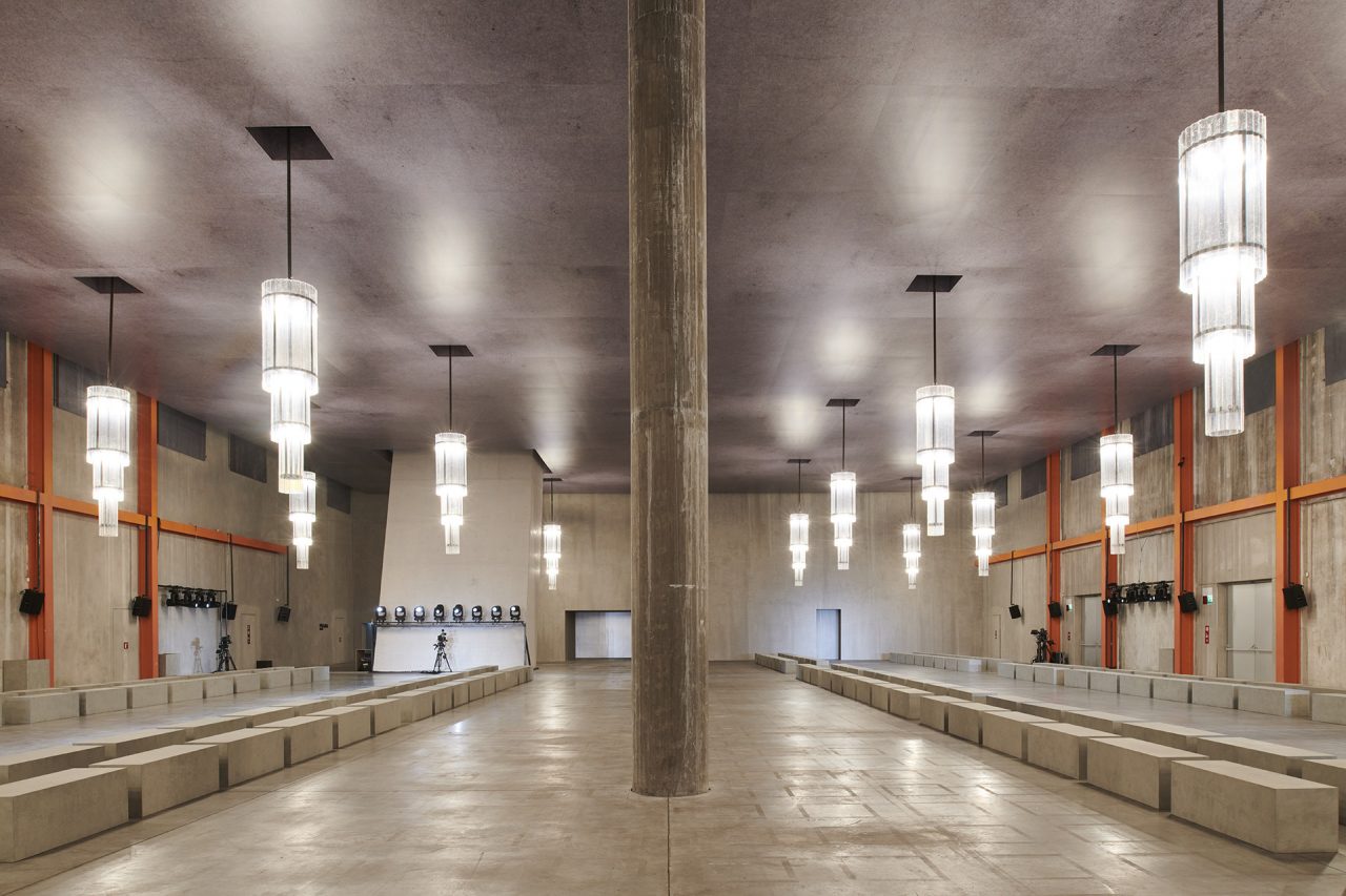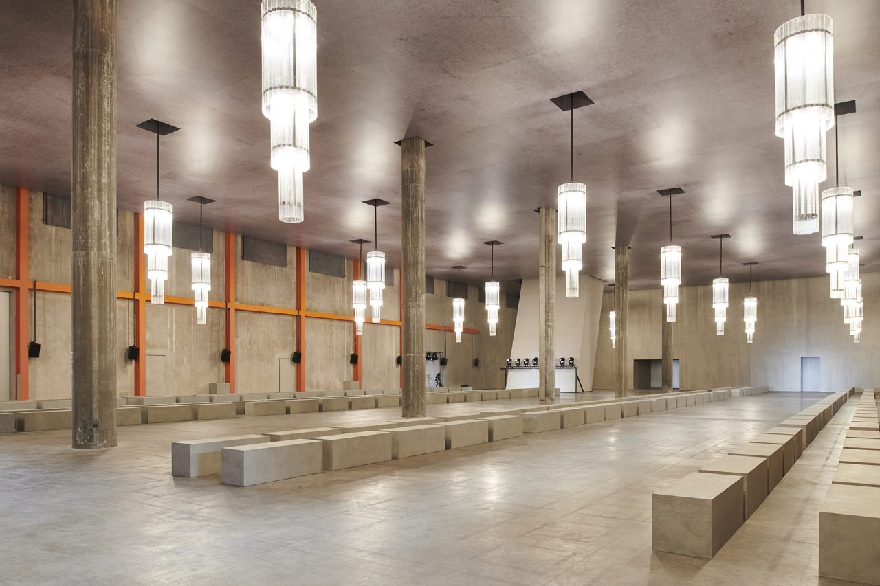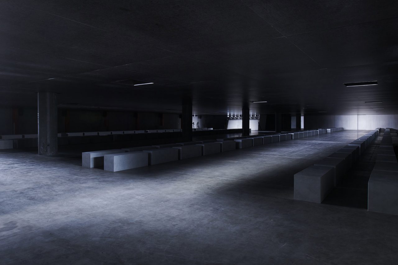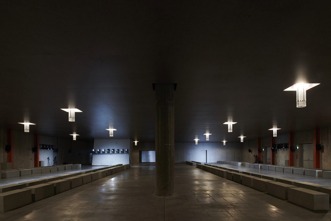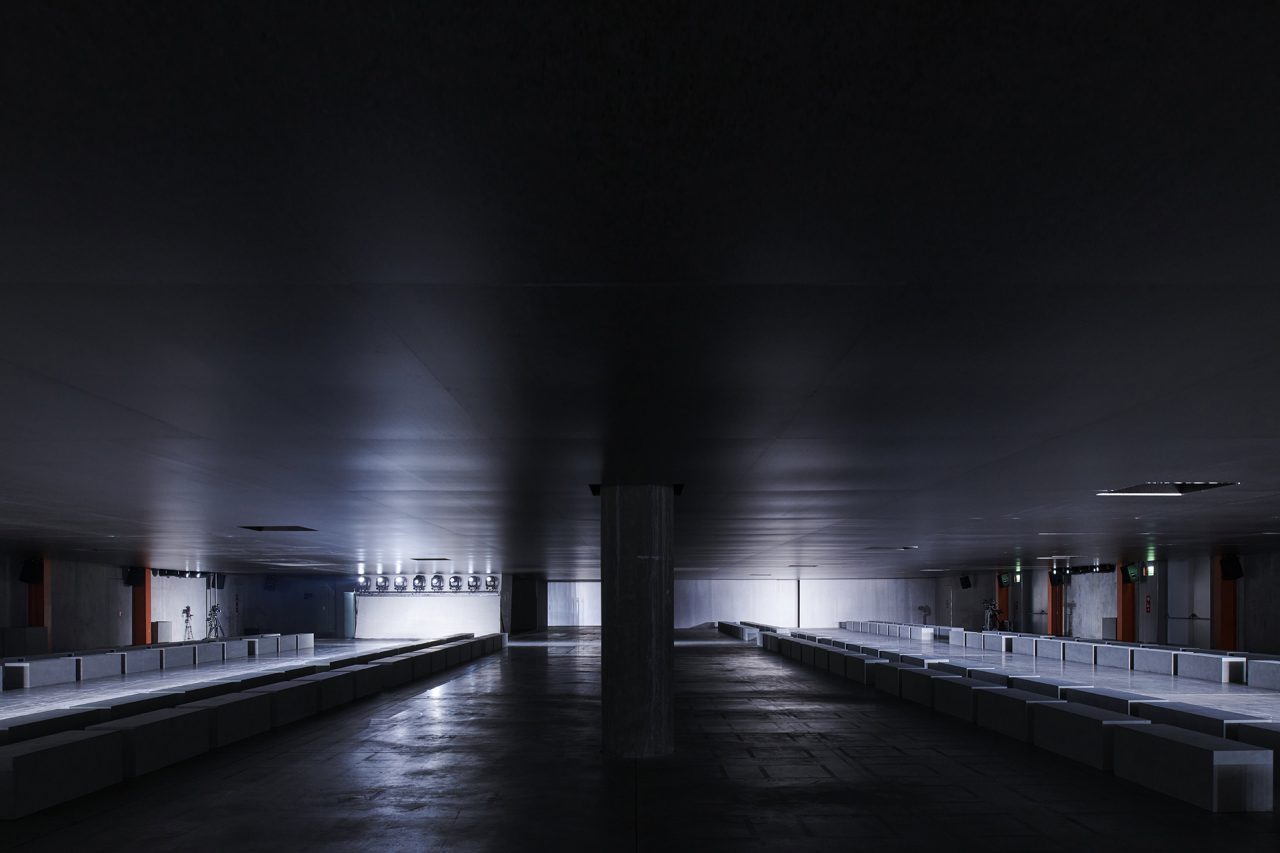 会場は、建築家の Rem Koolhaas (レム・コールハース) 率いる AMO が手掛けたプラダ財団の Deposito ショースペース。ショーでは、天井がゆっくりと上昇し、親密な空間が壮大な空間へと変化した。スケールが変わることでウェアに対しての視点も変化させるこの演出は、長く伸びていたり、短く切り詰められたウェアそのものと呼応する。