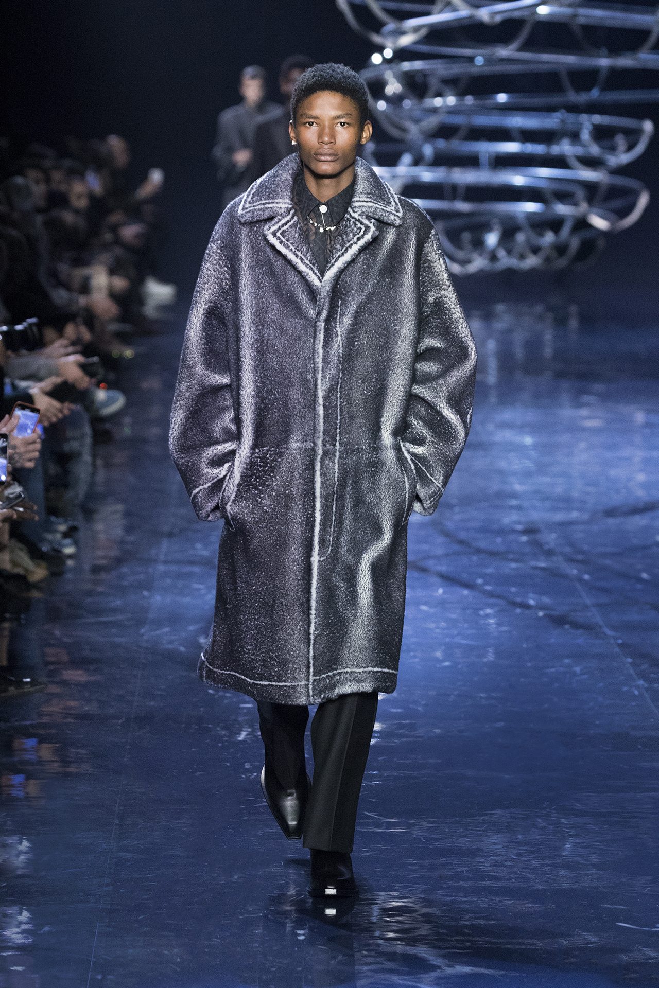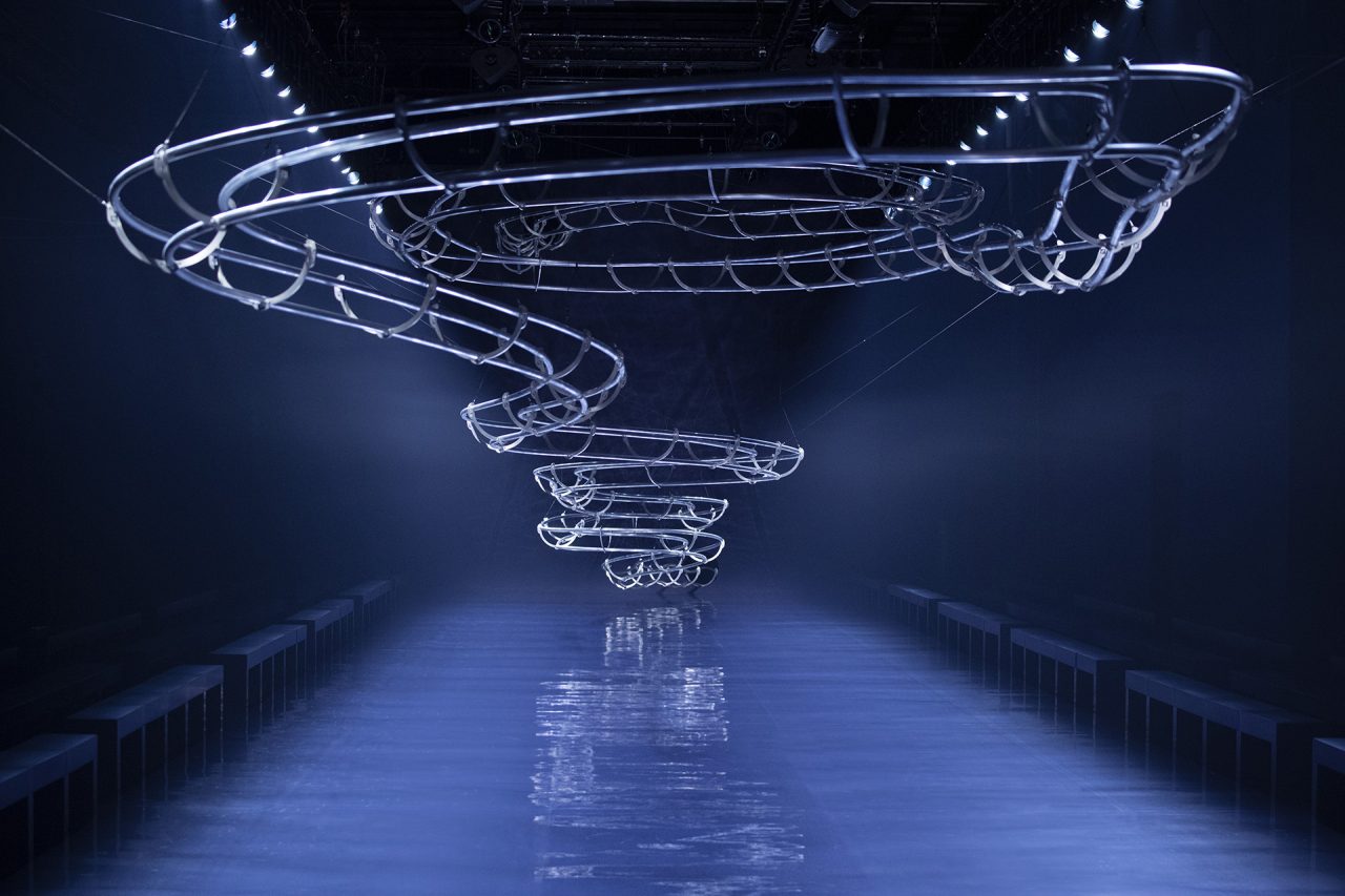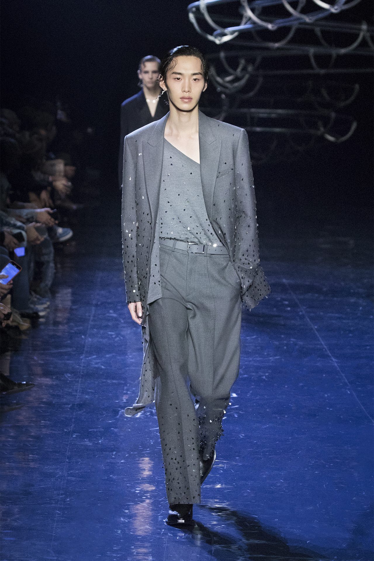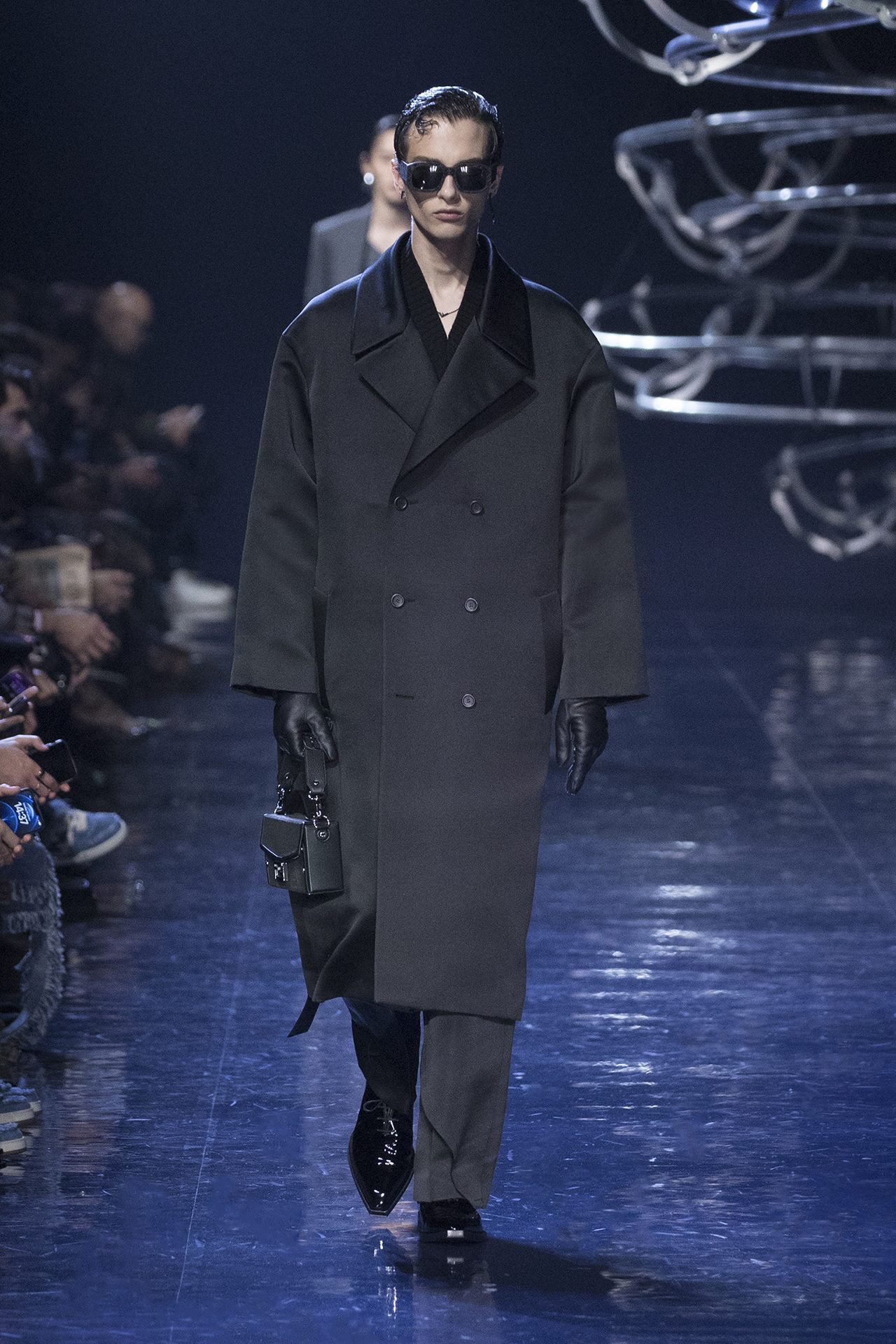 会場のミラノのショールームには、巨大なローラーピンボールマシンを設置。伝説的なイタリアのミュージックディレクター Giorgio Moroder (ジョルジオ・モロダー) によるディスコサウンドトラック「After Dark (アフターダーク)」にのせてショーは始まった。本コレクションでは、目の錯覚を起こさせるトロンプ・ルイユを用いた本コレクションでは、ダイナミックなワークマンシップによりメゾンのコードにひねりを加え、贅沢な質感と艶を新たに生み出している。メンズウェアの無骨さとトラディショナルなシルエットの境界線をぼかし、都市のデカダンスと夜に輝くライトを表現した。